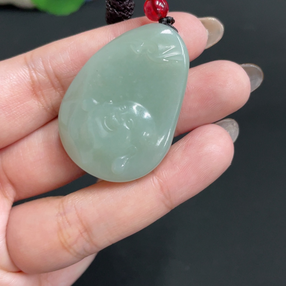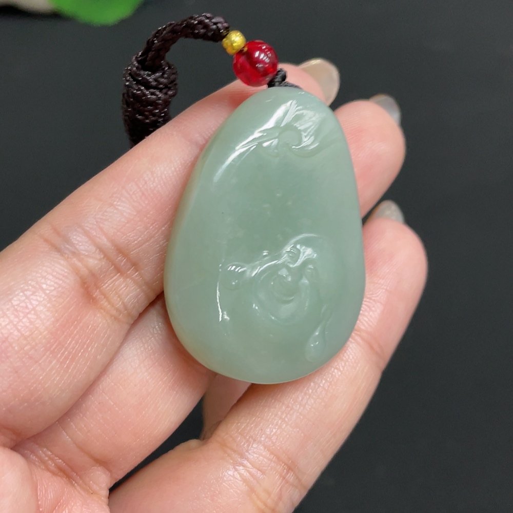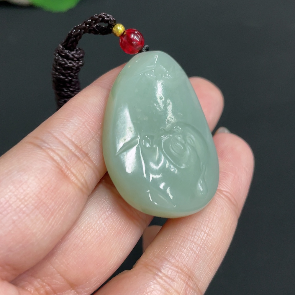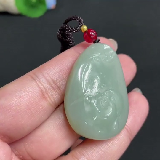 Hetian Jade Pendant Buddha, Total Weight (including rope) Approx. 21.4g