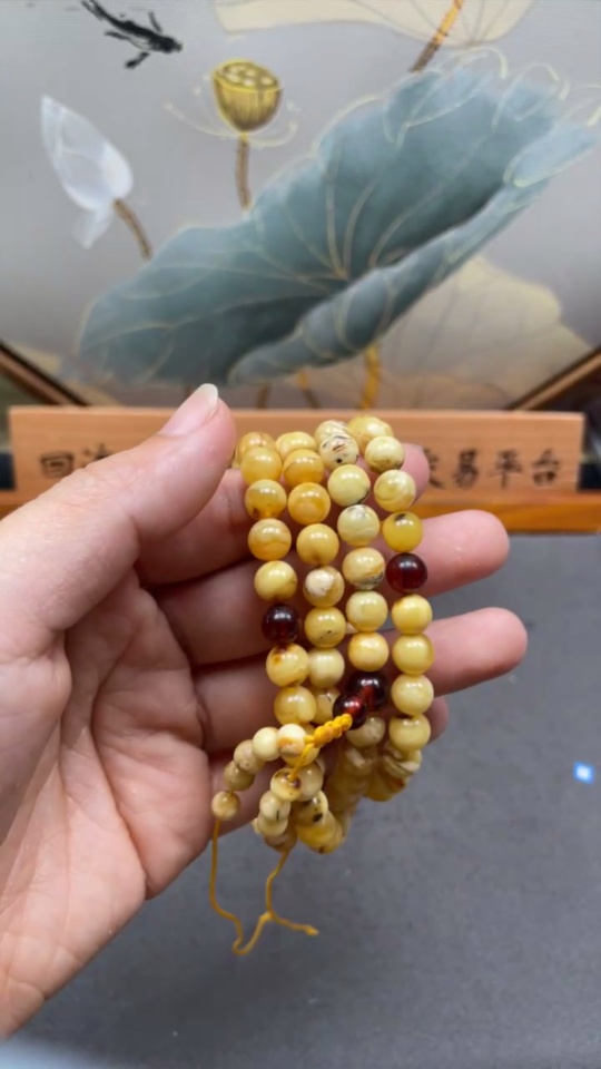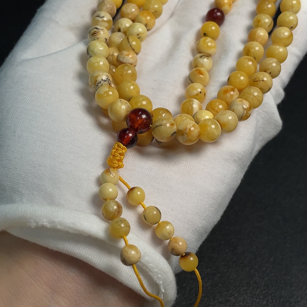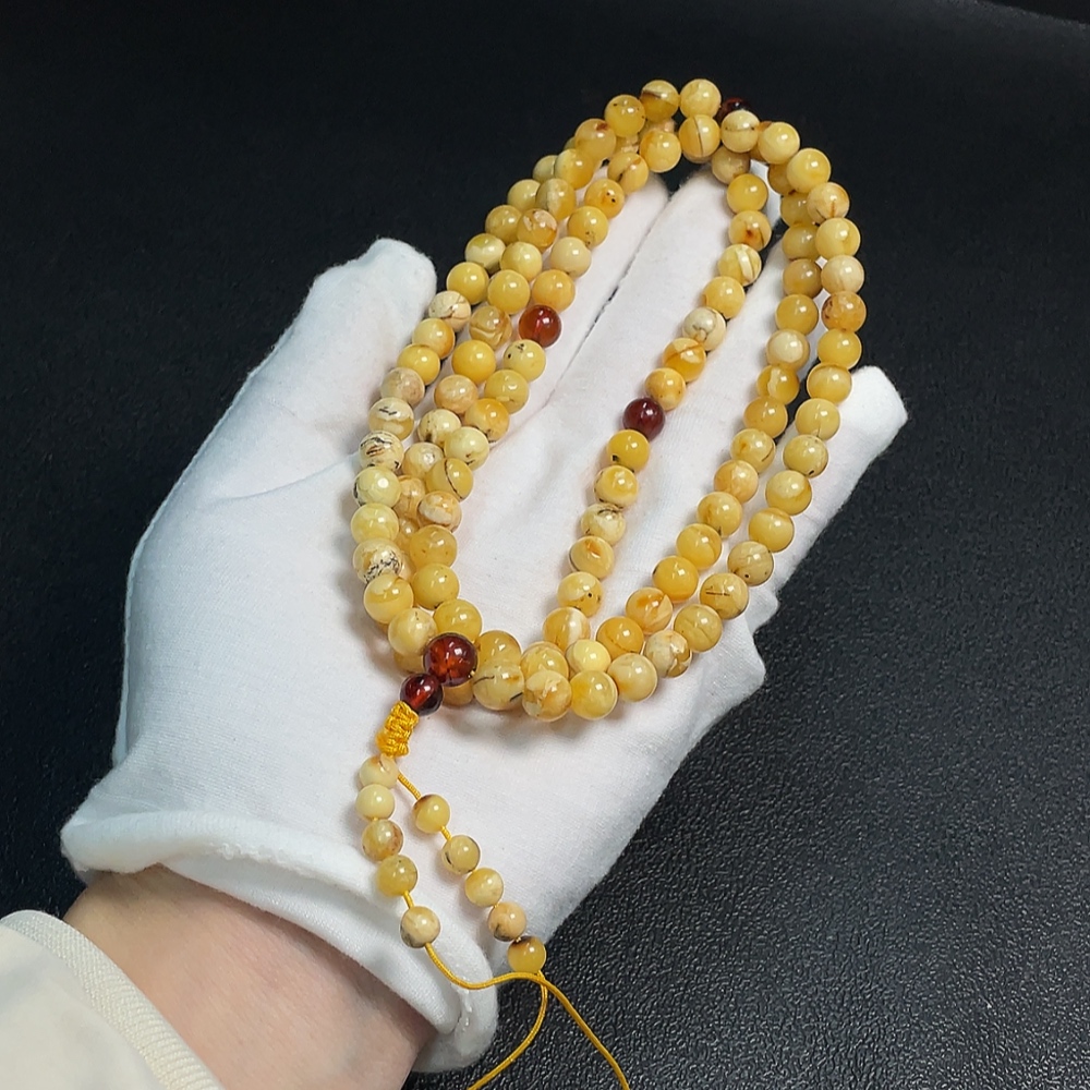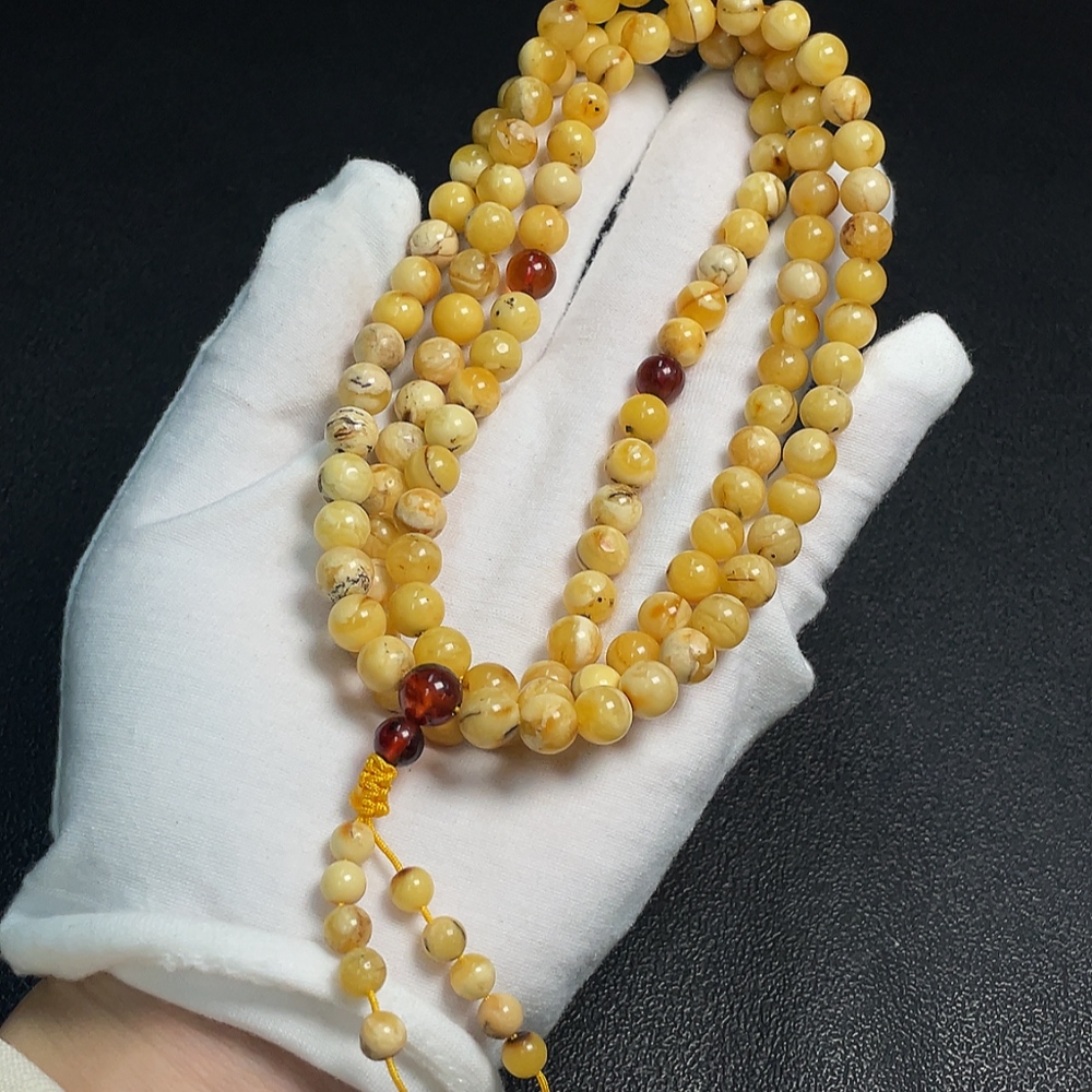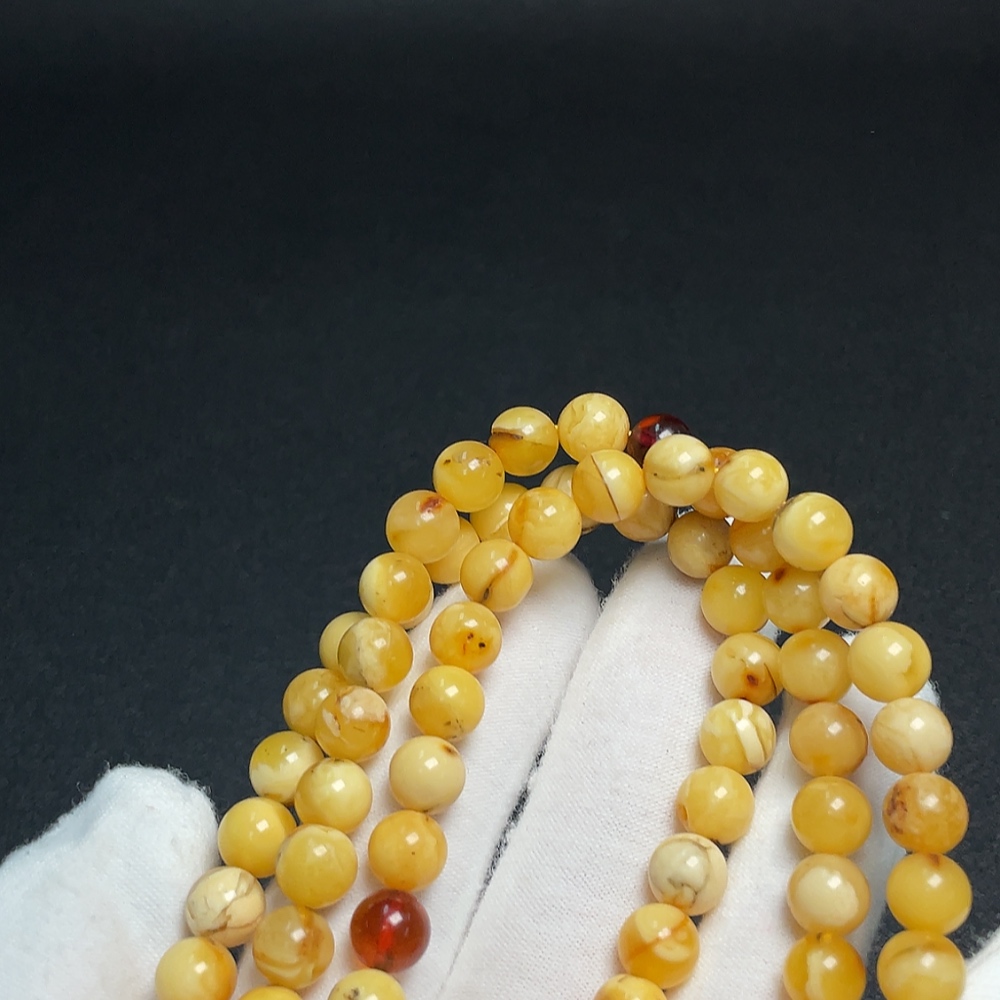 Amber Beeswax Bead Strand with Partial Visible Repairs, Total Weight Approximately 29.8g, Size About 7.3mm