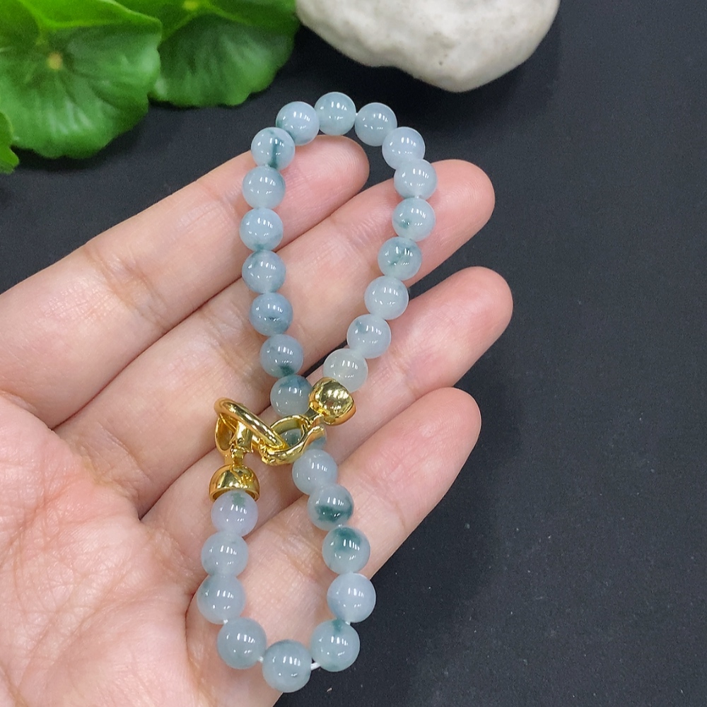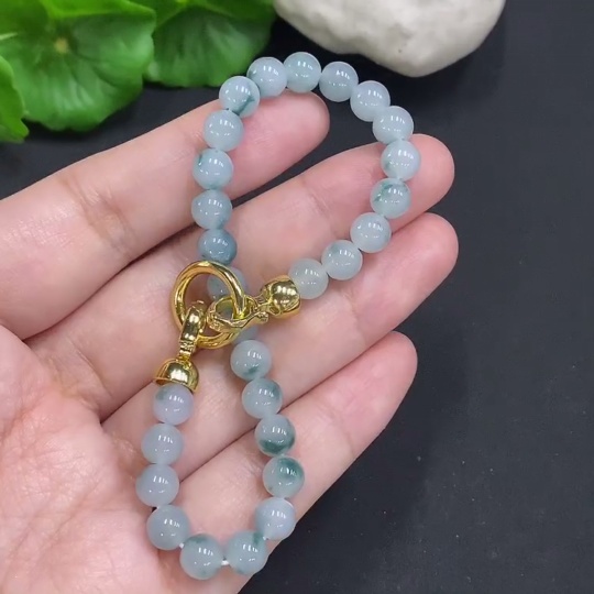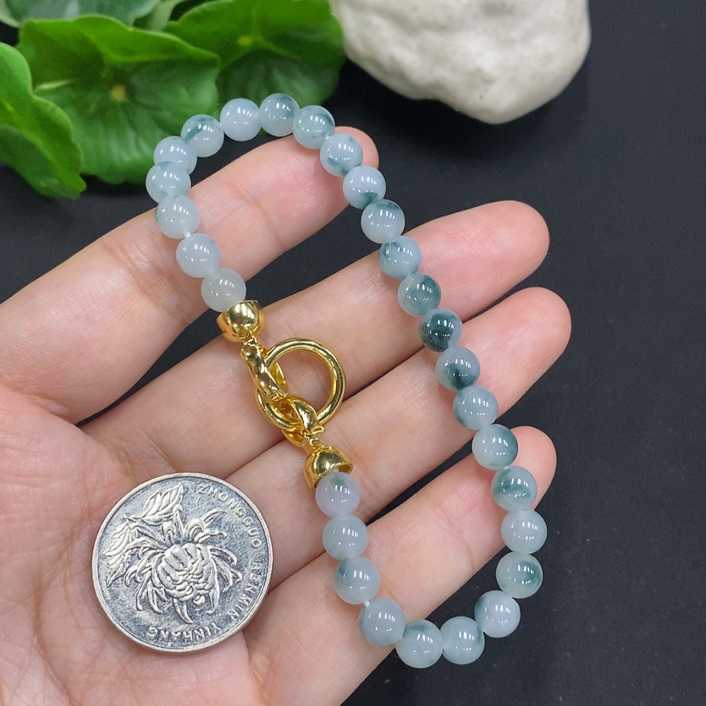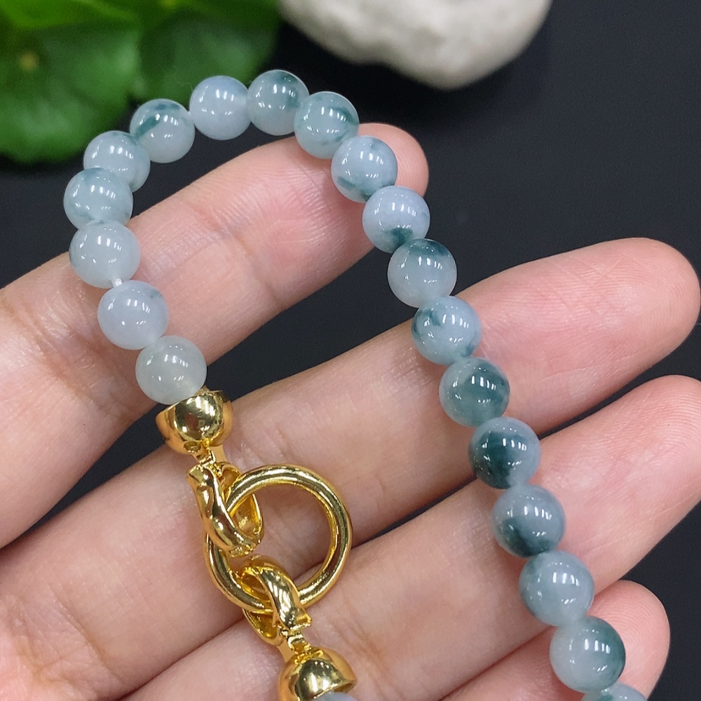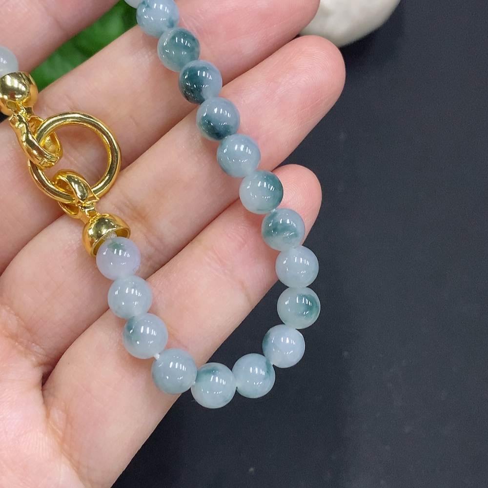 Jadeite Bead Necklace Approx. 6mm Non-Gold Total Weight Approx. 15.7g