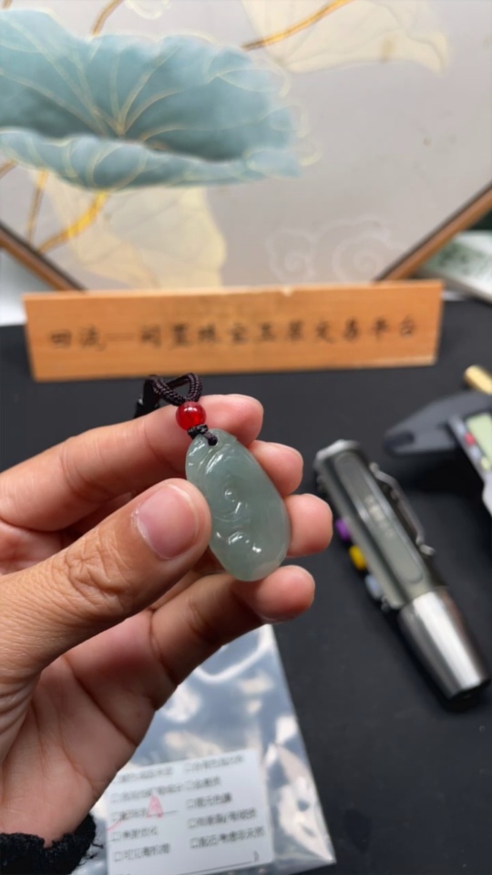 Jadeite Ruyi Pendant Total Weight Including Rope Approx. 6.7g (Matching Beads Non-A)