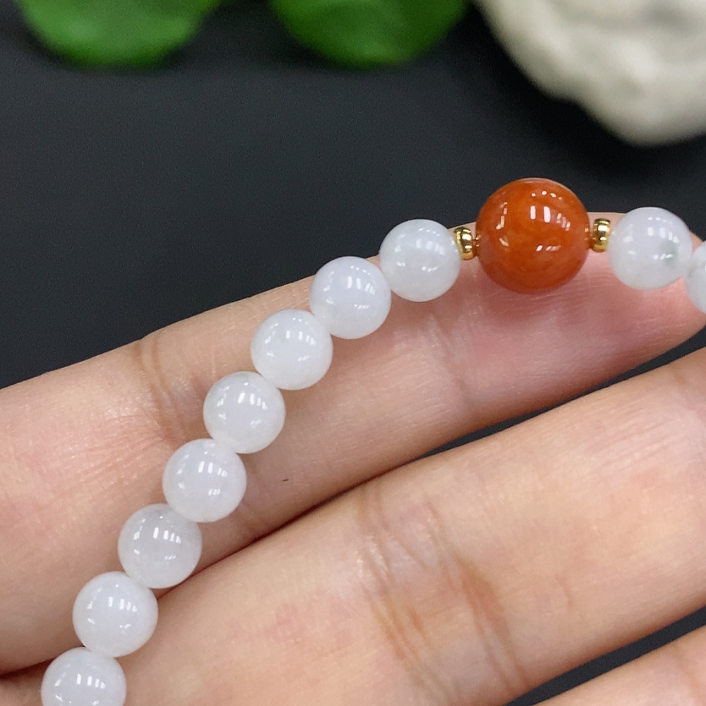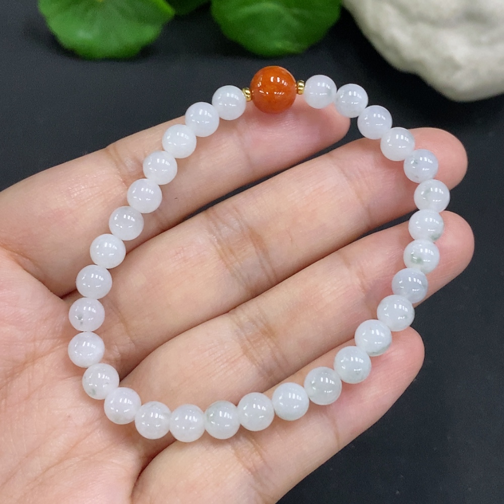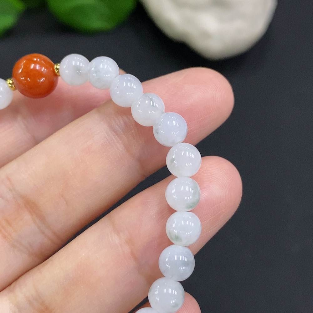 Jadeite bead necklace approx. 5.6mm non-gold total weight approx. 10.9g (red accessory beads non-A)