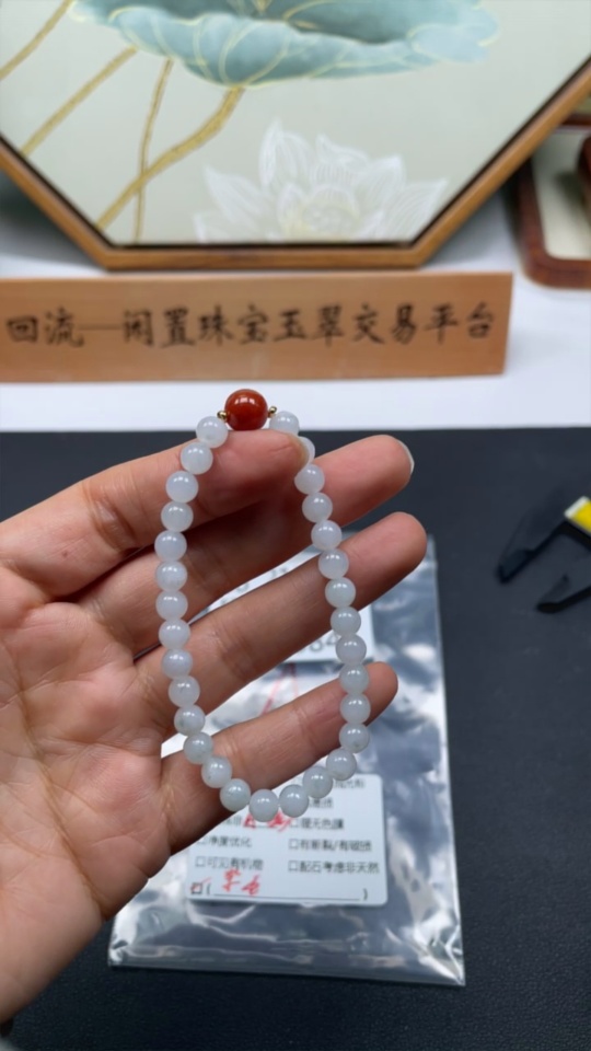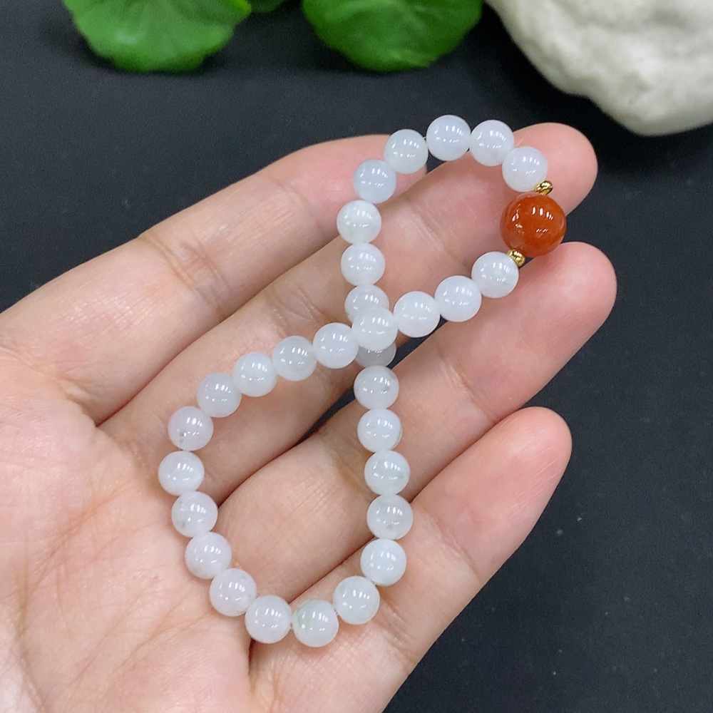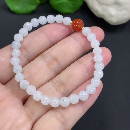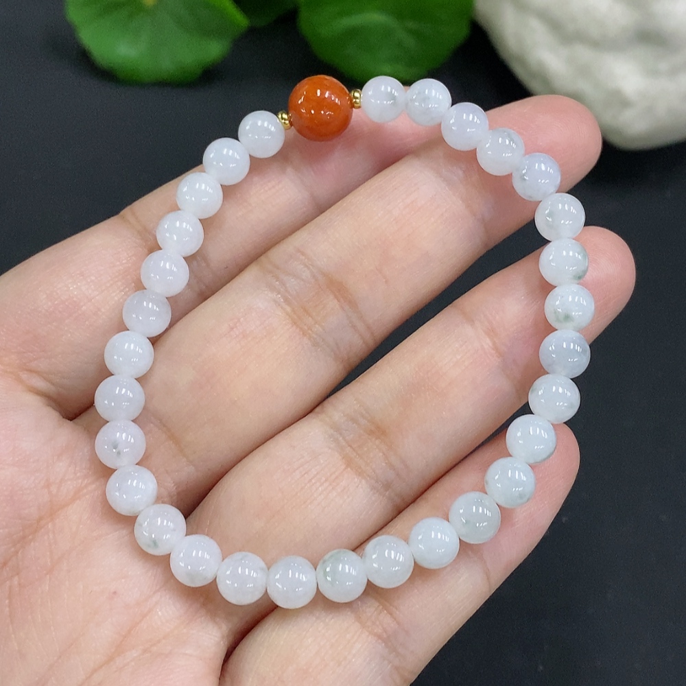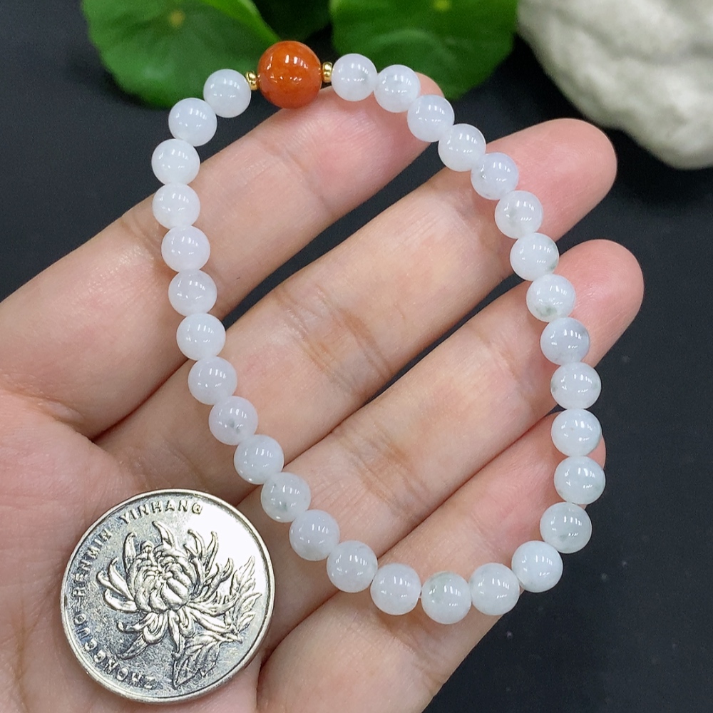 Jadeite bead necklace approx. 5.6mm non-gold total weight approx. 10.9g (red accessory beads non-A)