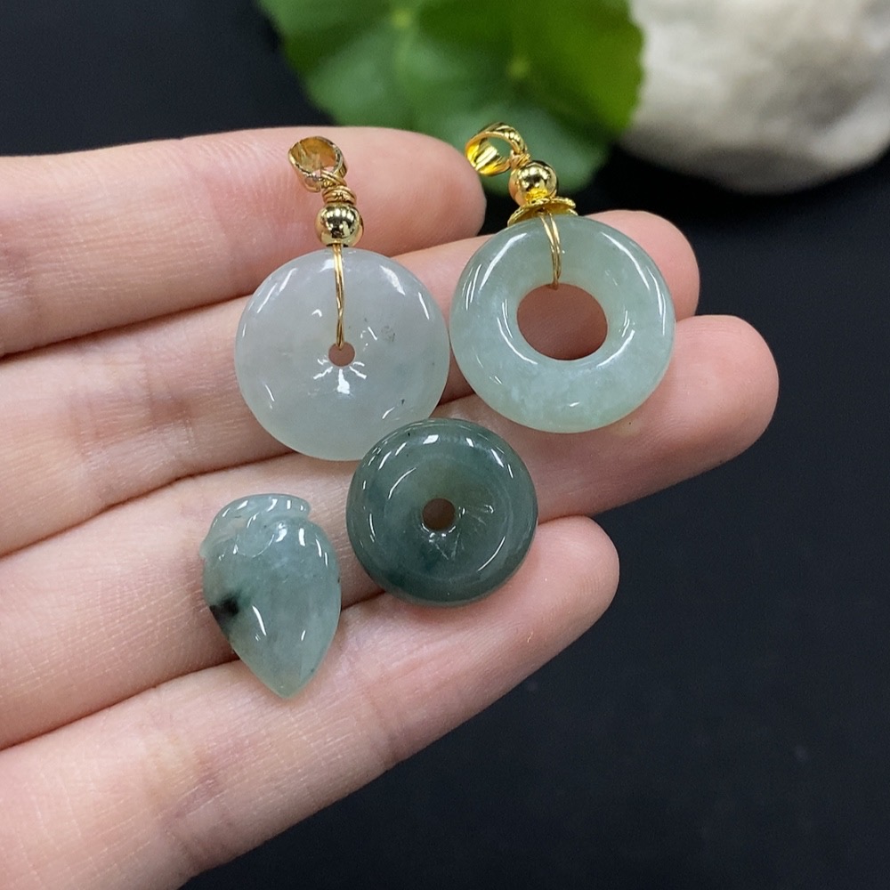 Jadeite Safety Buckle/Blessing Melon Pendant Non-Gold Inlaid Containing Other Mineral Components