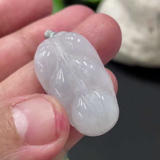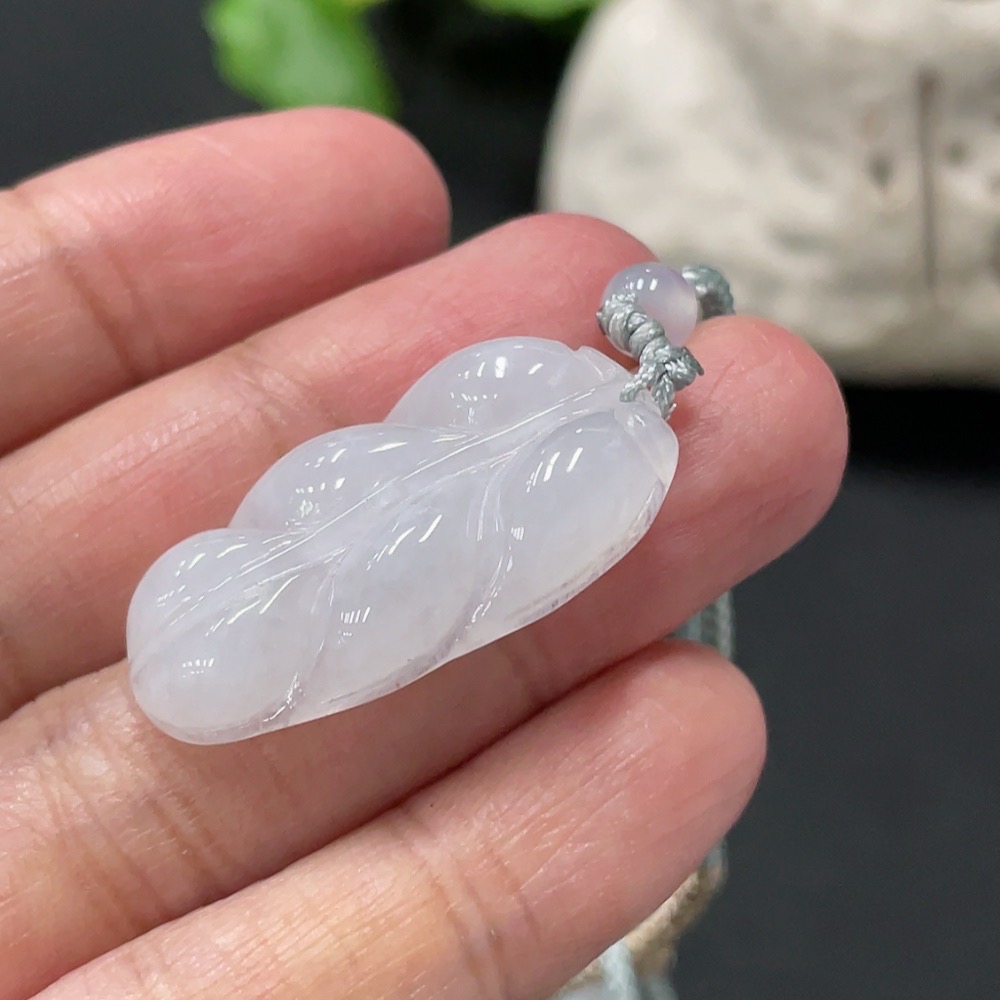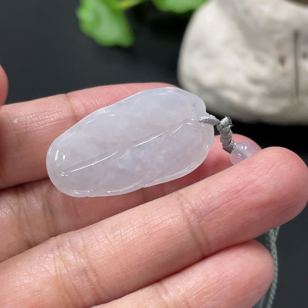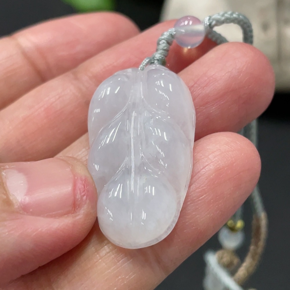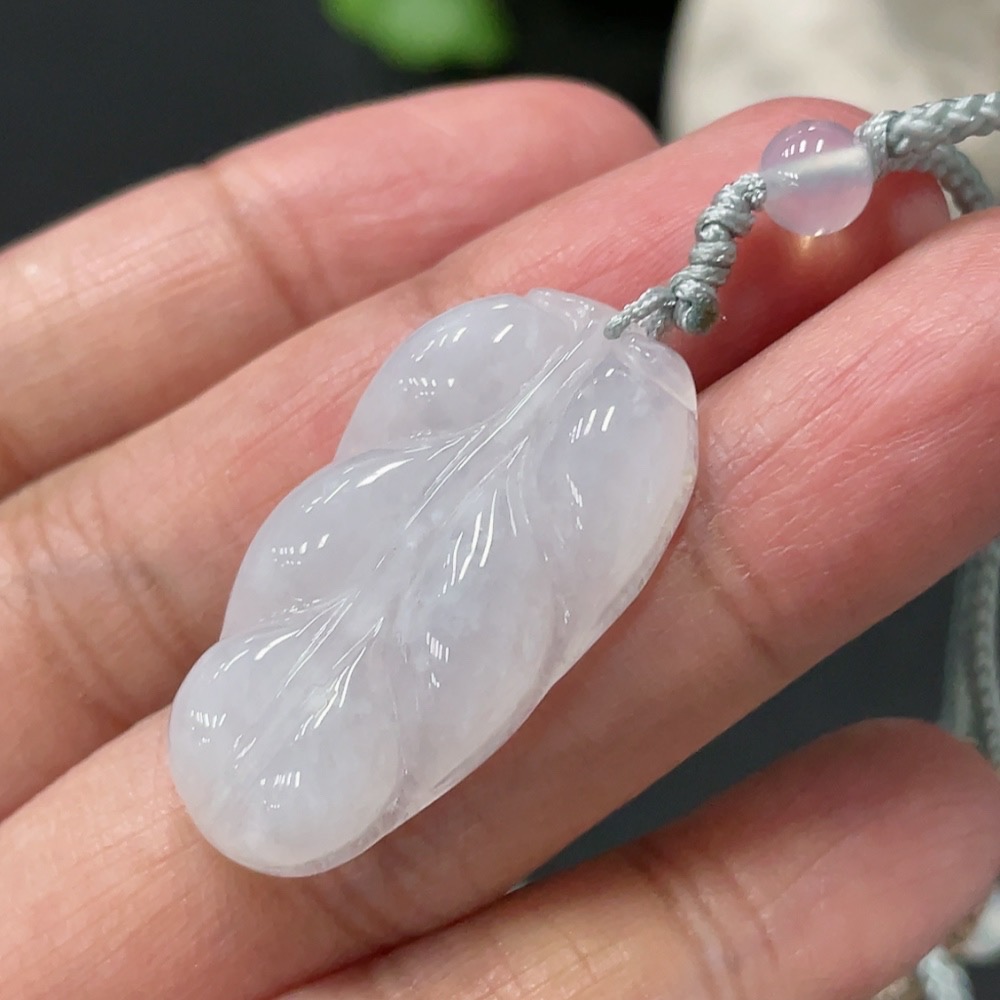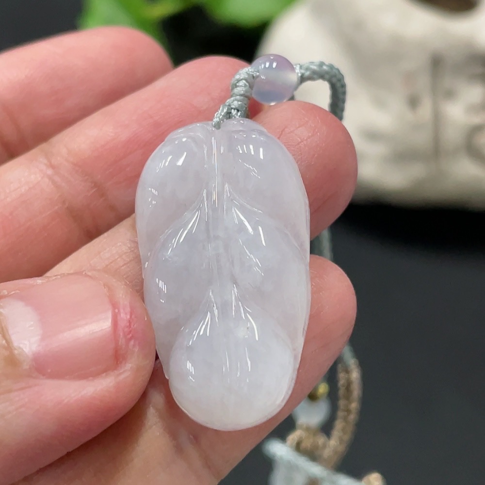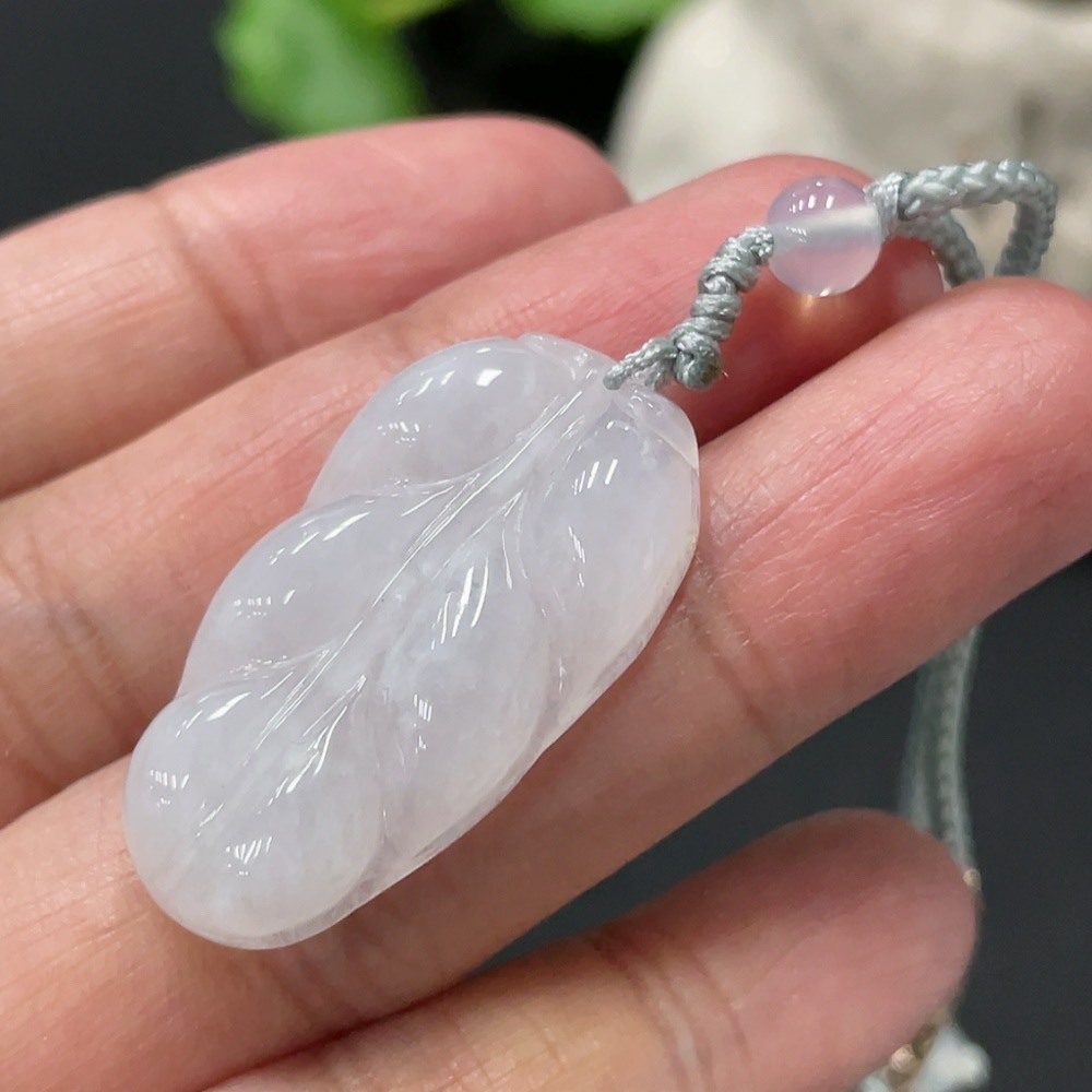 Jadeite Pendant Leaf Total Weight Approx. 7.73g Including Cord With Non-Grade A Beads