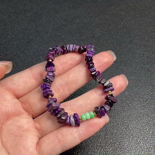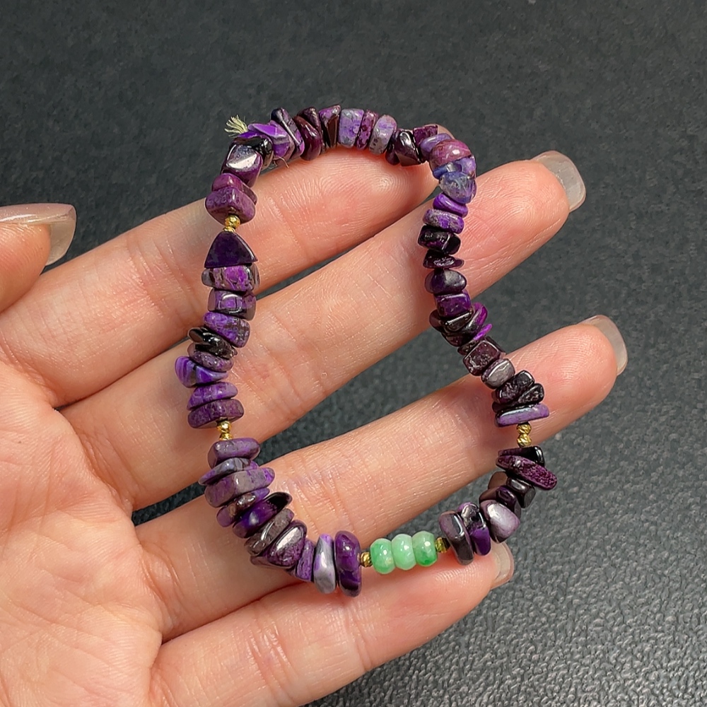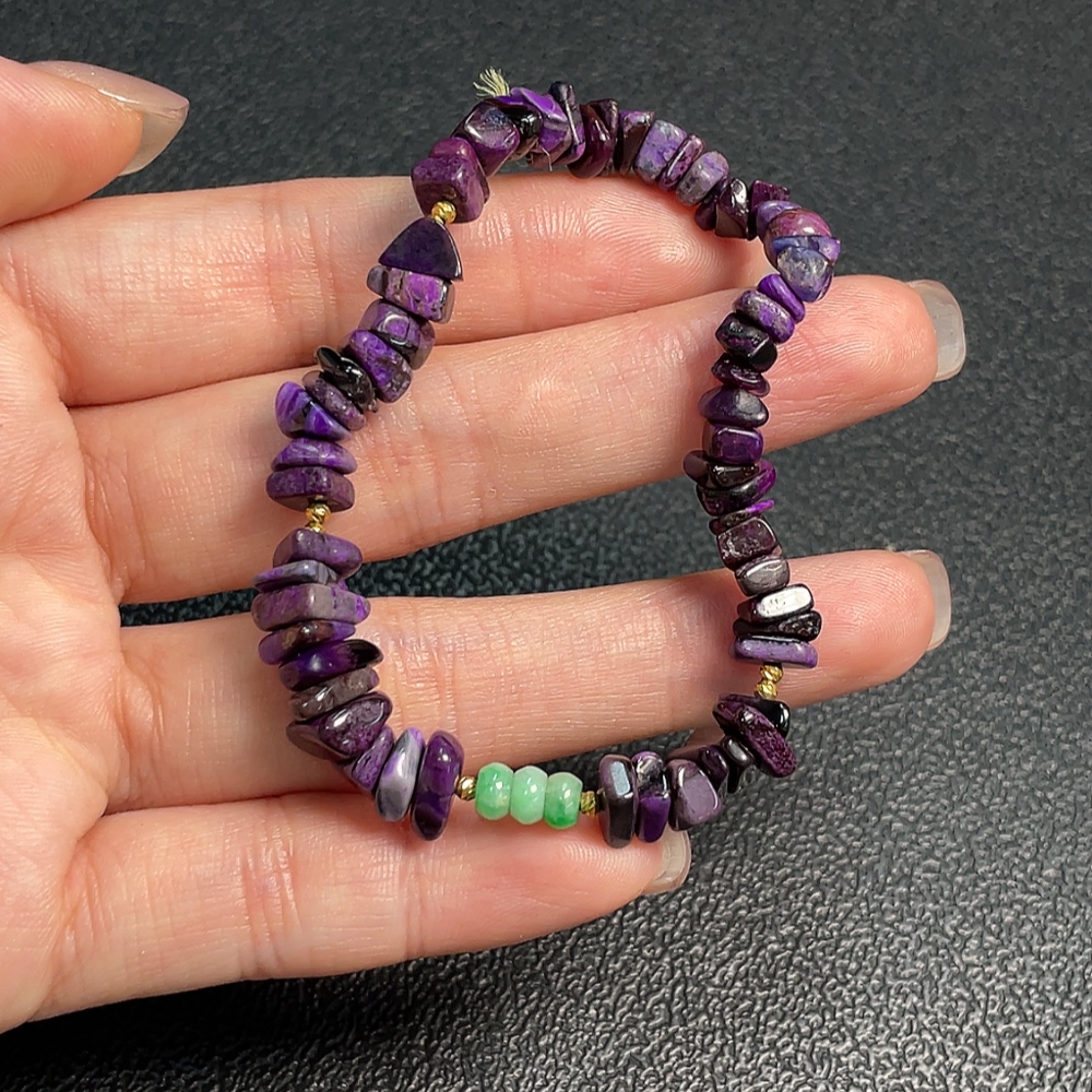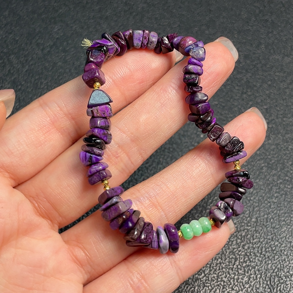 Sugilite Bracelet with Jadeite, Purple Only, Containing Other Mineral Components, Visible Organic Matter, Total Weight Approximately 11.65g, Size About 7.8mm (Mineral)