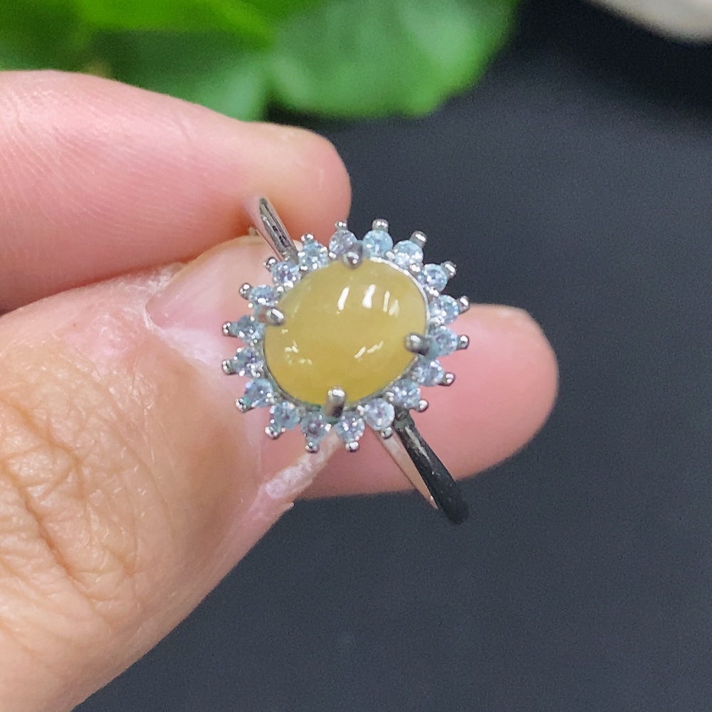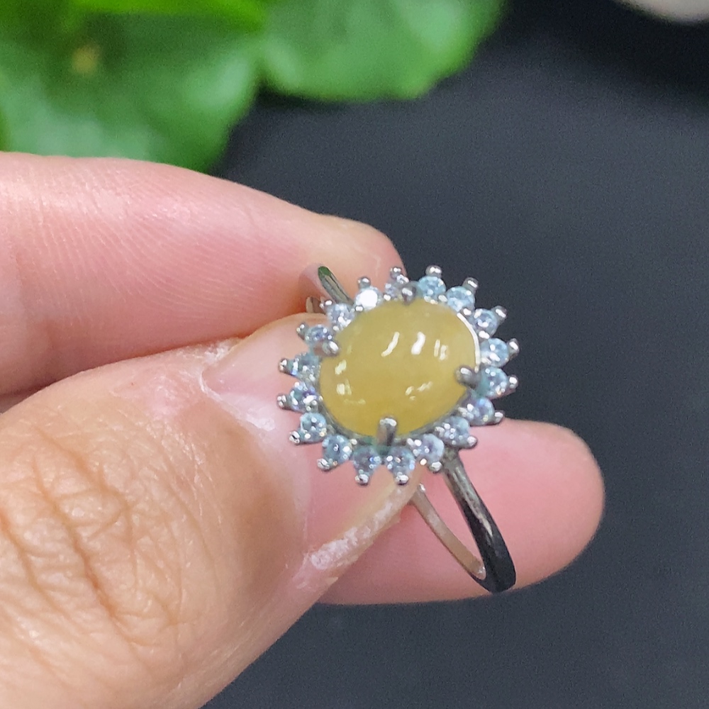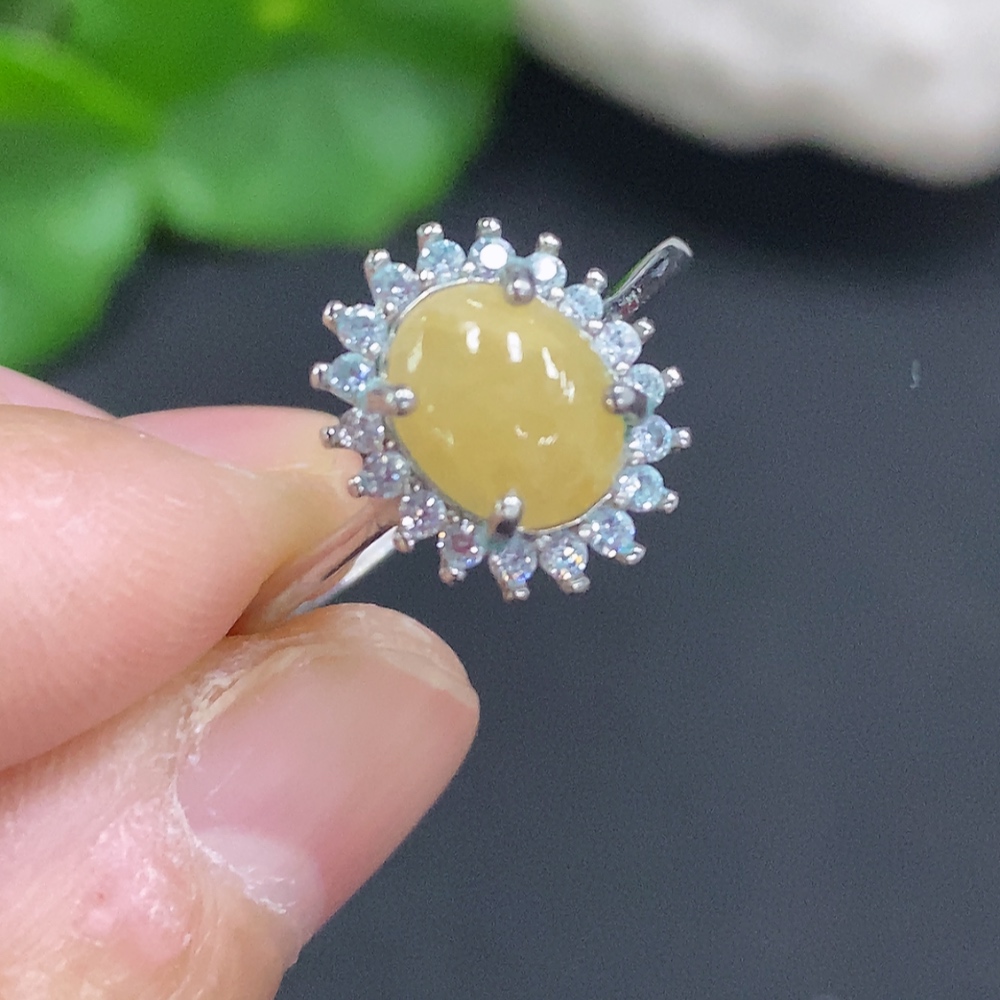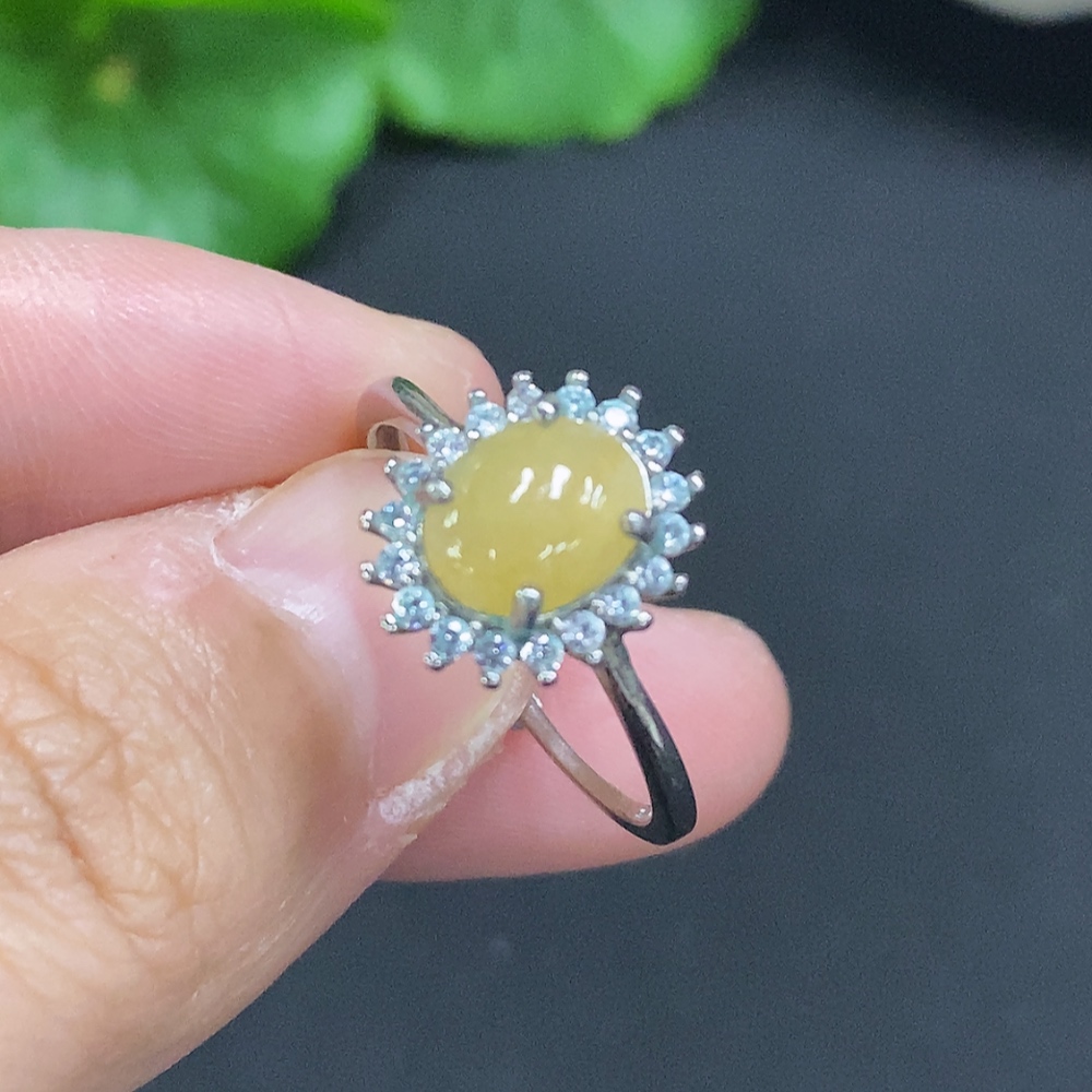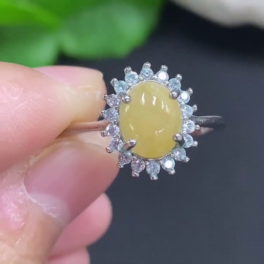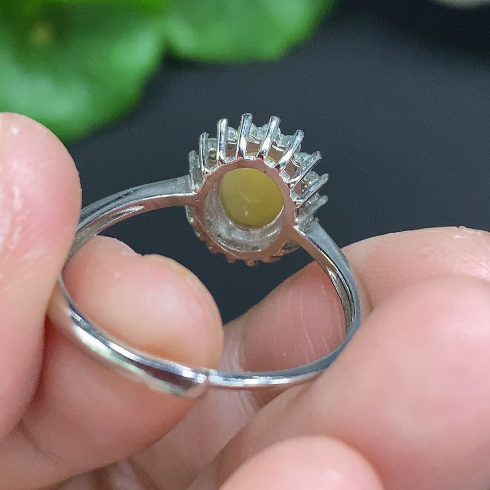 Jadeite Cabochon Inlaid Ring Adjustable Size Non-Gold Inlaid Total Weight Approx. 2.1g