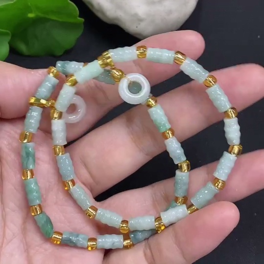 Trezaar - Jadeite Beads Sell as a Lot (with other mineral components)
