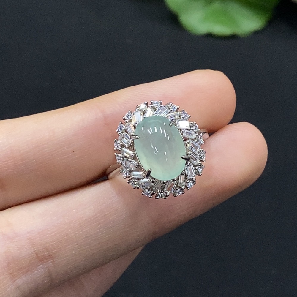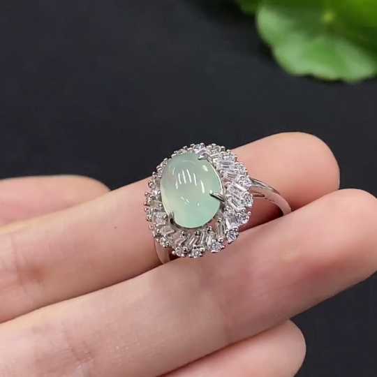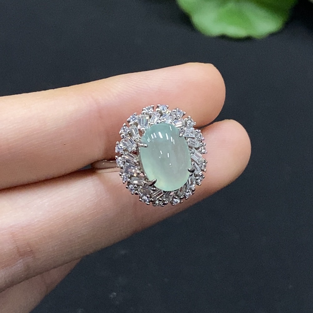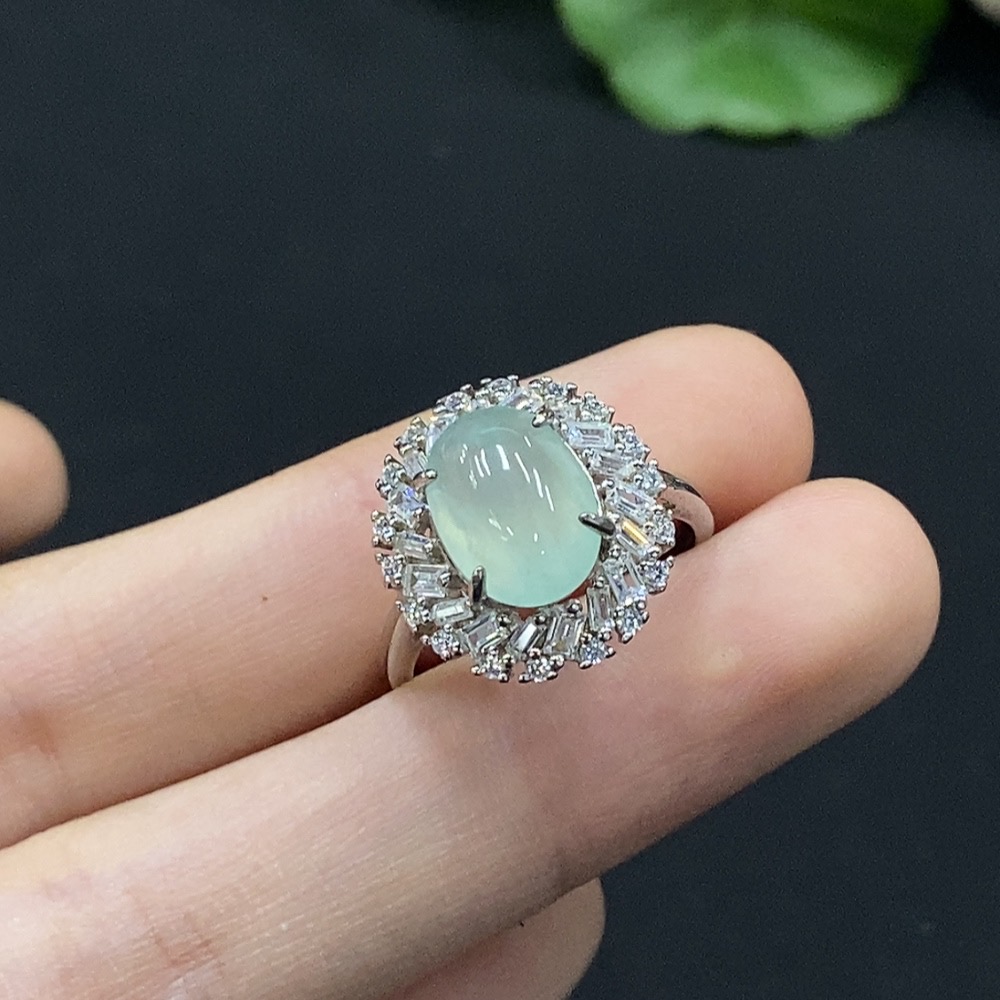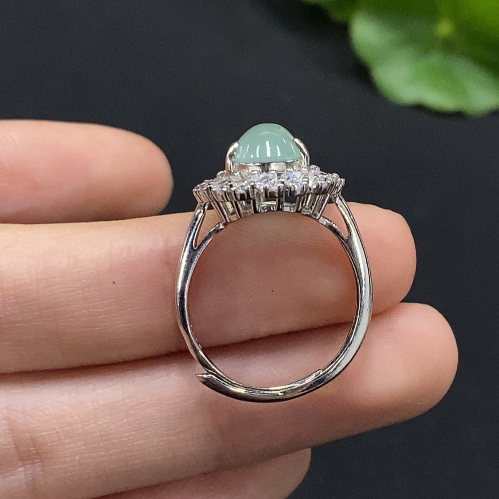 Jadeite Cabochon Inlaid Ring Non-Gold Setting Adjustable Total Weight Approx. 3.26g