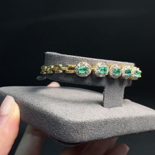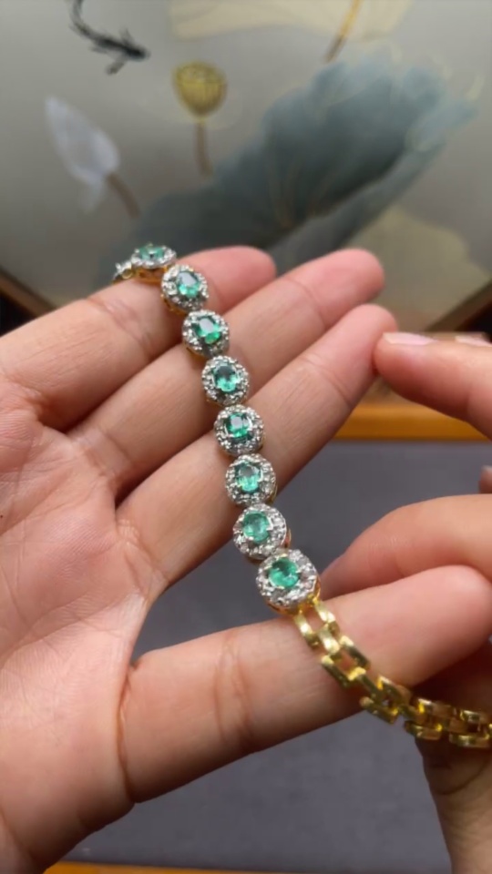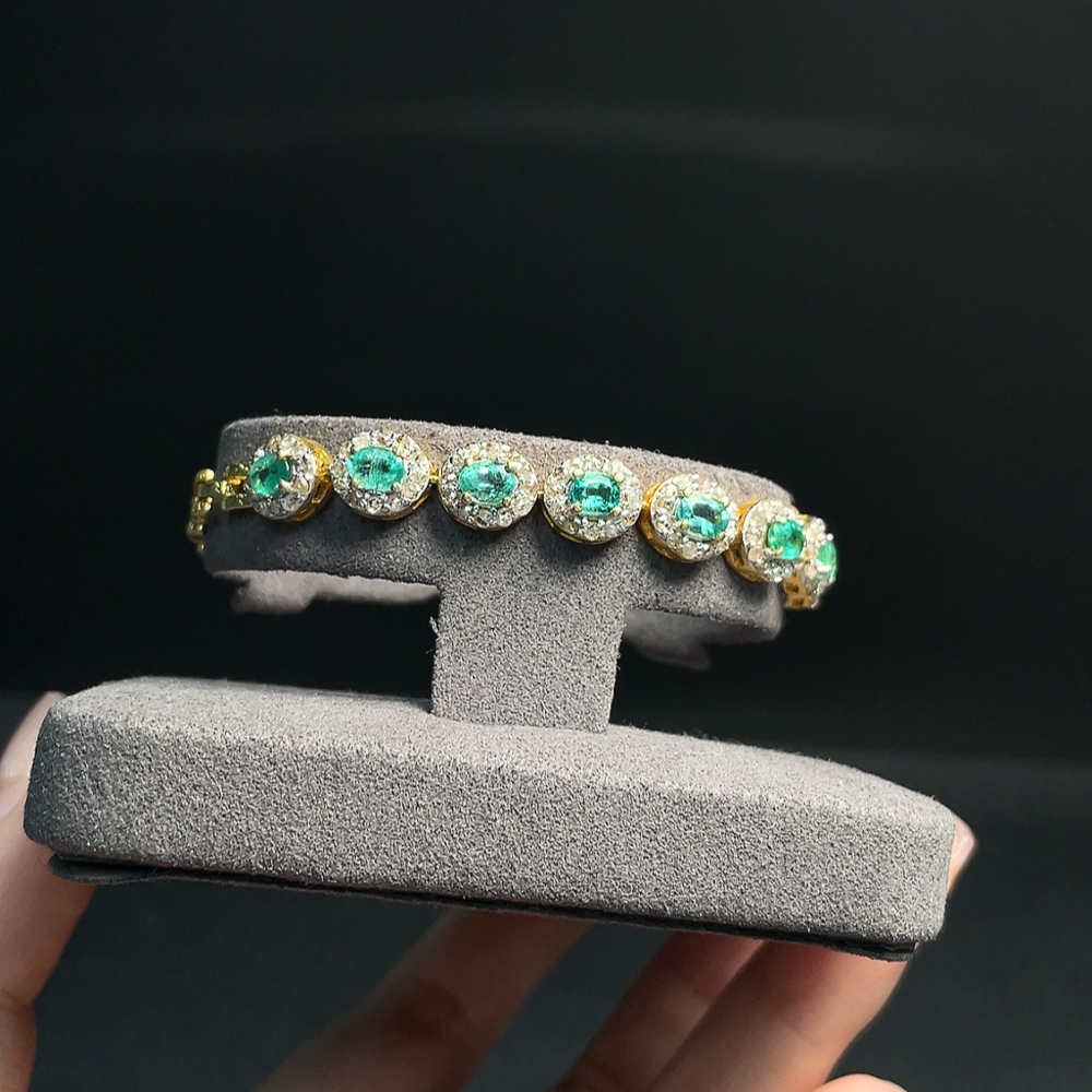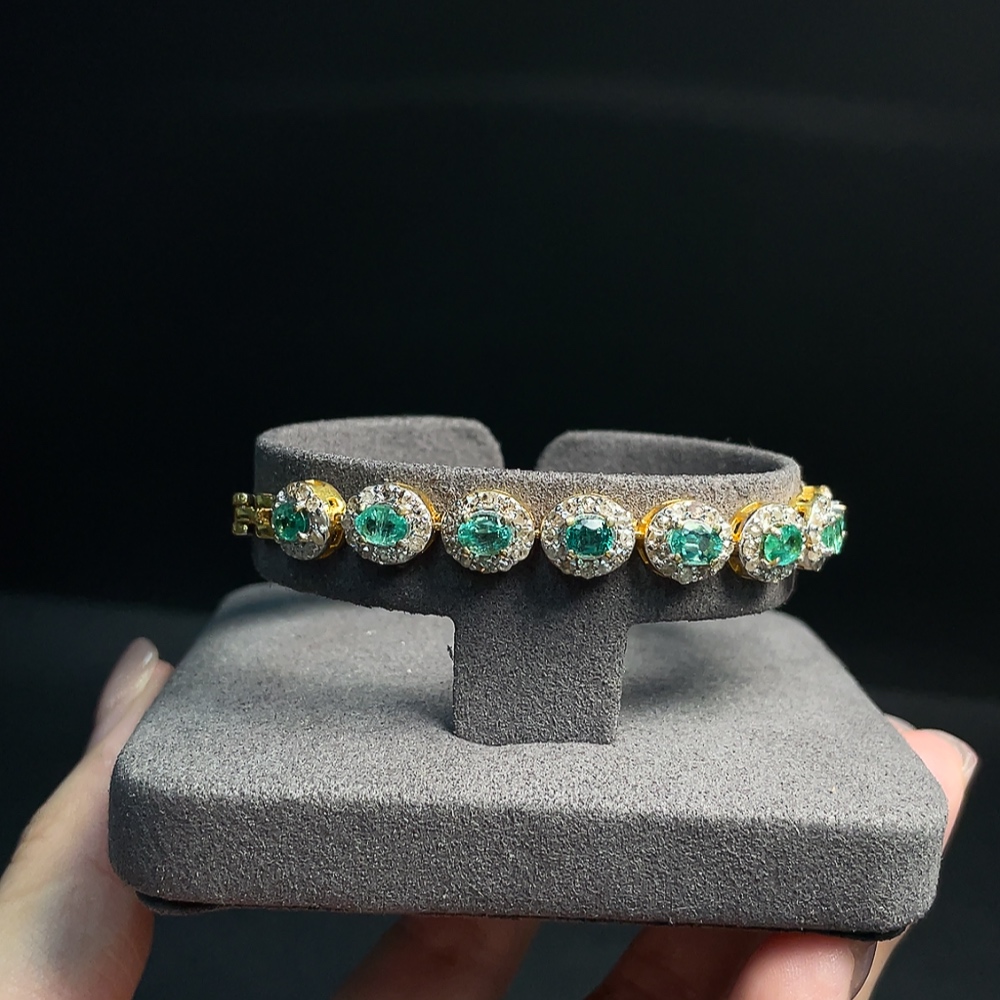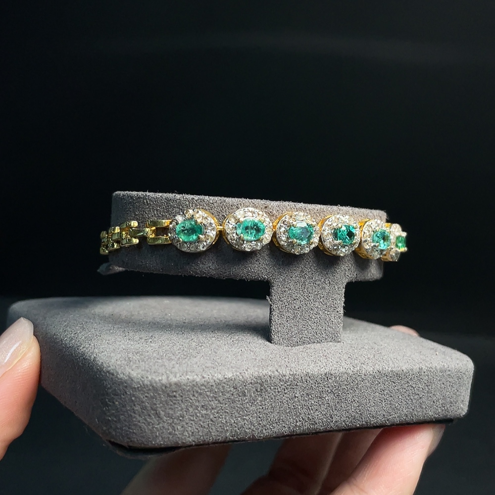 Emerald Bracelet Clarity Enhanced with Diamond Accents Non-Gold Total Weight Approx. 12.20g