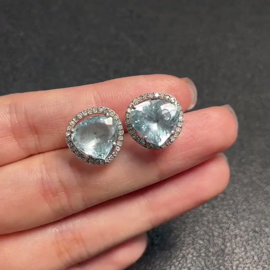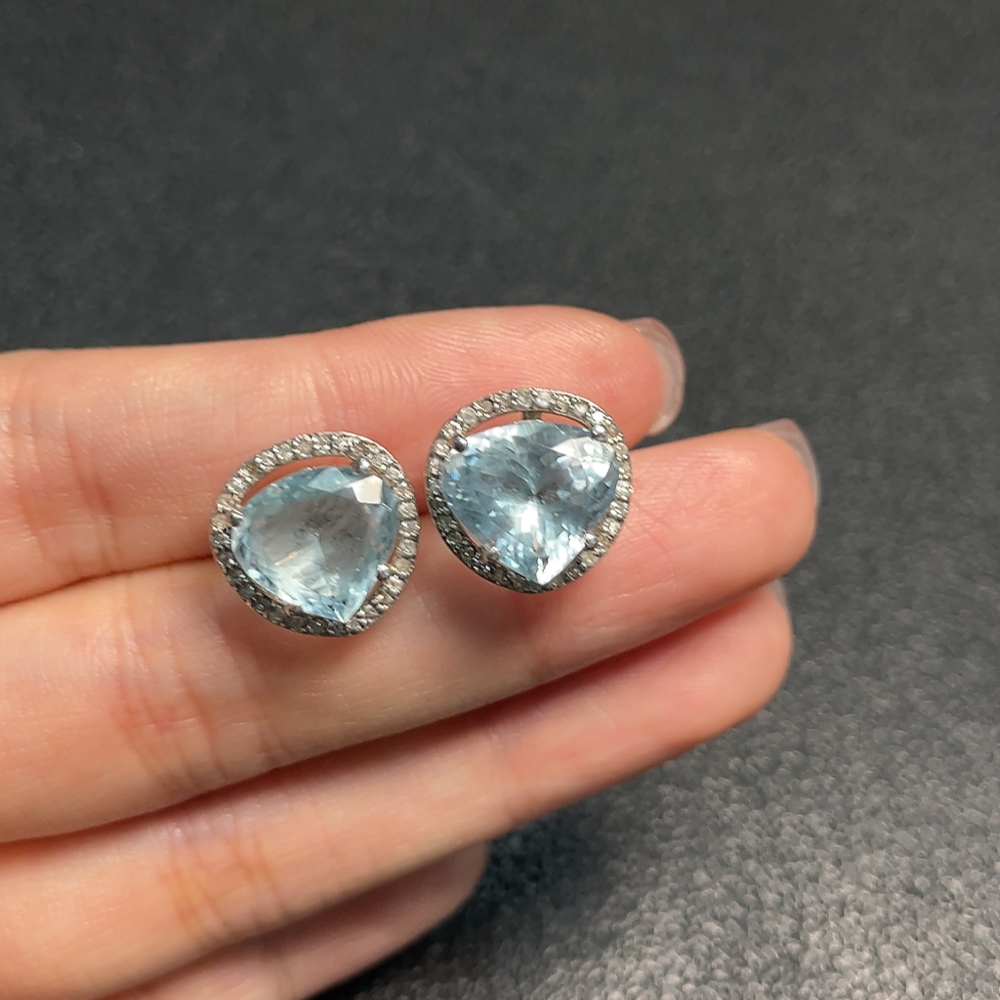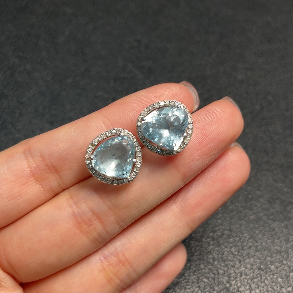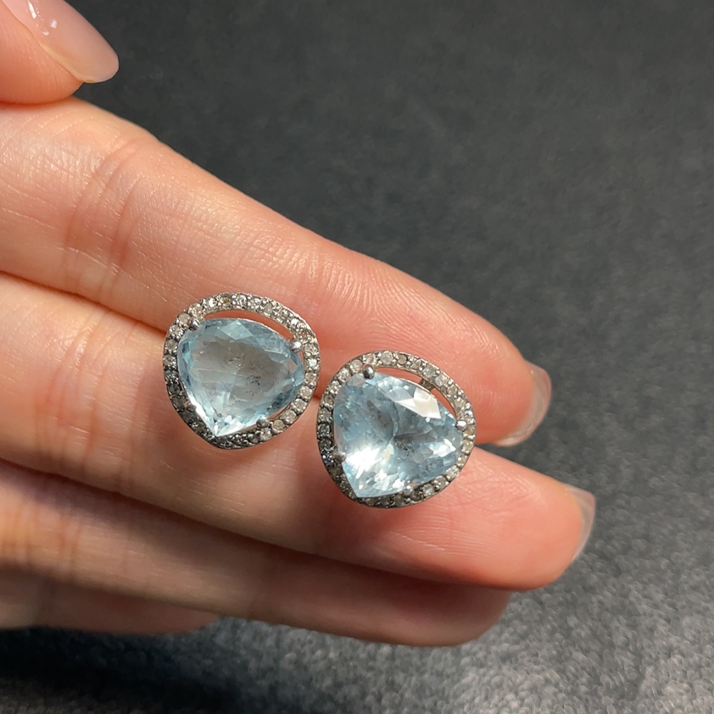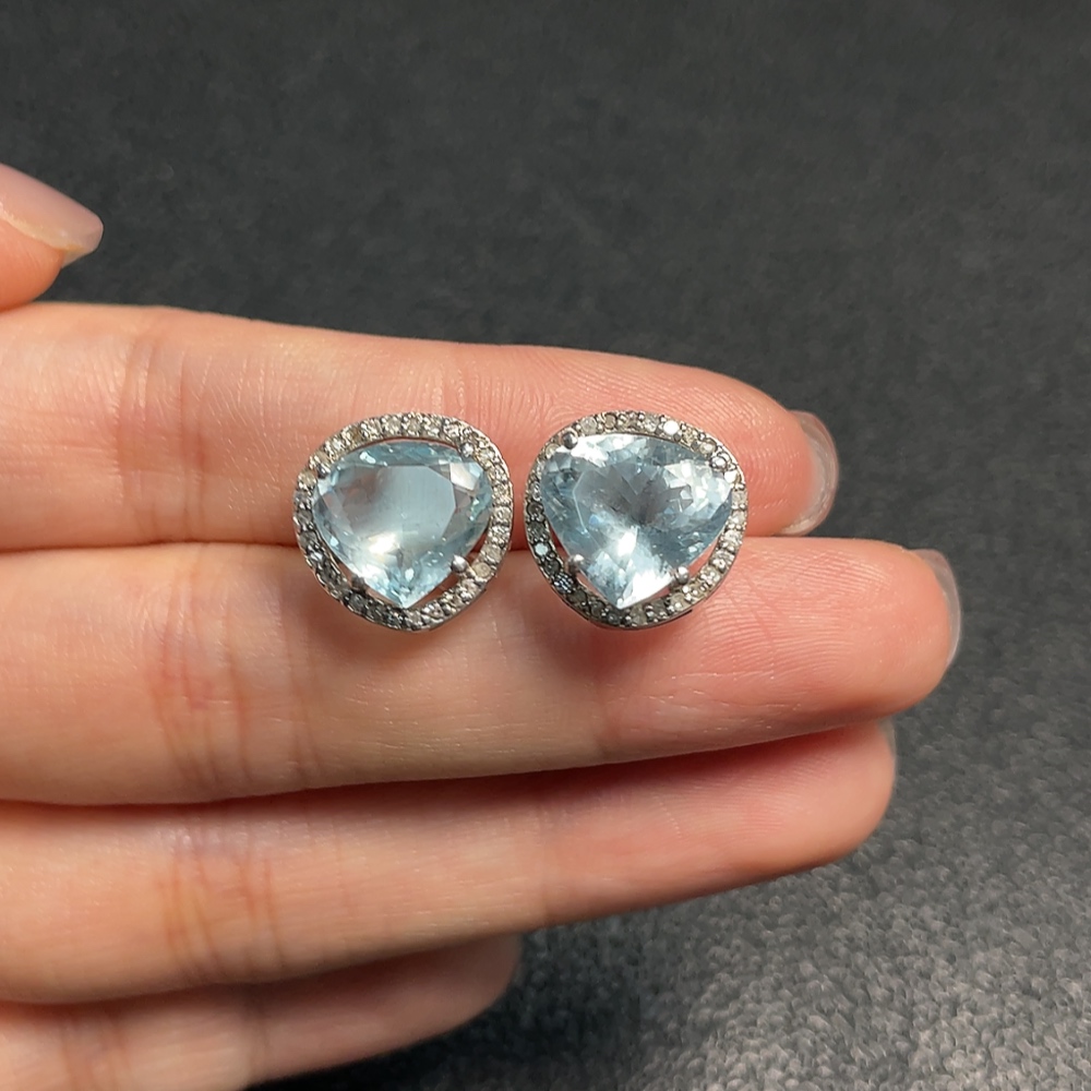 Aquamarine Earrings with Diamond Accents, Non-Gold, Total Weight Approximately 4.47g