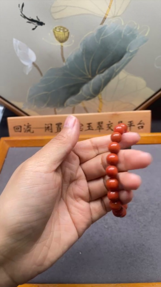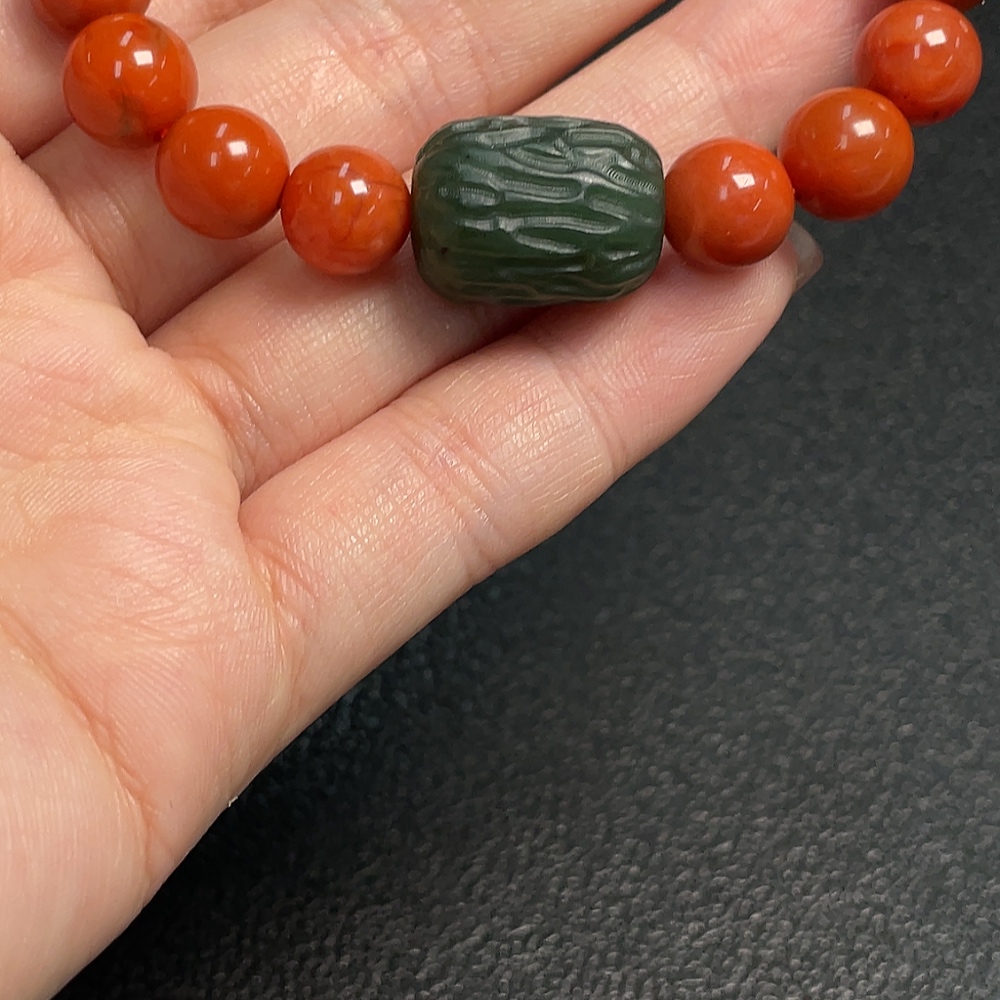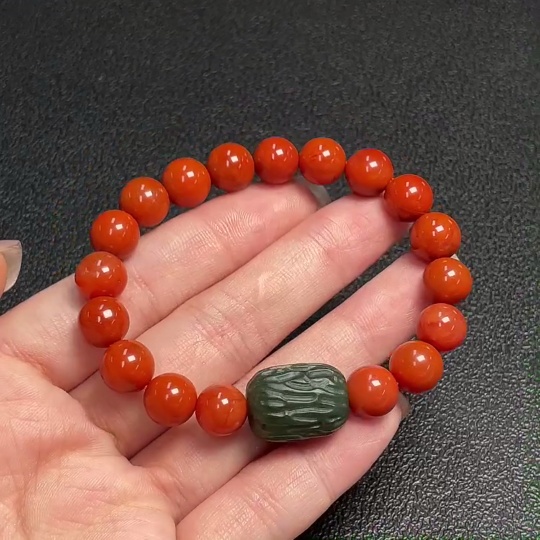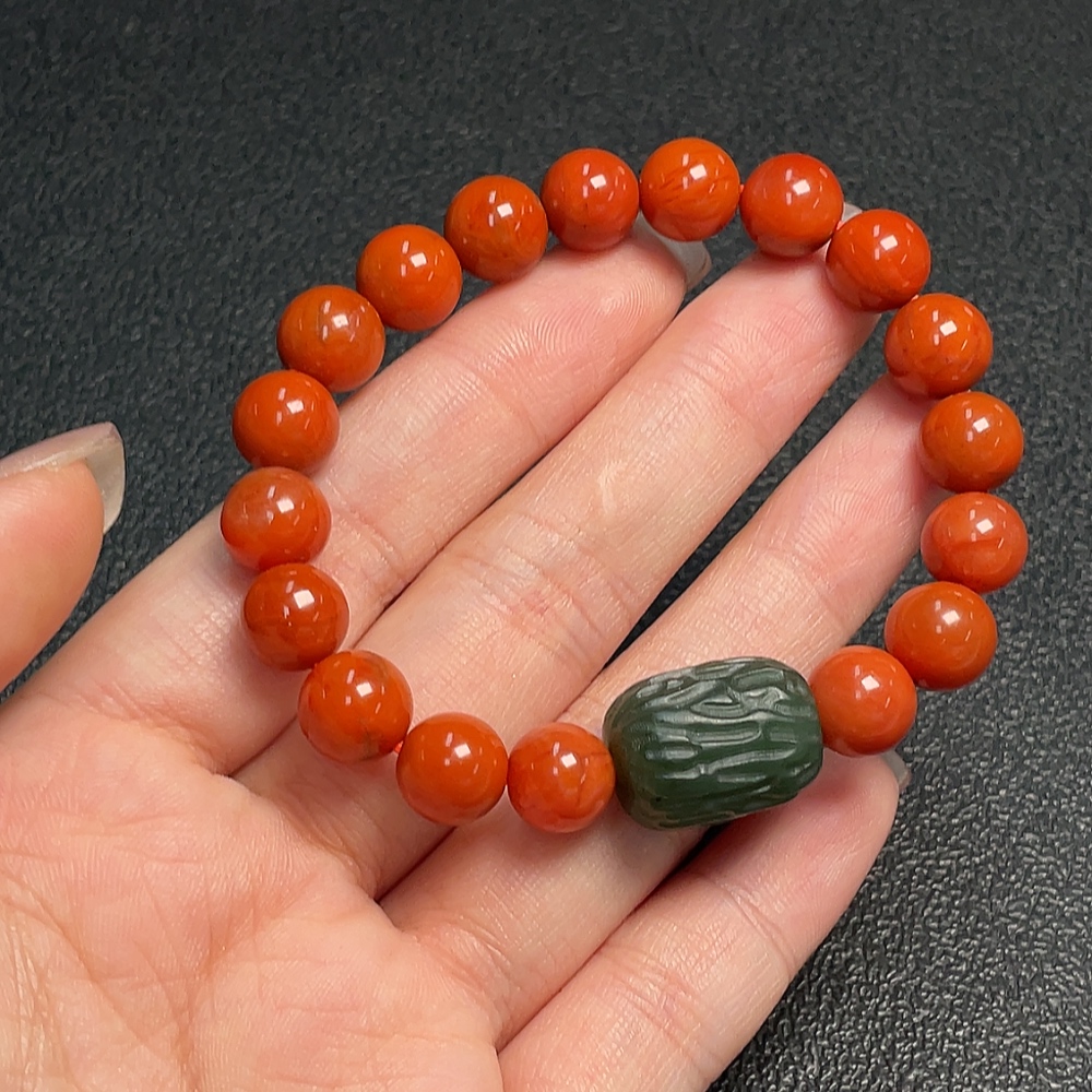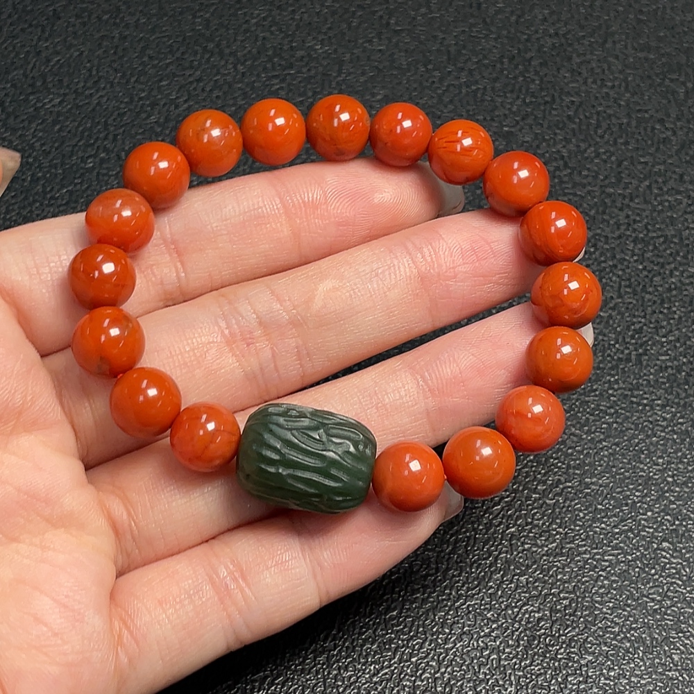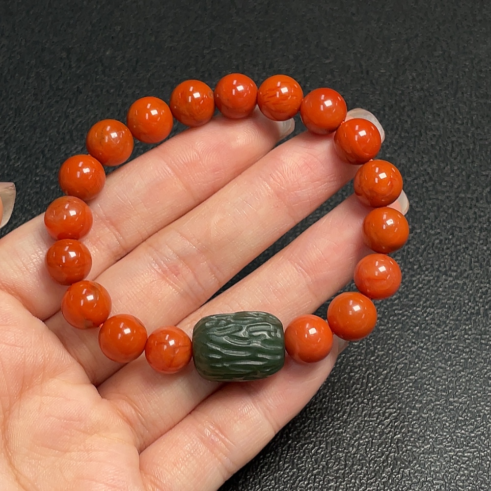 South Red Agate Bracelet with Visible Organic Matter, Total Weight Approx. 24.56g, Size About 9.2mm, Paired with Hetian Jade