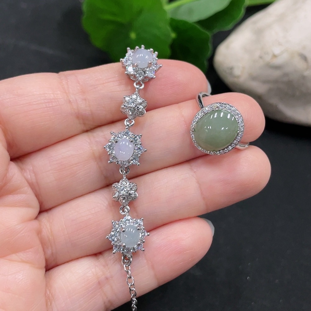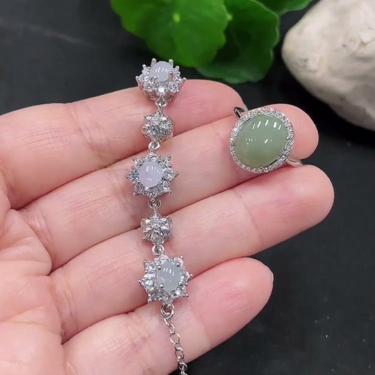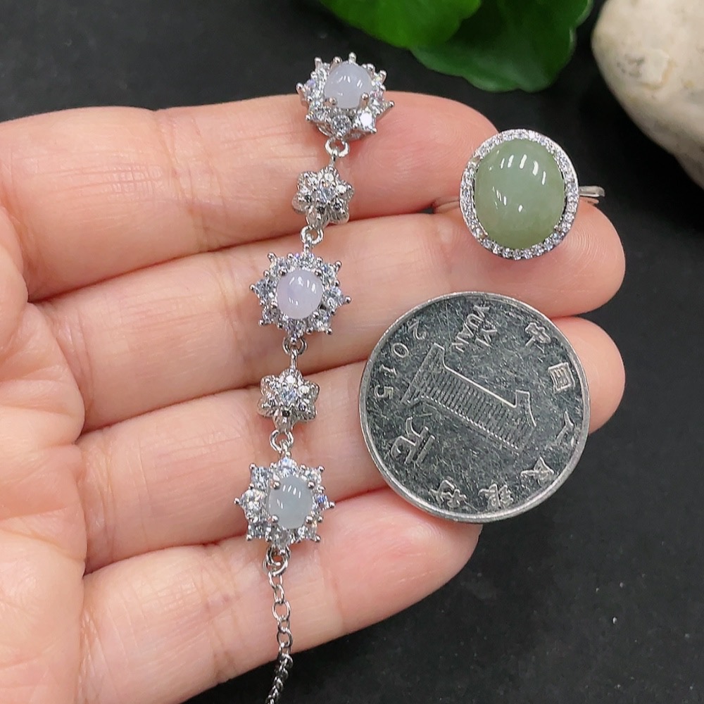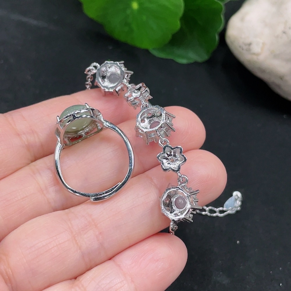 Jadeite cabochon bracelet/ring non-gold adjustable