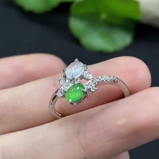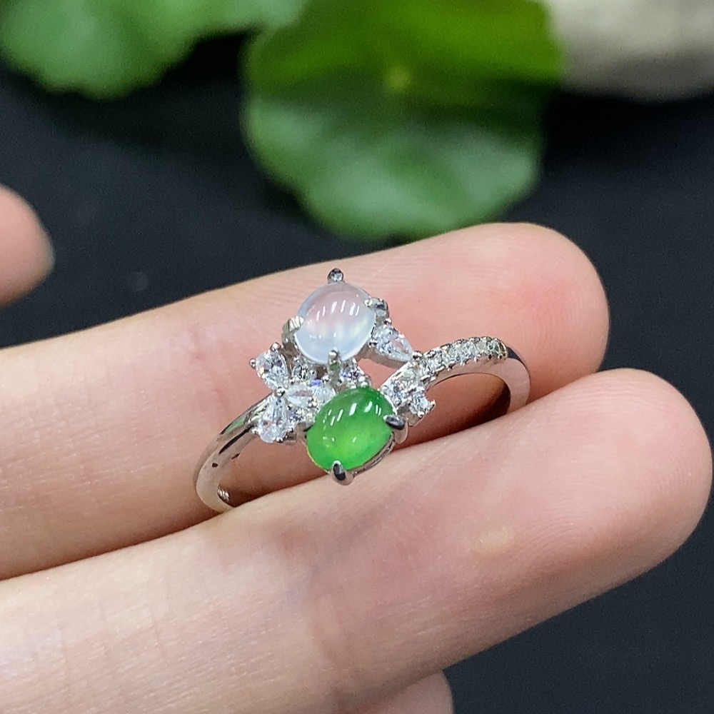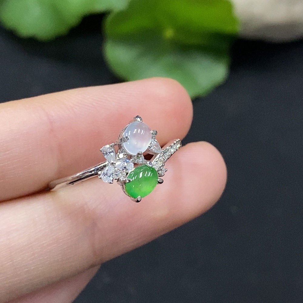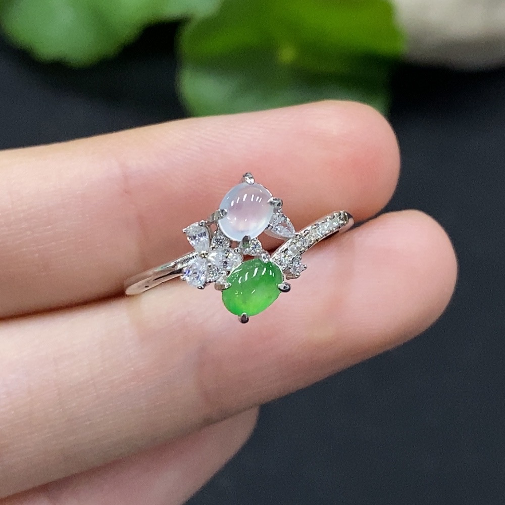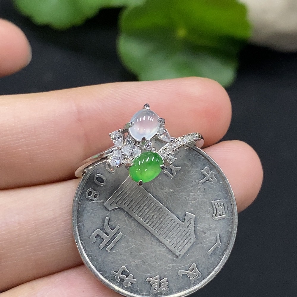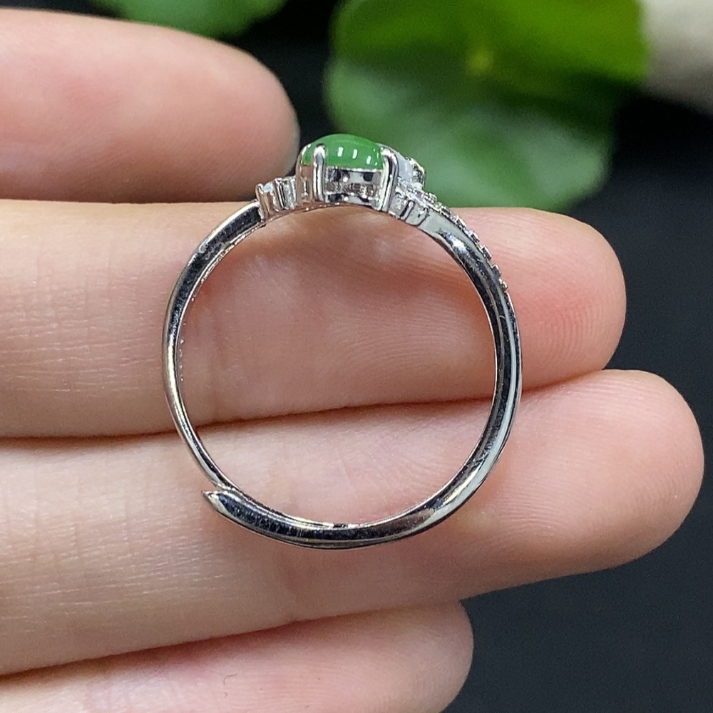 Jadeite Cabochon Inlaid Ring Non-Gold Setting Adjustable Total Weight Approx. 1.89g
