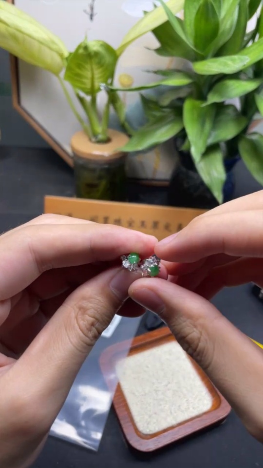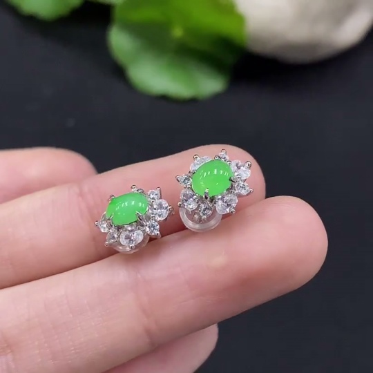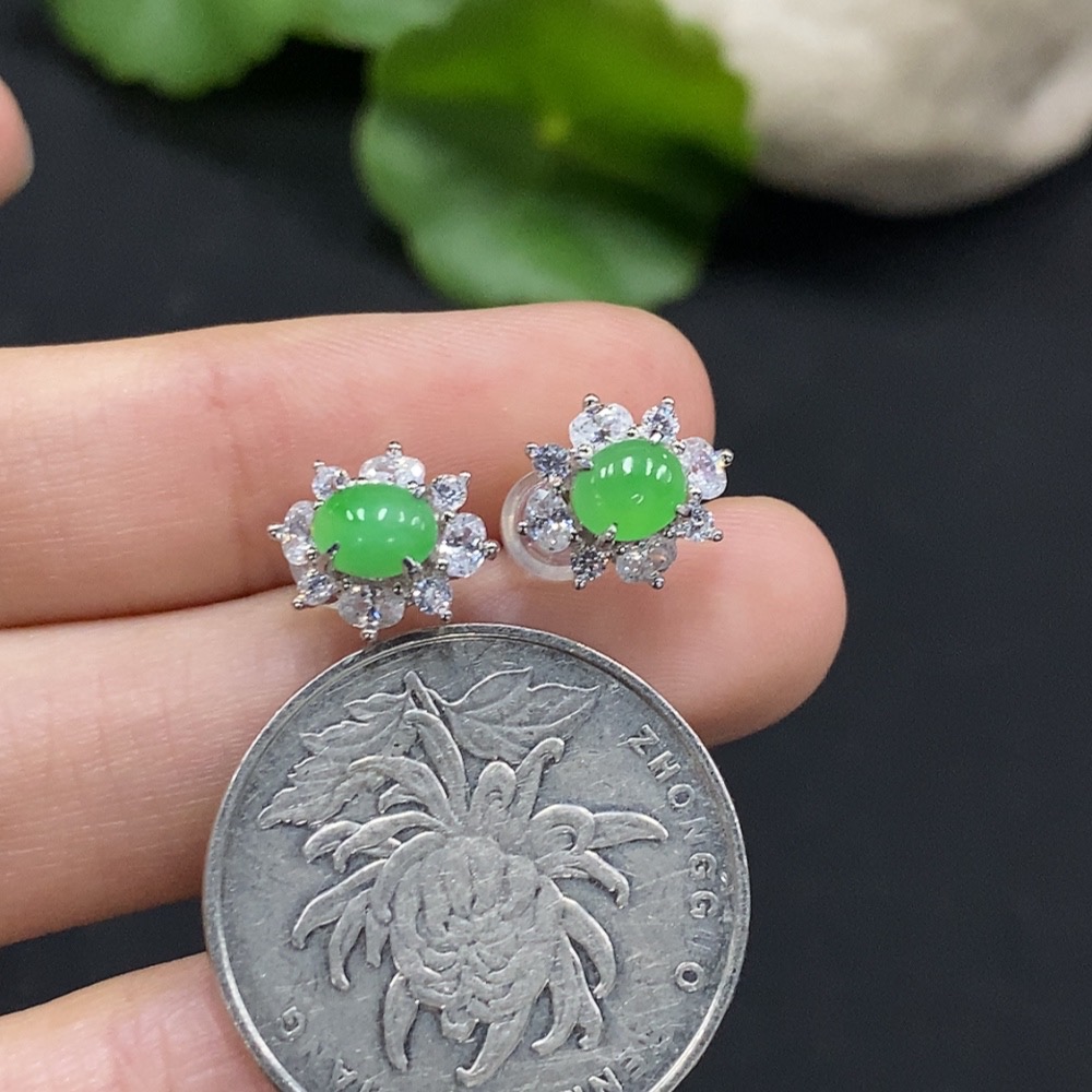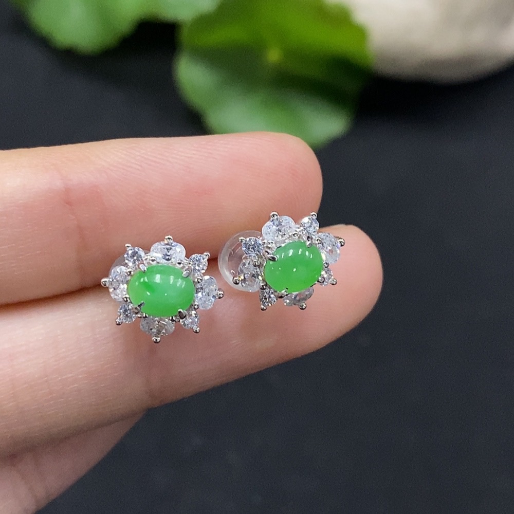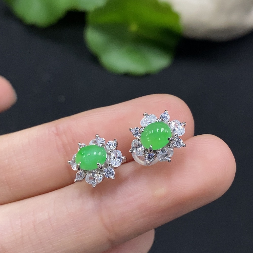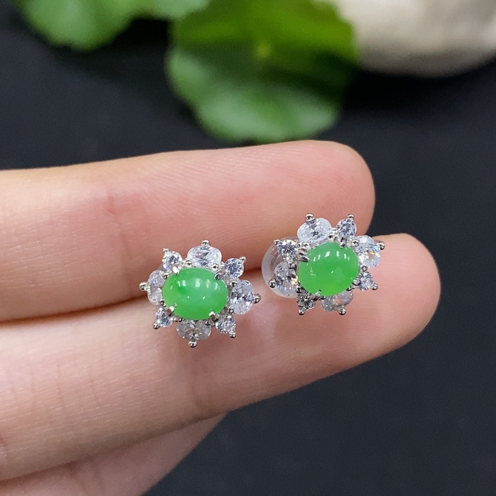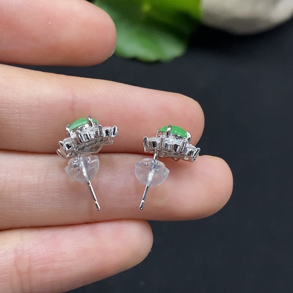 Jadeite Cabochon Earrings Non-Gold Setting Total Weight Approx. 1.8g