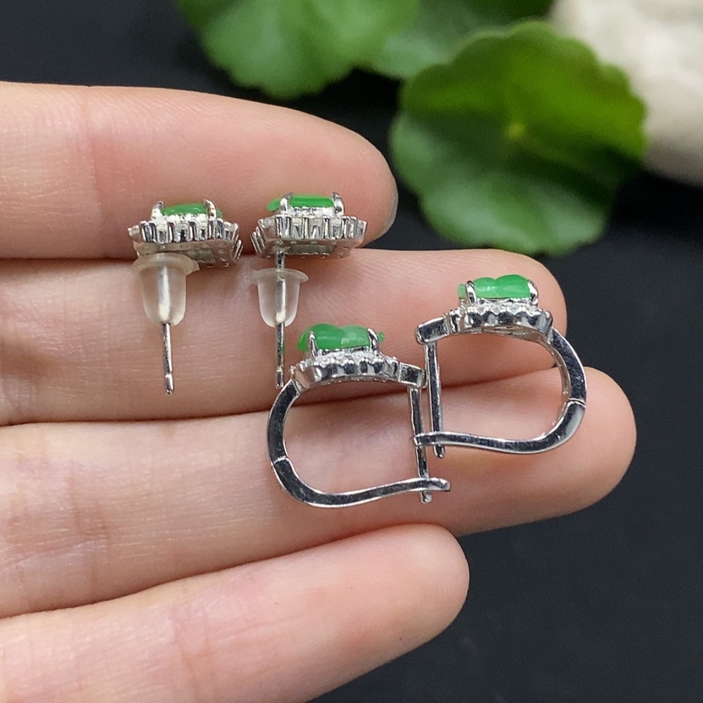Jadeite Cabochon Stud Earrings Non-Gold Setting Sell as a Lot