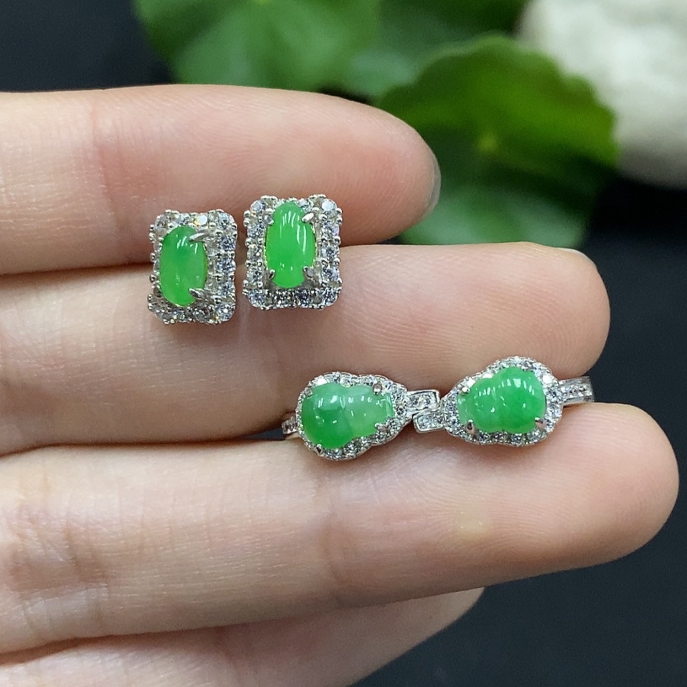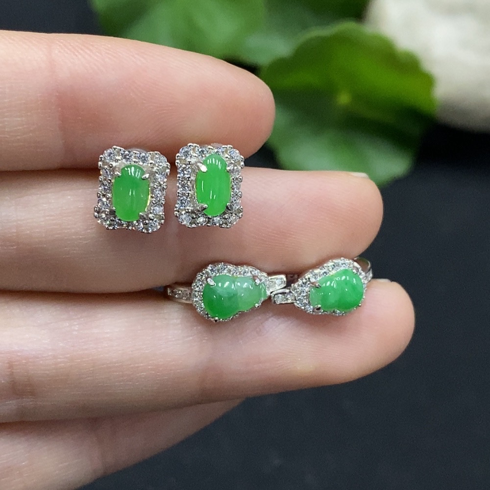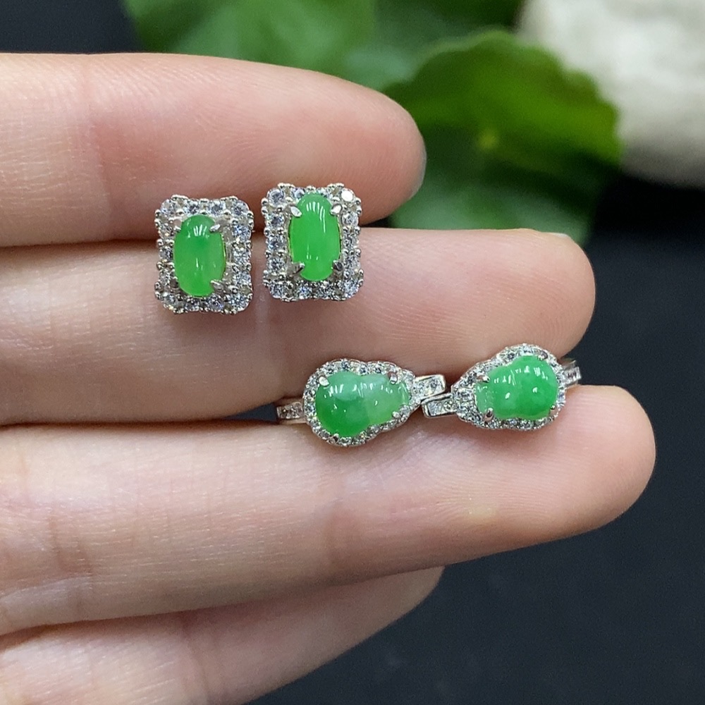 Trezaar - Jadeite Cabochon Stud Earrings Non-Gold Setting Sell as a Lot