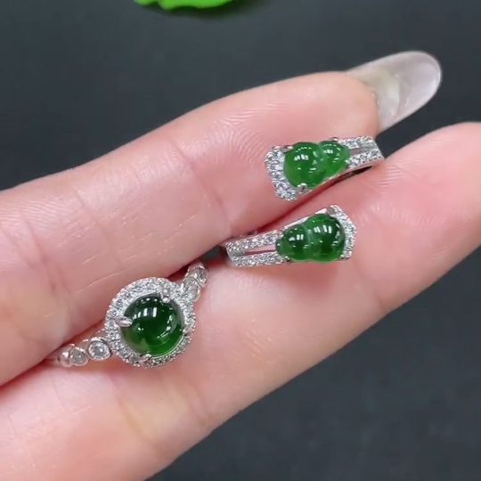 Jadeite Inlaid Ring Non-Gold Adjustable
