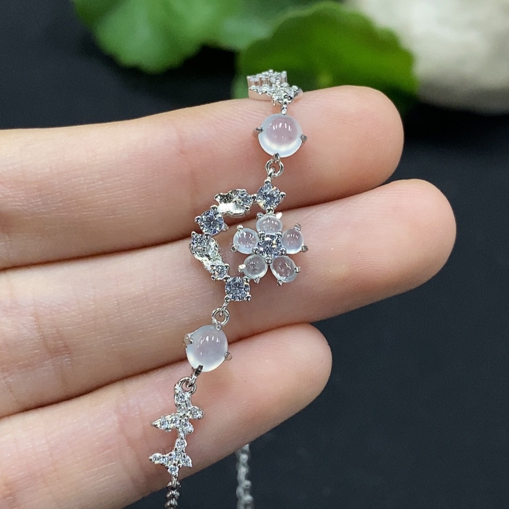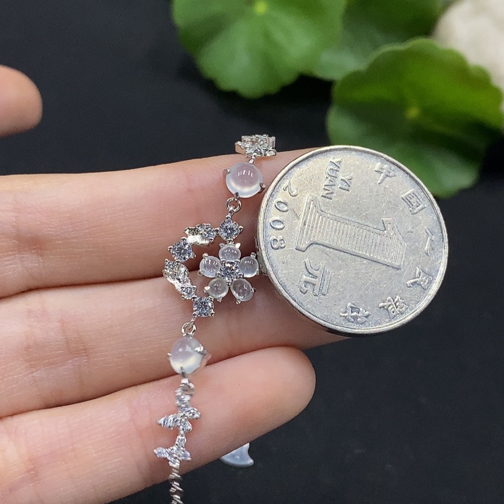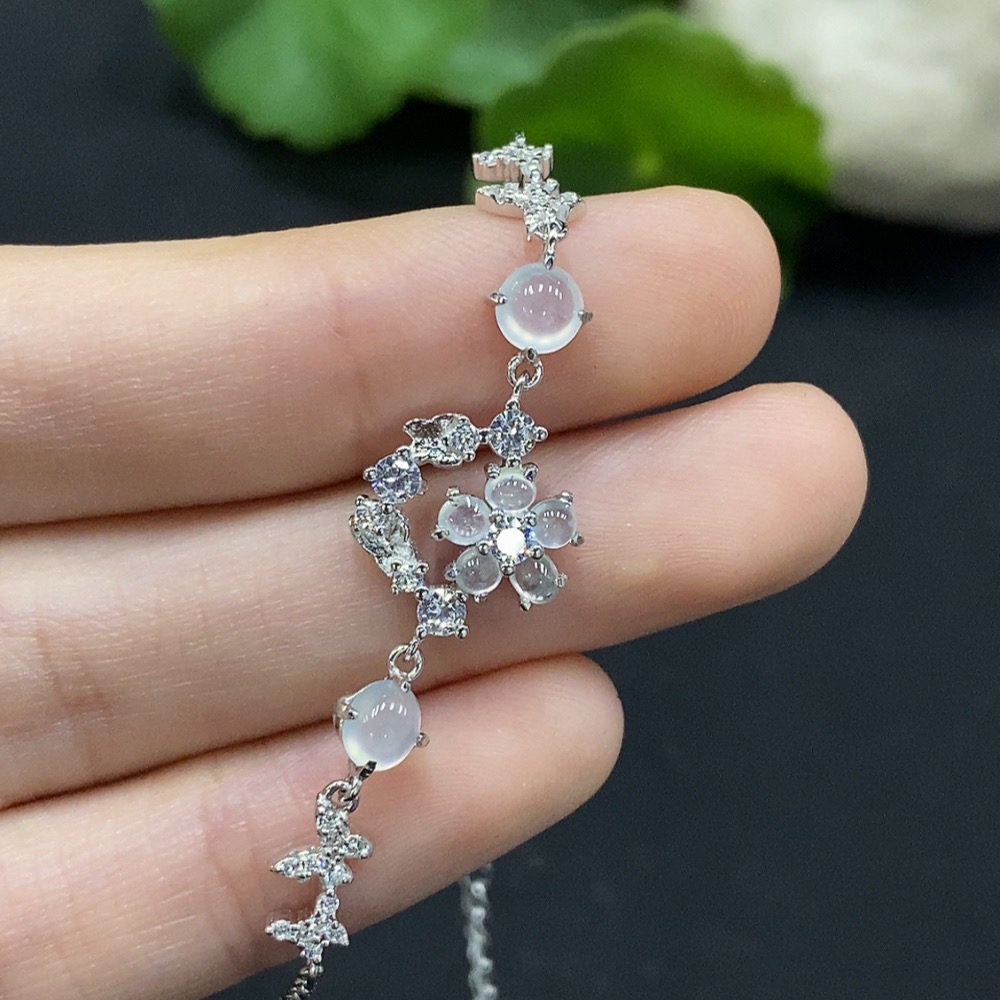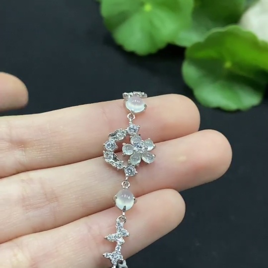 Jadeite Cabochon Inlaid Bracelet Non-Gold Inlaid Total Weight Approx. 2.98g