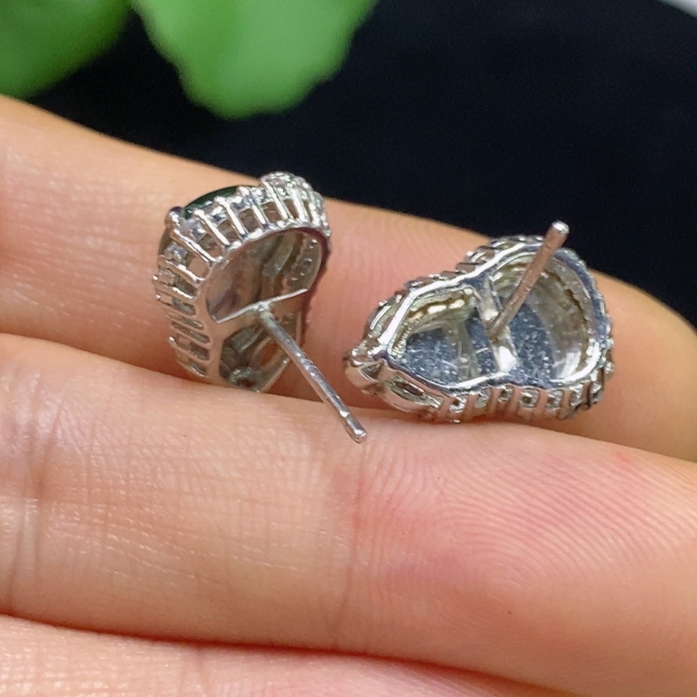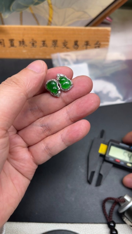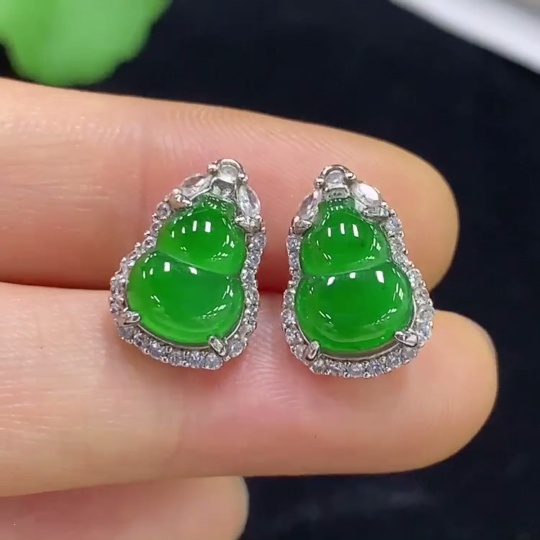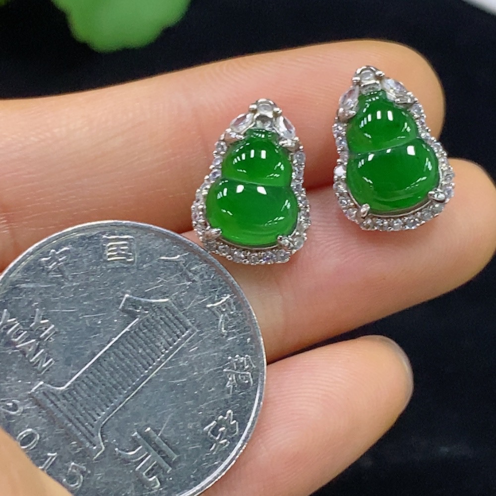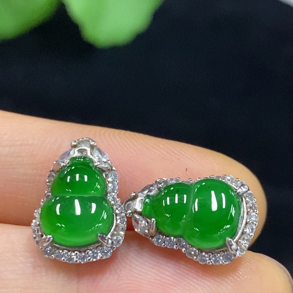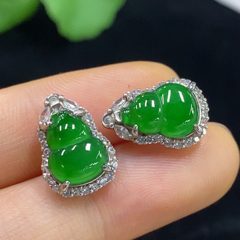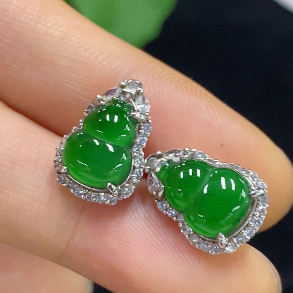Jadeite Gourd Inlaid Earrings Non-Gold Total Weight Approx. 2.72g