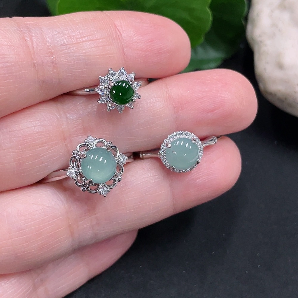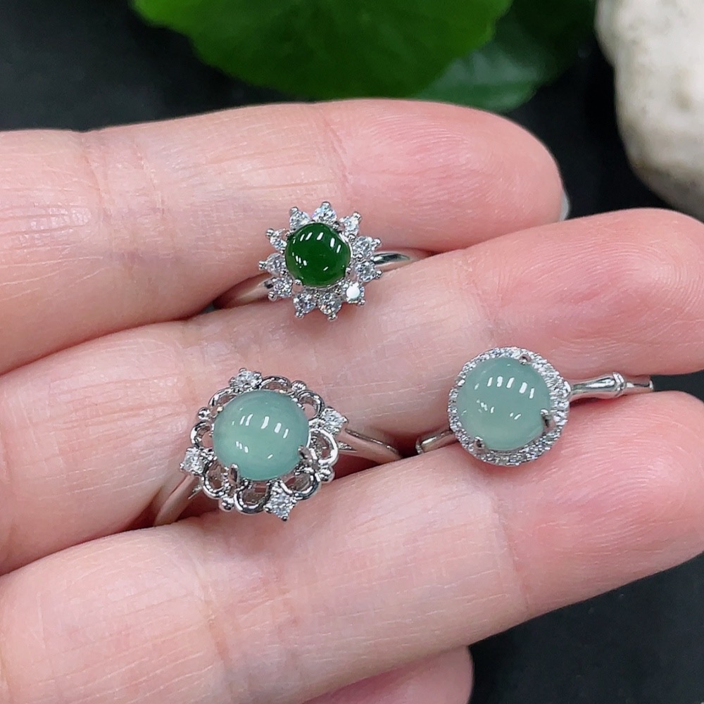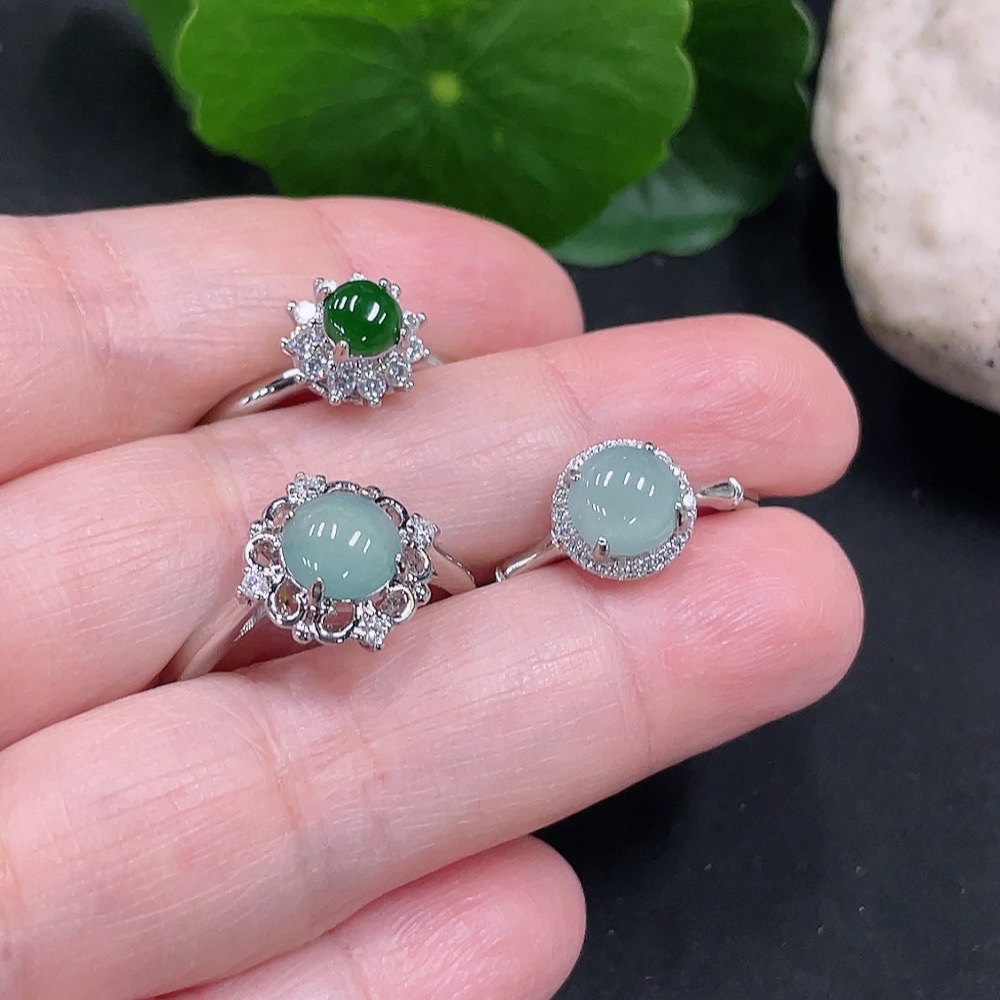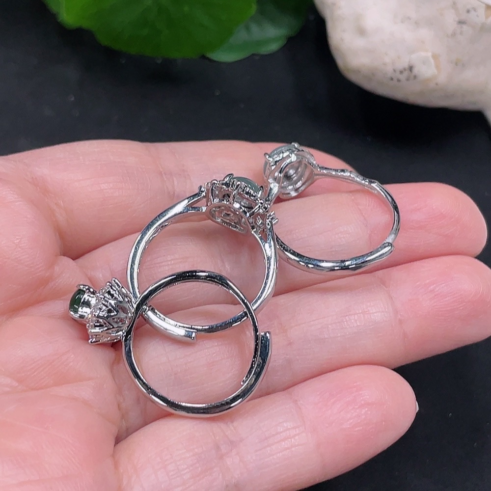 Jadeite Inlaid Ring Sell as a Lot (Non-Gold Inlaid) (Adjustable)