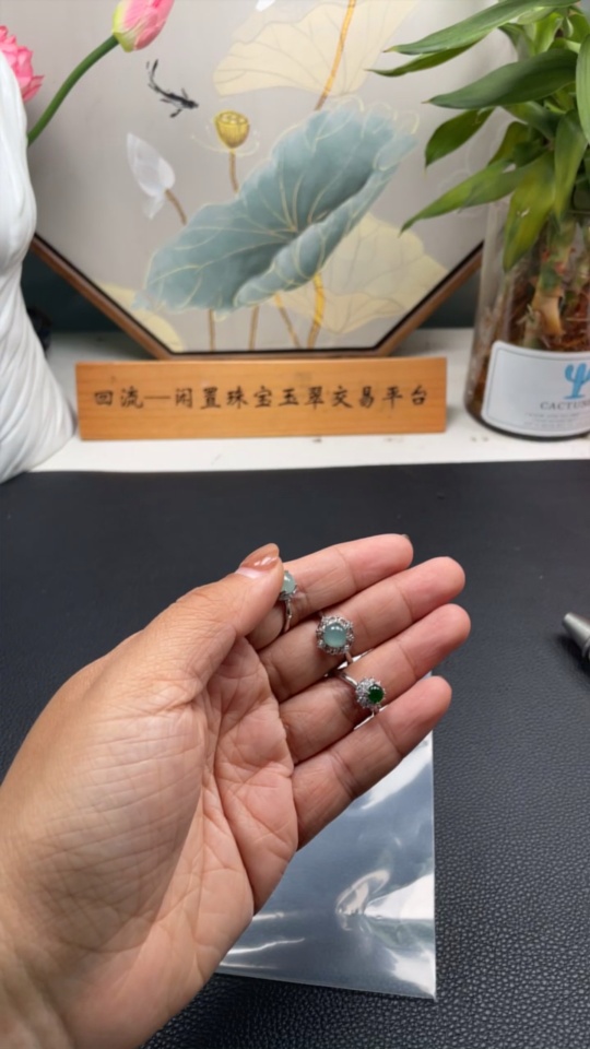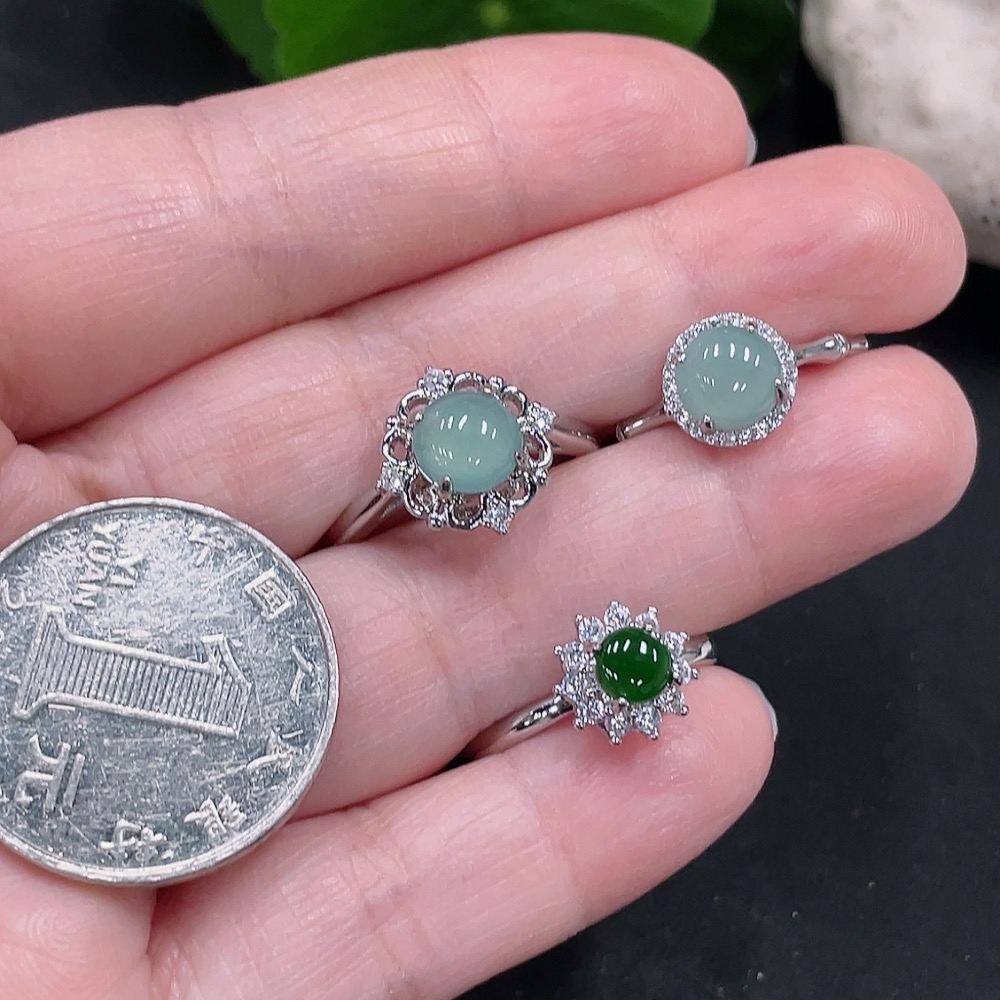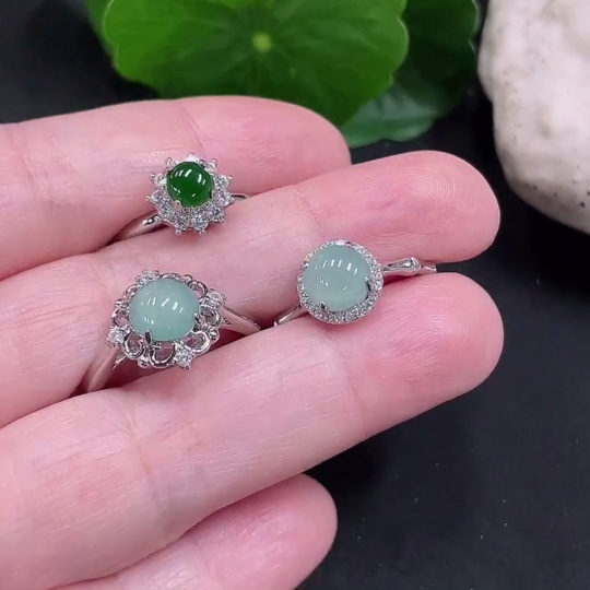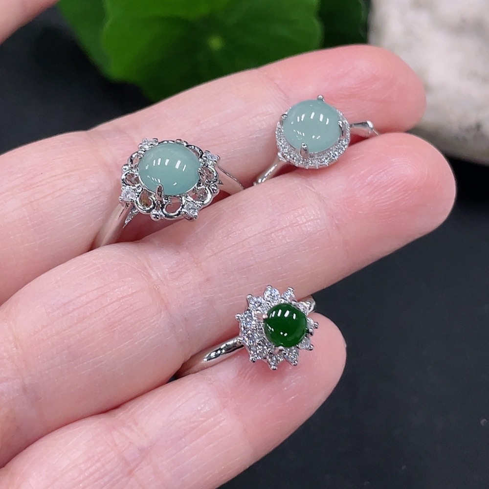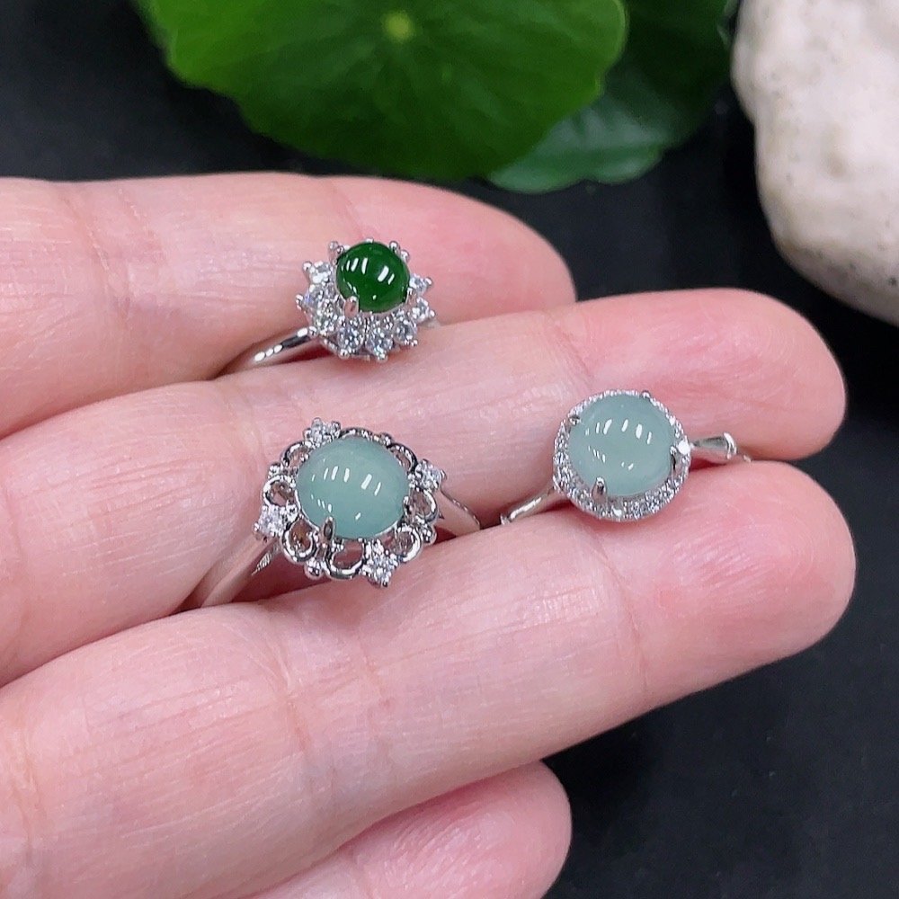 Jadeite Inlaid Ring Sell as a Lot (Non-Gold Inlaid) (Adjustable)