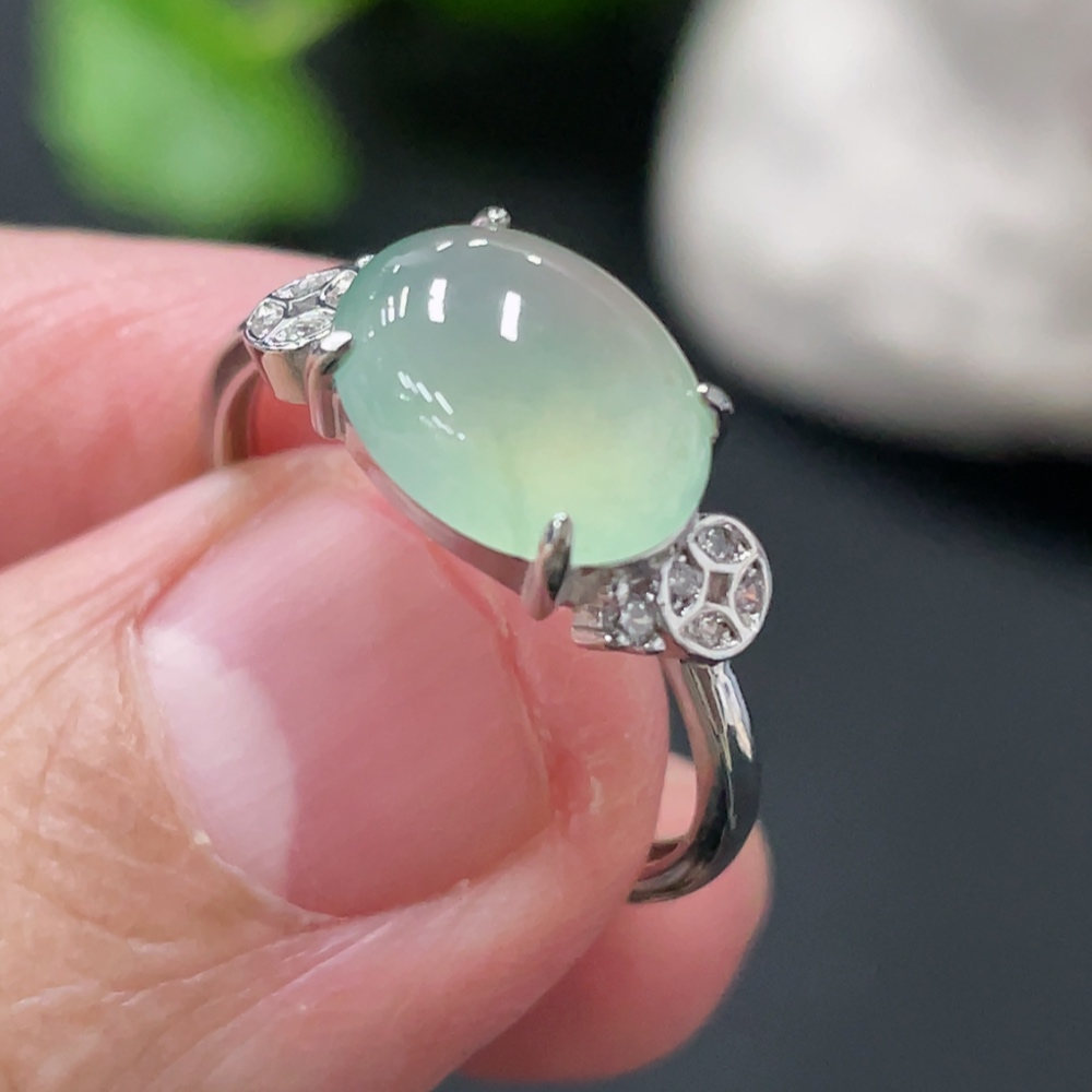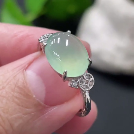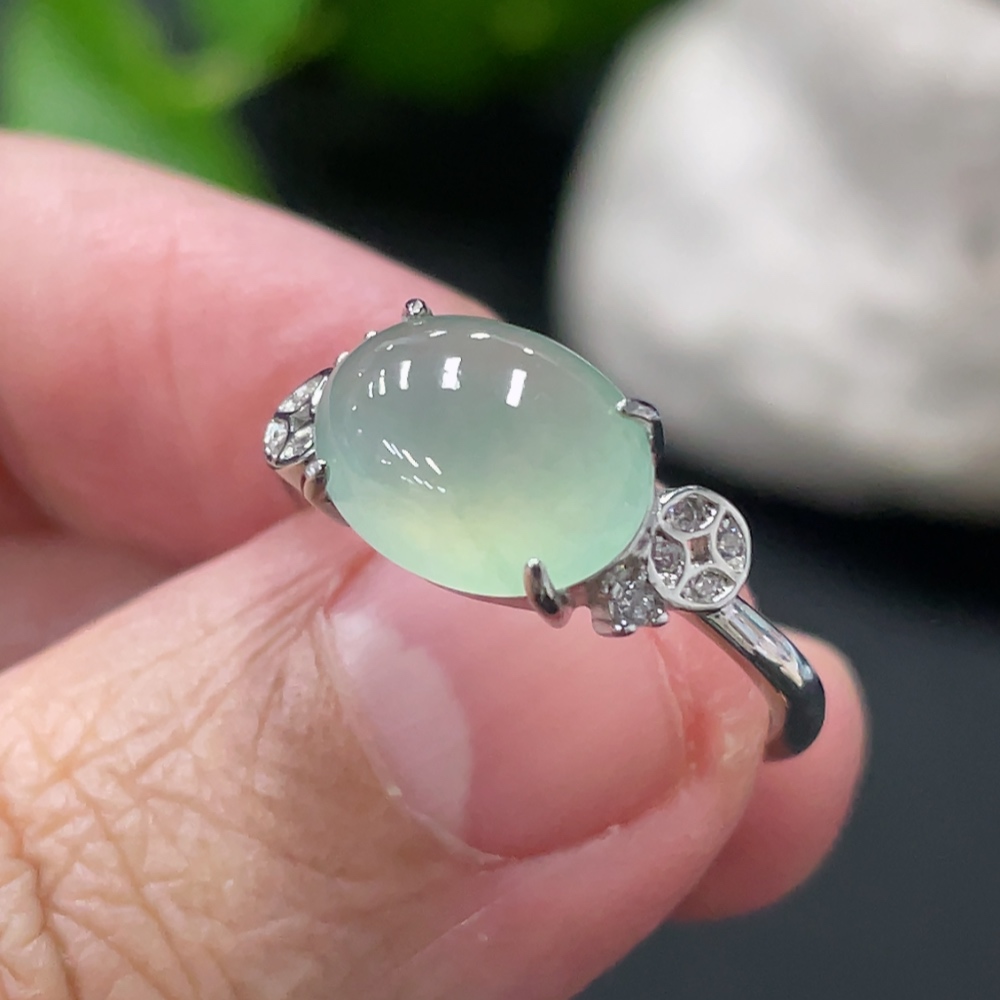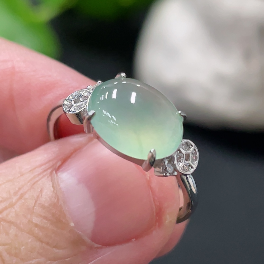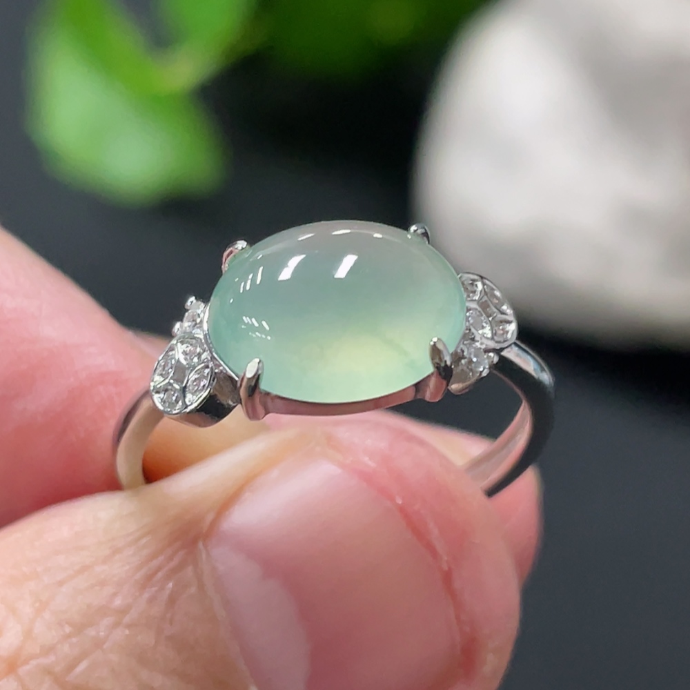Jadeite Cabochon Ring, Non-Gold Setting, Adjustable Size, Total Weight Approx. 2.26g