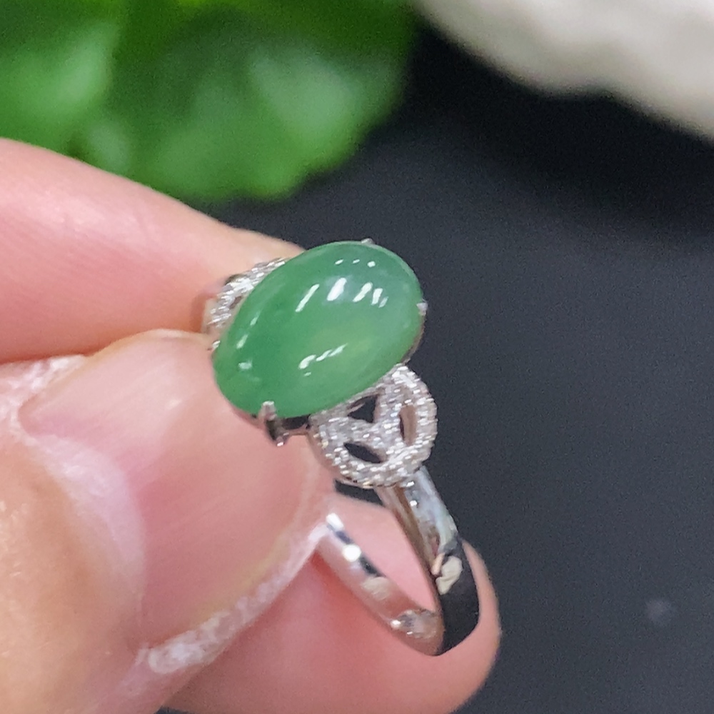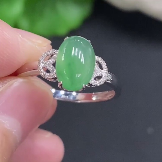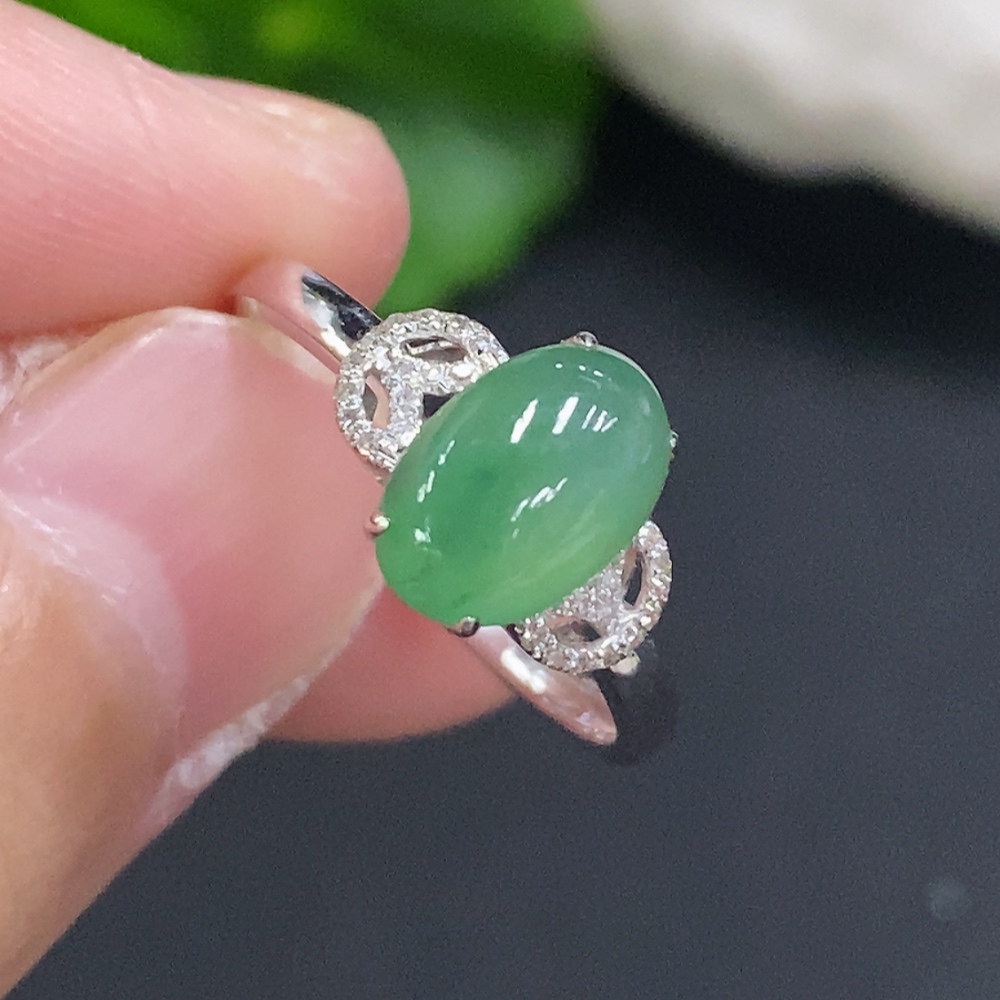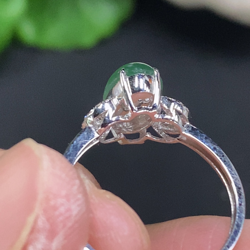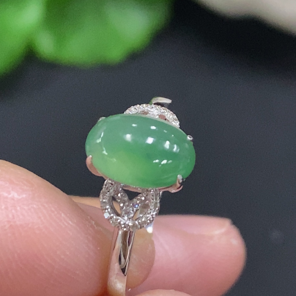 Jadeite Inlaid Ring 18k with Diamond Accents Size 14 Total Weight Approx. 1.95g