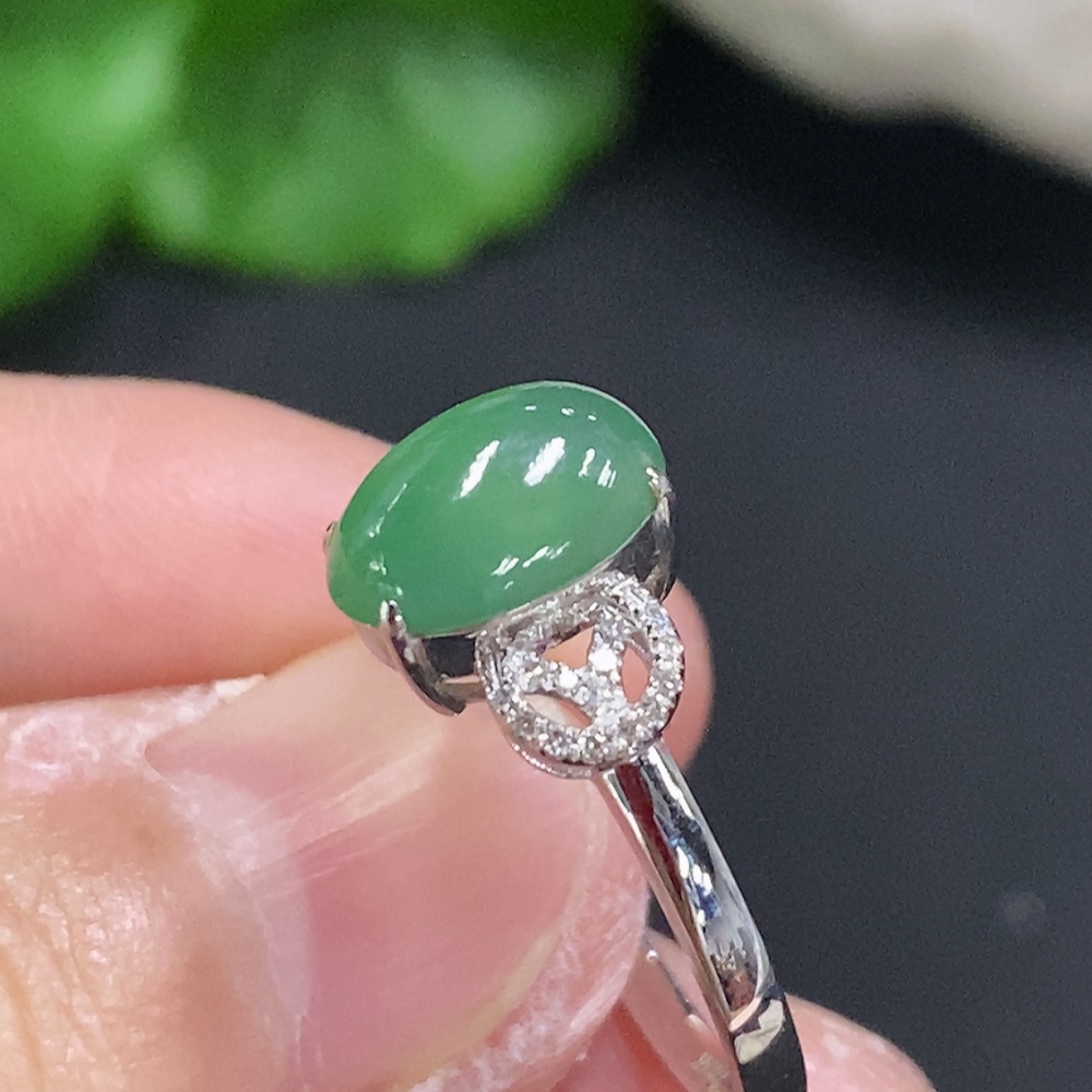 Trezaar - Jadeite Inlaid Ring 18k with Diamond Accents Size 14 Total Weight Approx. 1.95g
