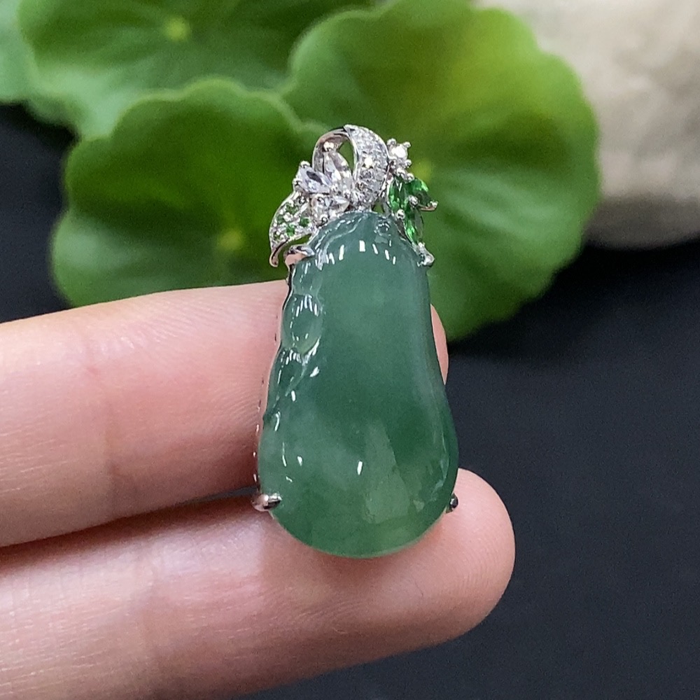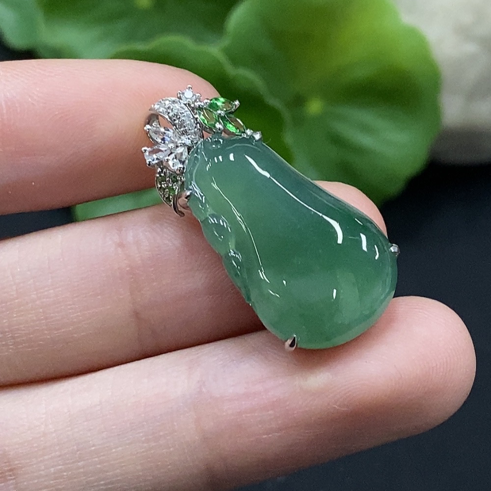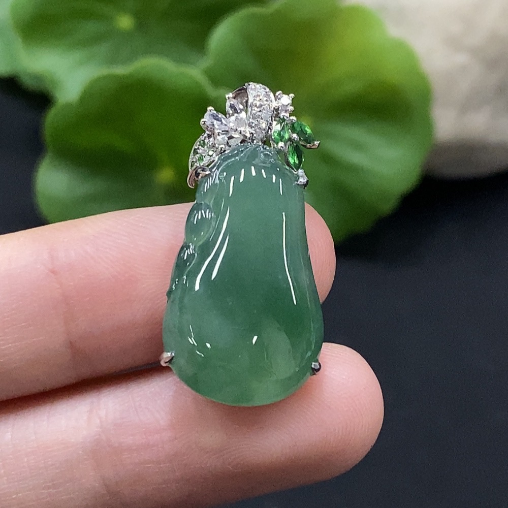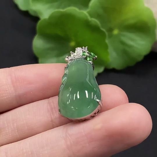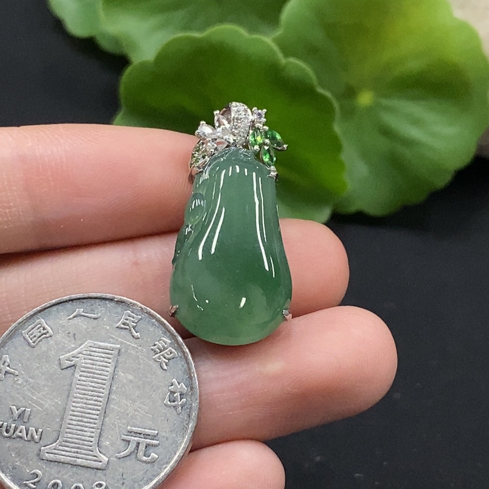 Jadeite Blessing Melon Pendant with 18K Gold and Diamond Accents (minimum accent stones only) (colorless) Total Weight Approx. 4.53g