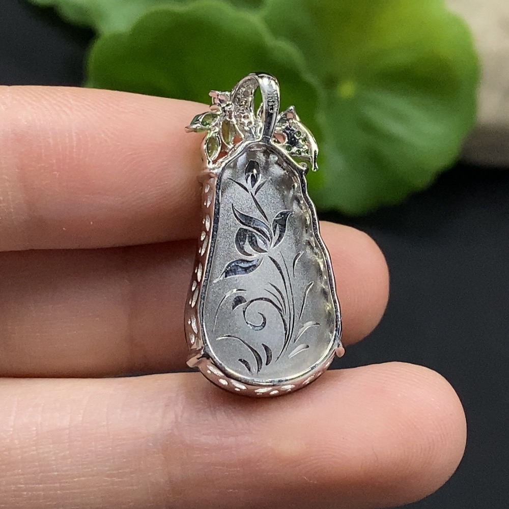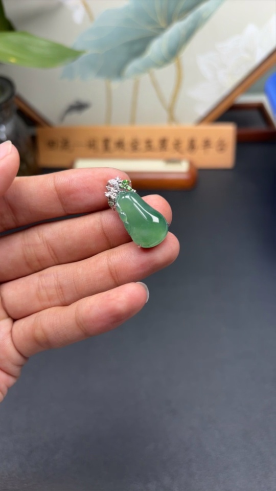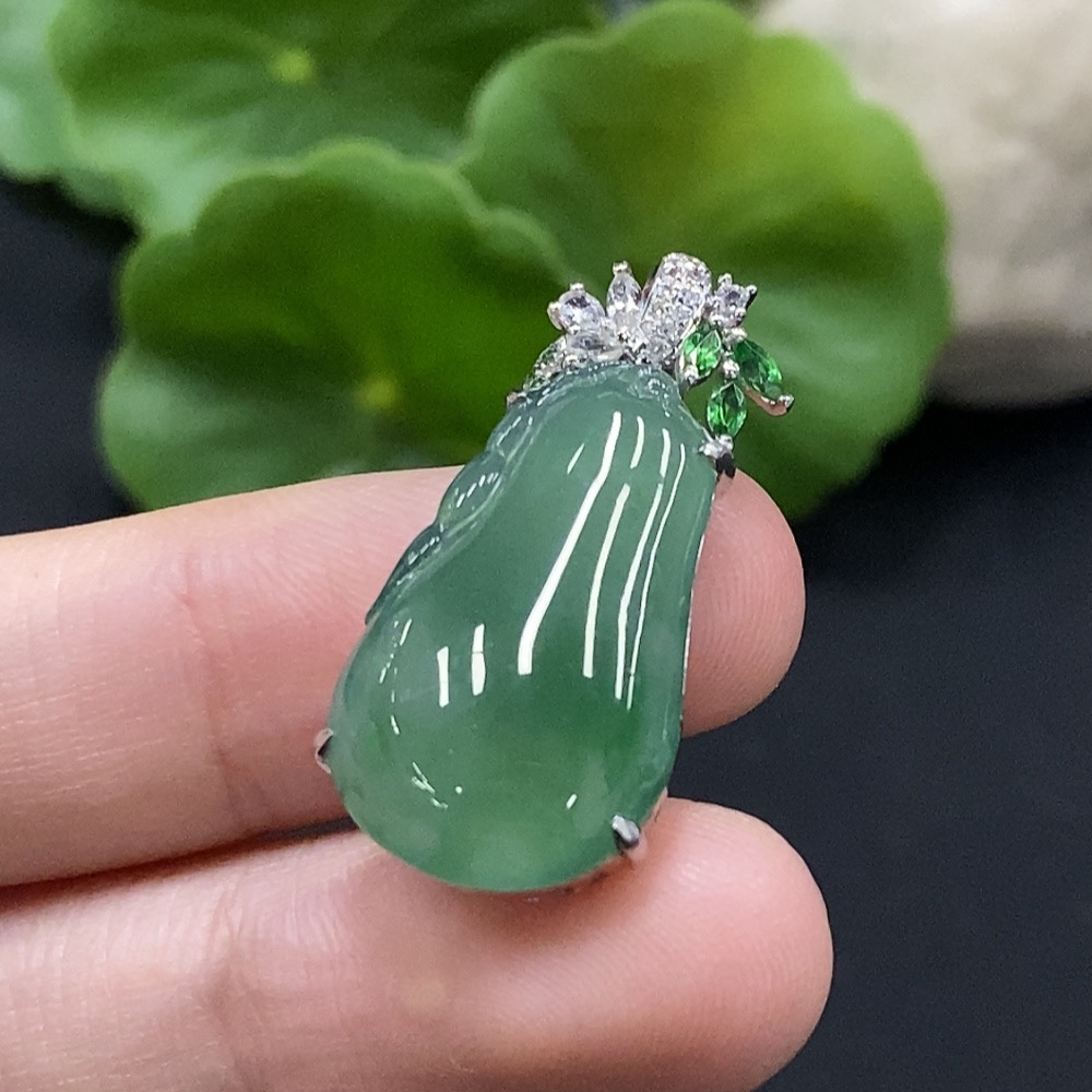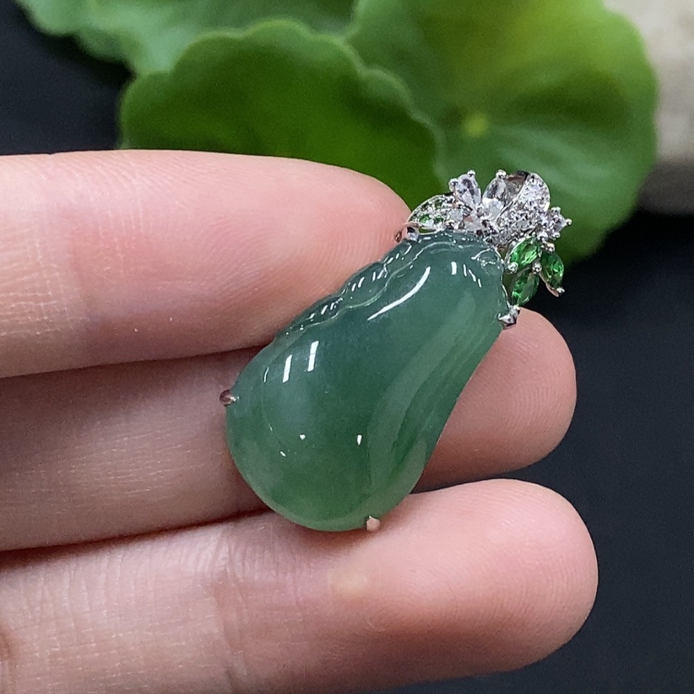 Jadeite Blessing Melon Pendant with 18K Gold and Diamond Accents (minimum accent stones only) (colorless) Total Weight Approx. 4.53g