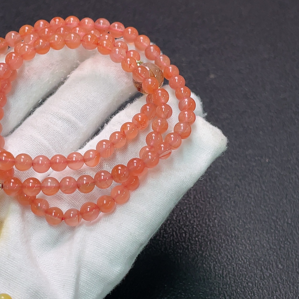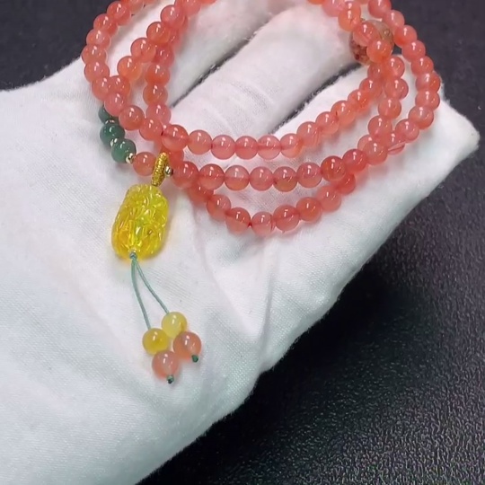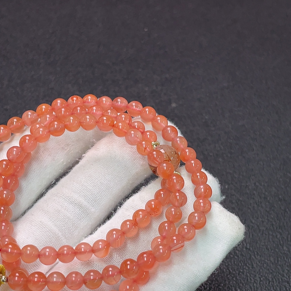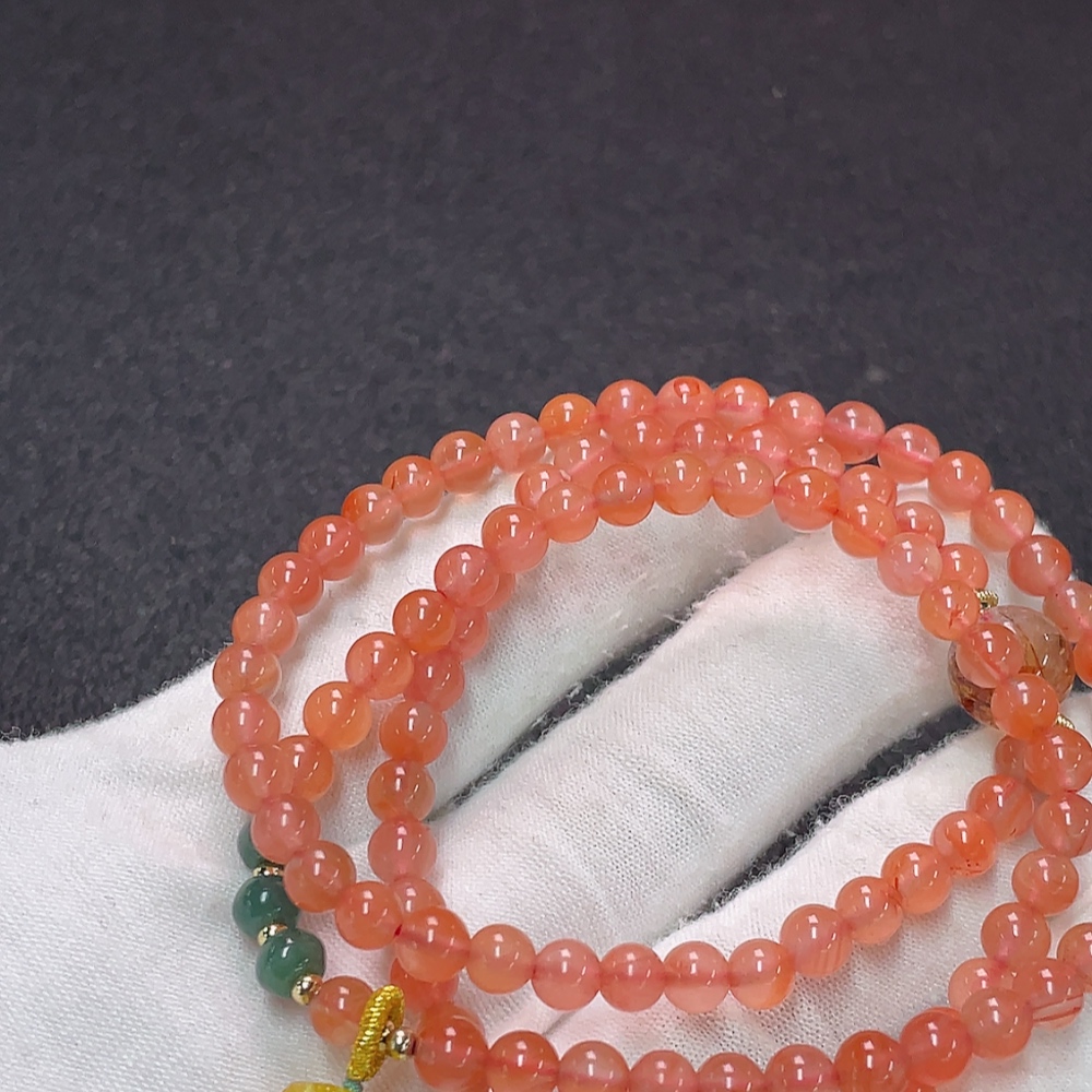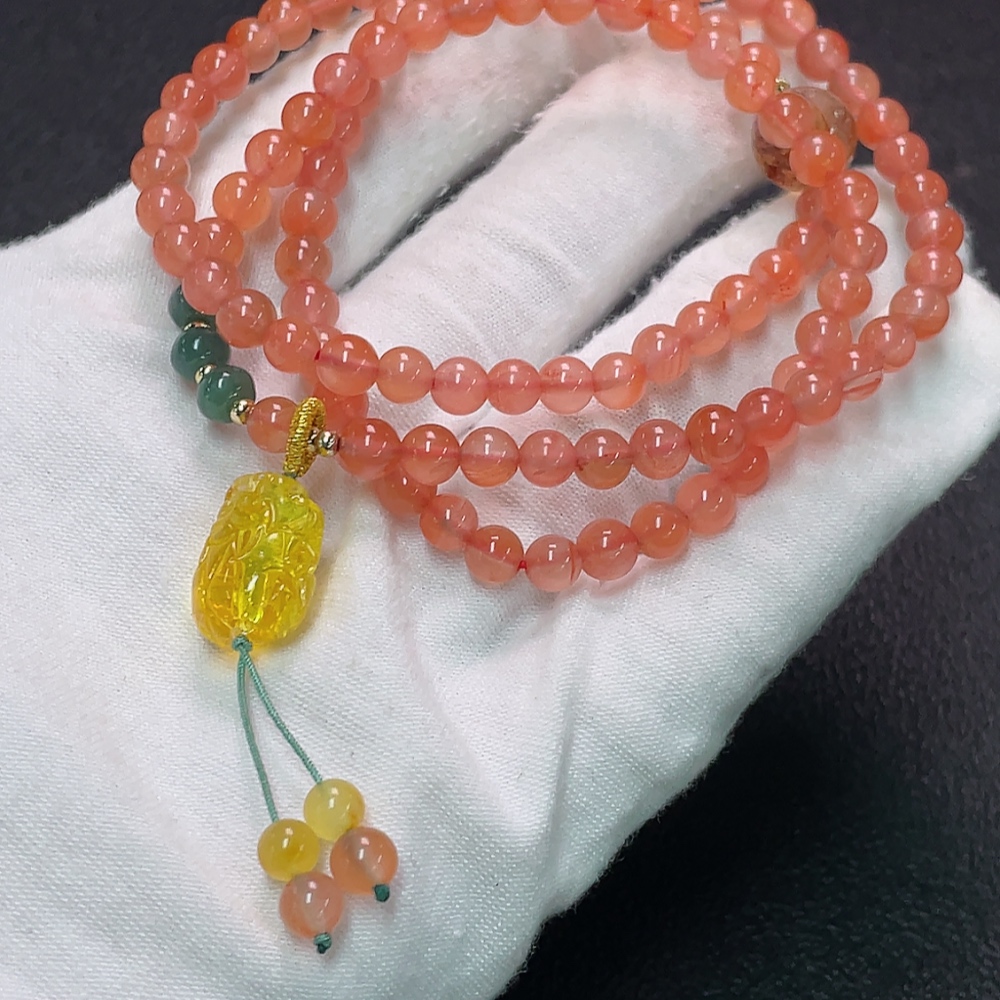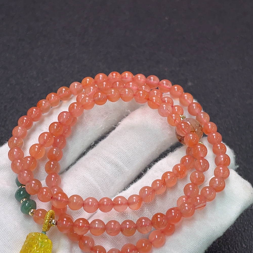 Red Agate Bead Bracelet with Amber + Jadeite, Visible Organic Matter, Non-Natural Accent Stones Considered, Non-Metal, Total Weight Approx. 23.78g, Size ~5.1mm