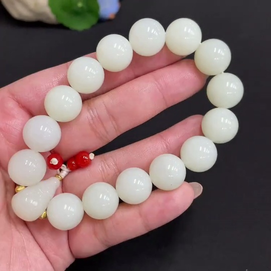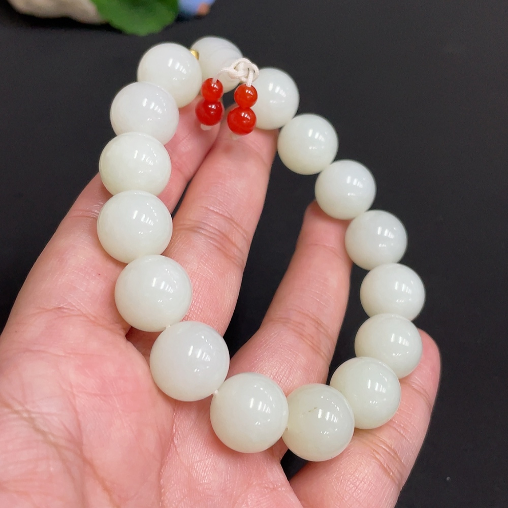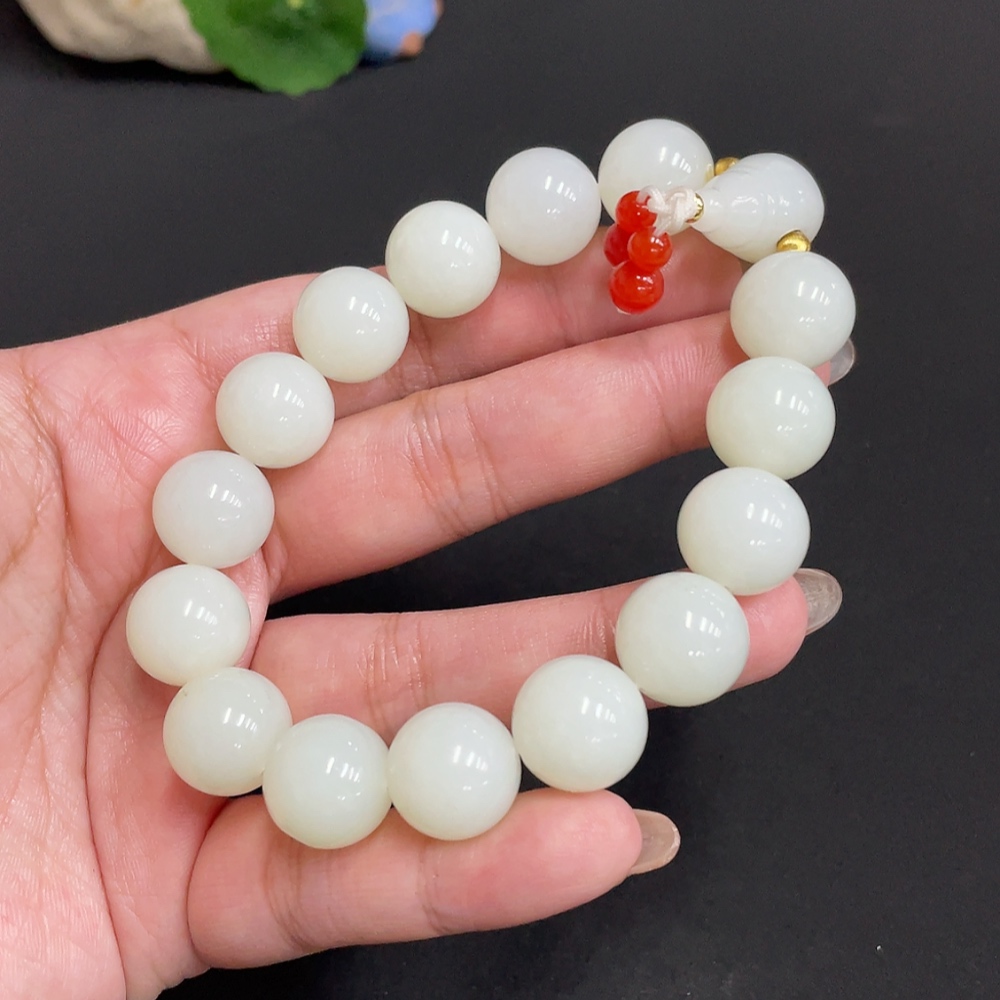 Hetian Jade Bracelet, approx. 13.8mm, total weight approx. 67.8g, contains other mineral components