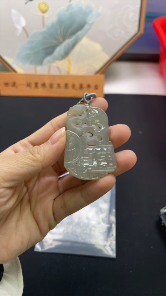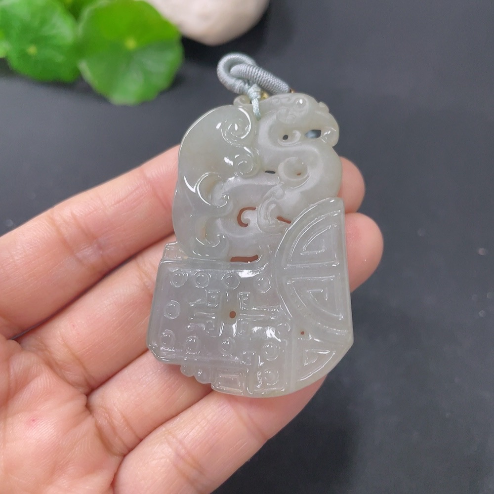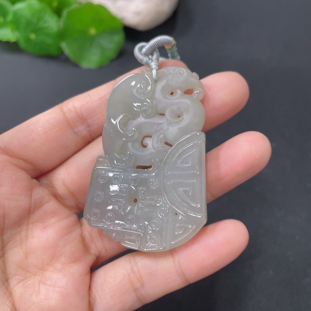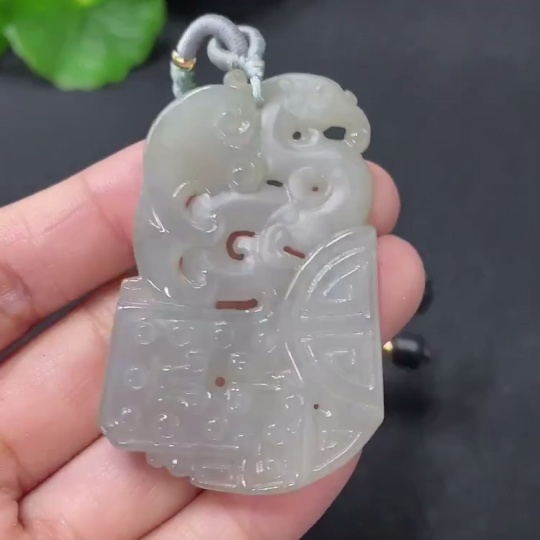 Jadeite Pendant Antique Plaque Total Weight Including Rope 23.14g