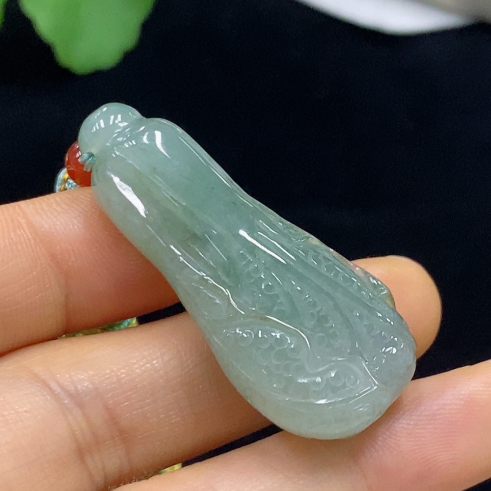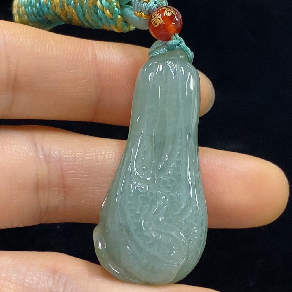 Jadeite Cabbage Pendant Total Weight Approx. 20.29g (Including Rope Weight)