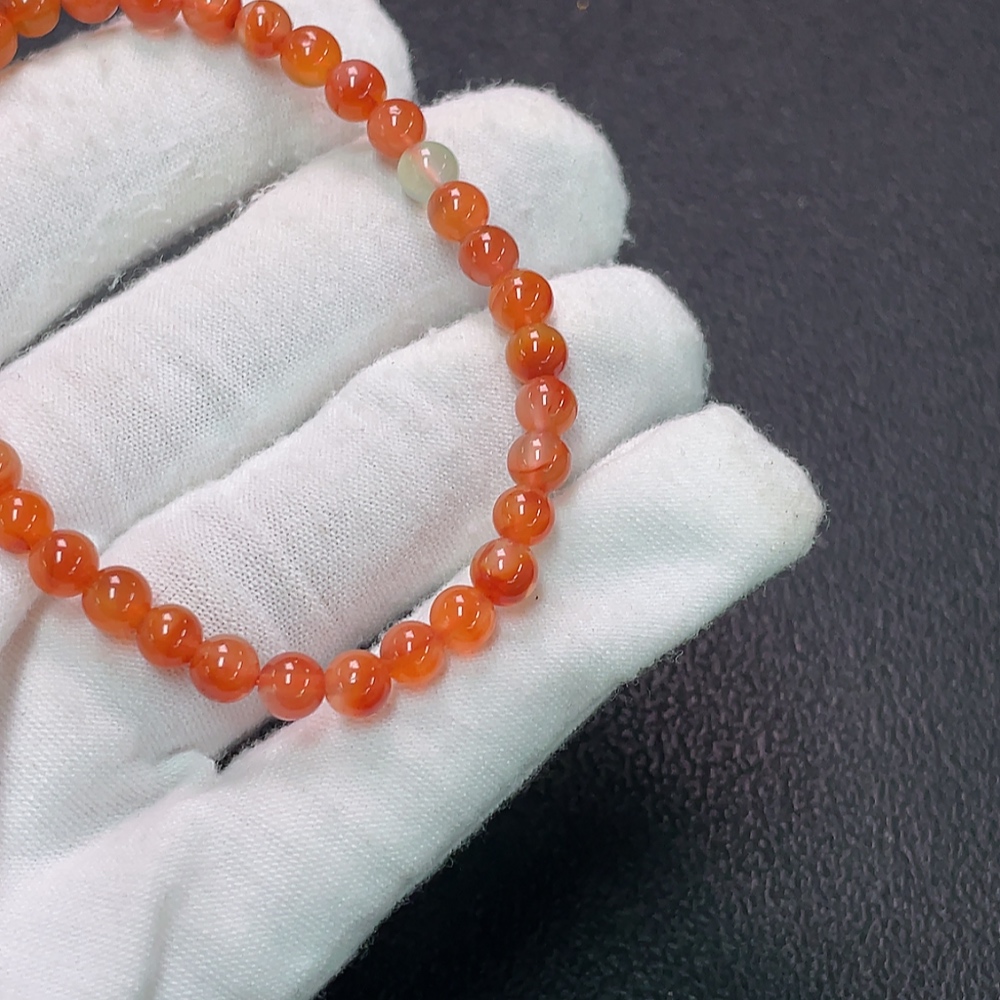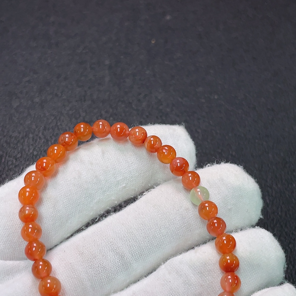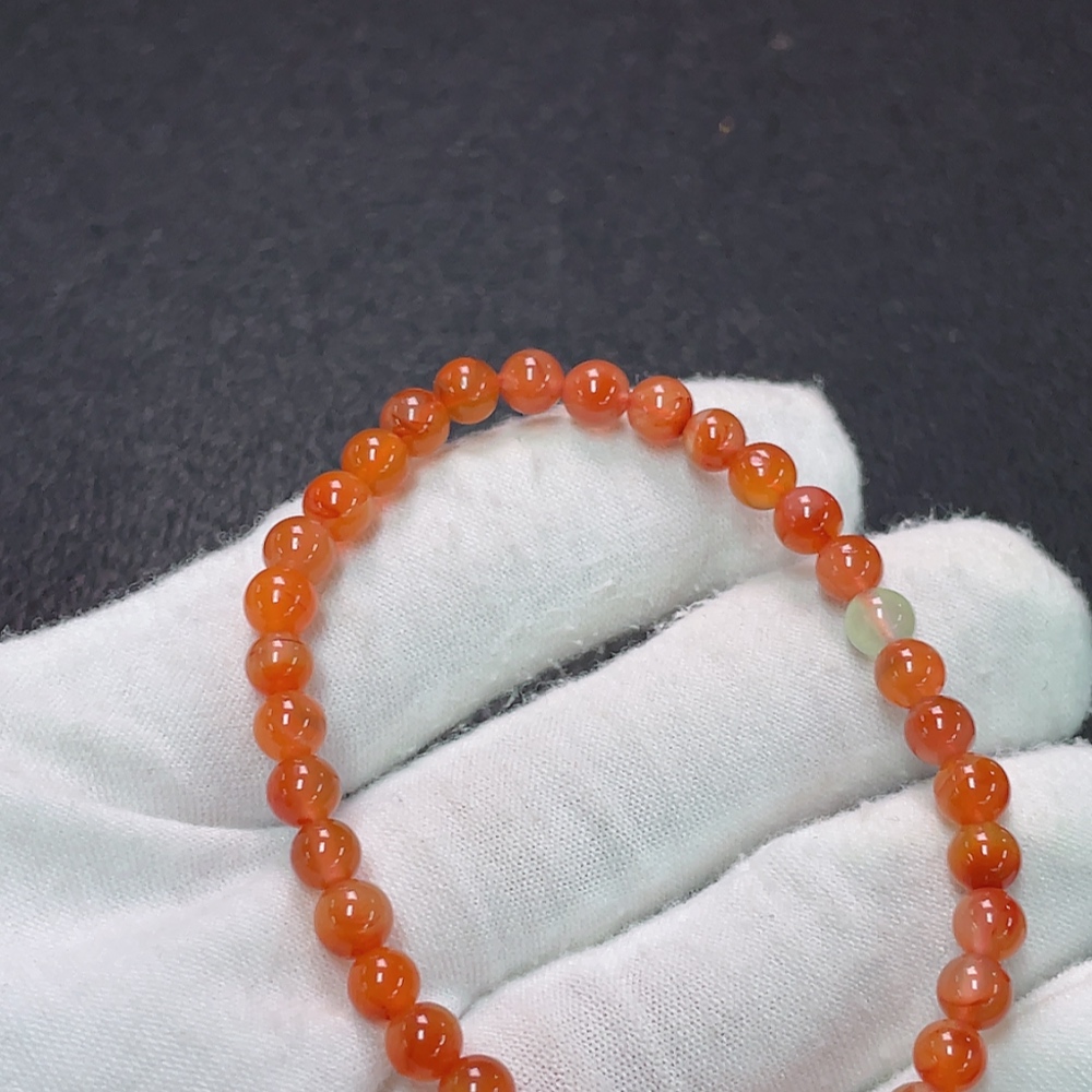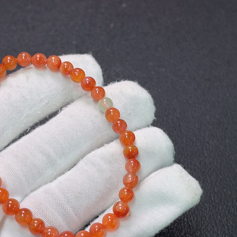 Red Agate Bracelet with Prehnite, Visible Organic Matter, Total Weight Approx. 6.89g, Size About 5.2mm