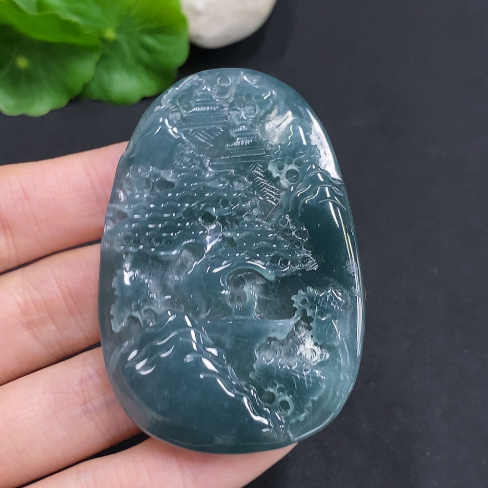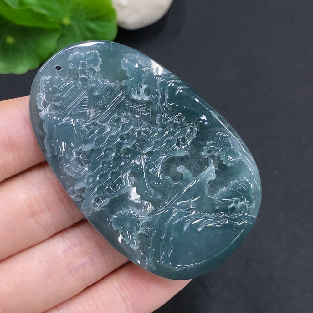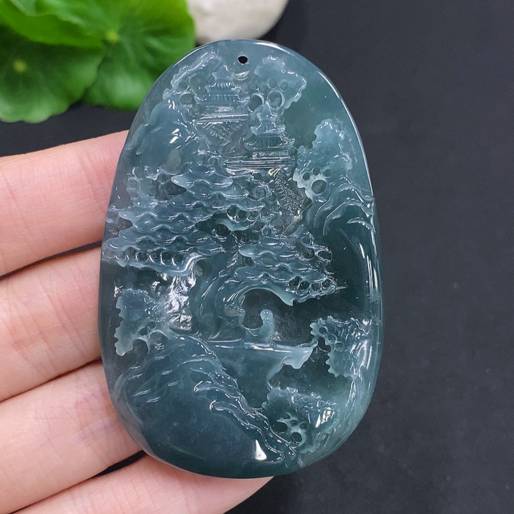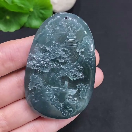 Jadeite Landscape Pendant, Total Weight Approximately 38.4g