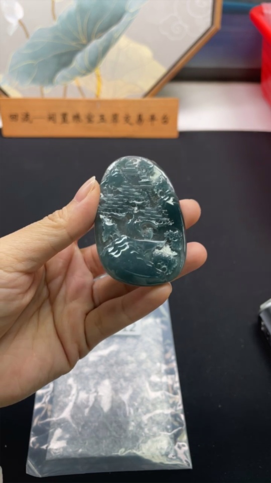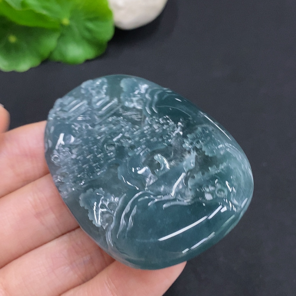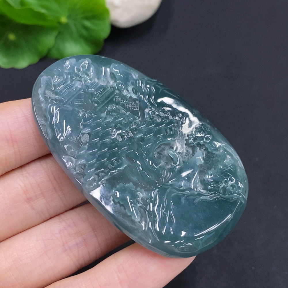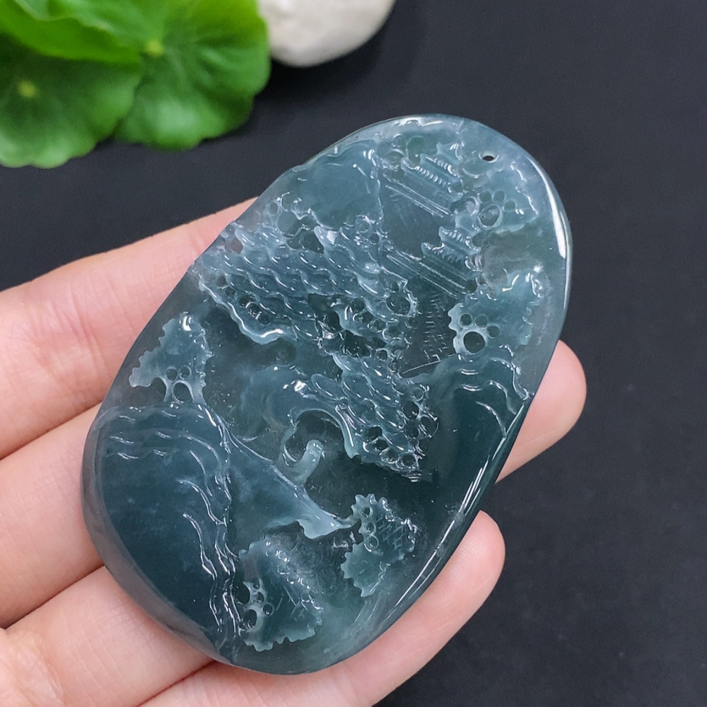 Jadeite Landscape Pendant, Total Weight Approximately 38.4g