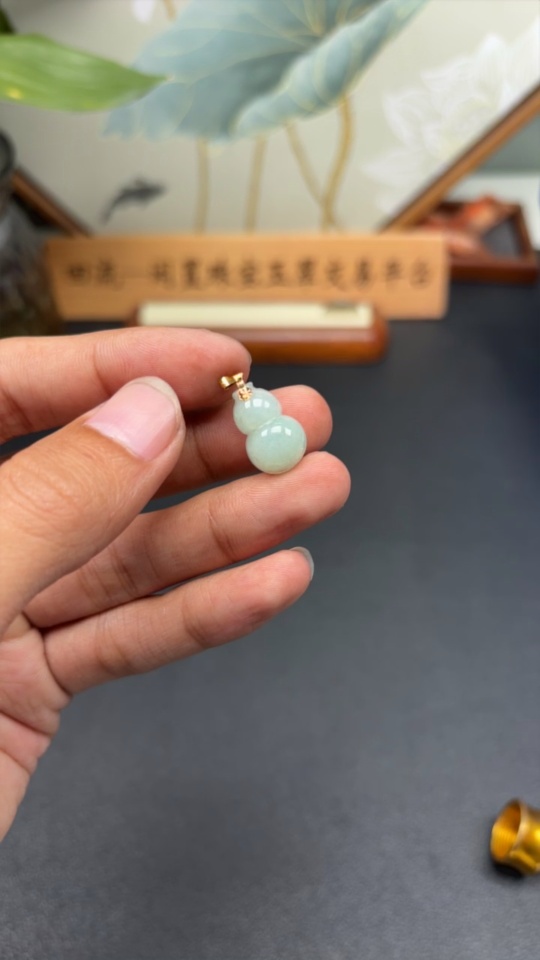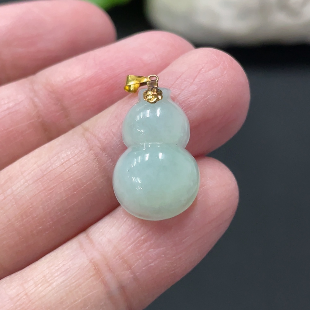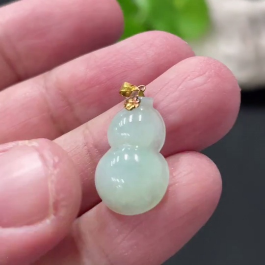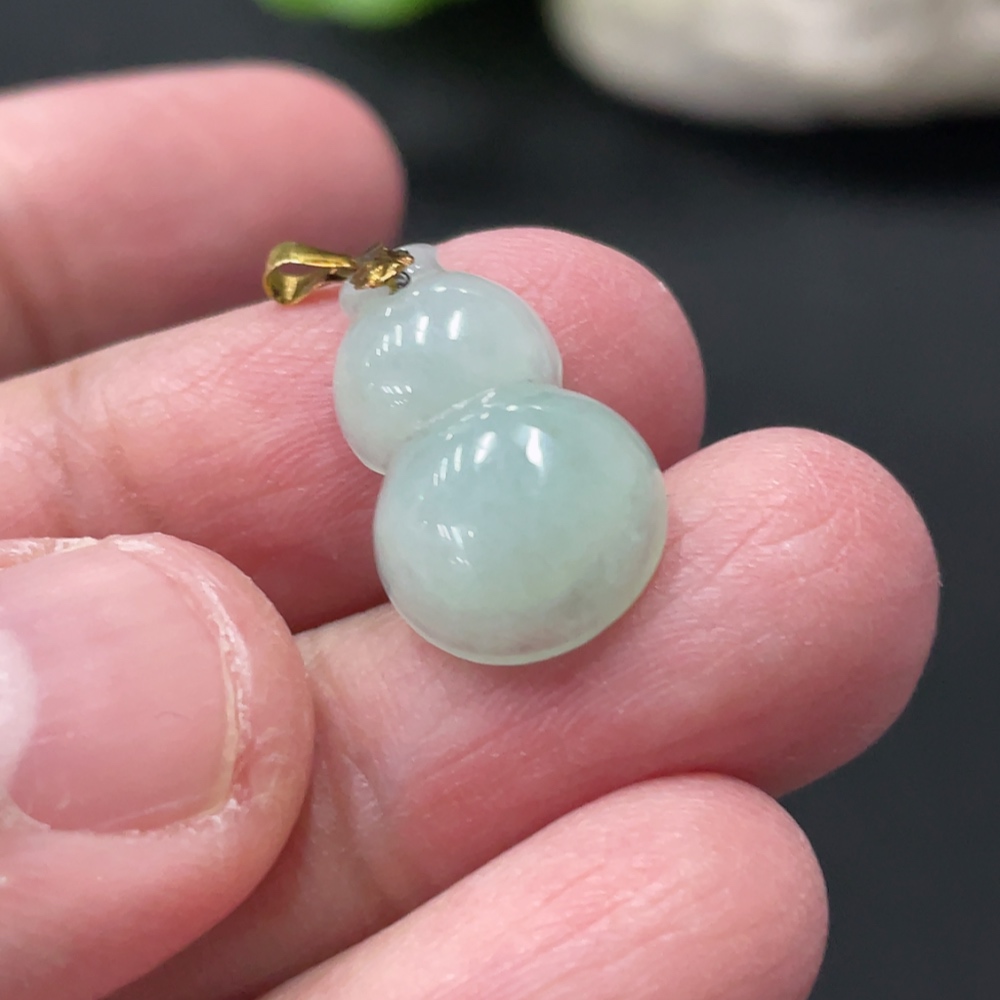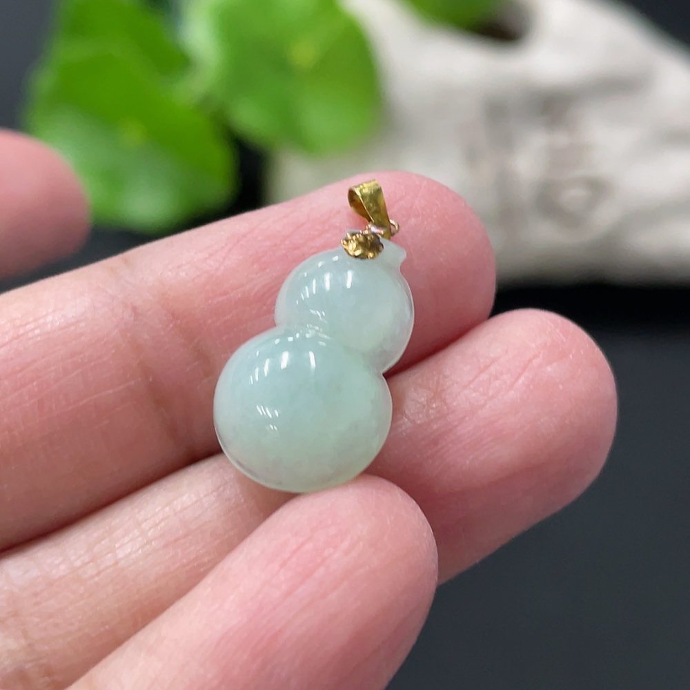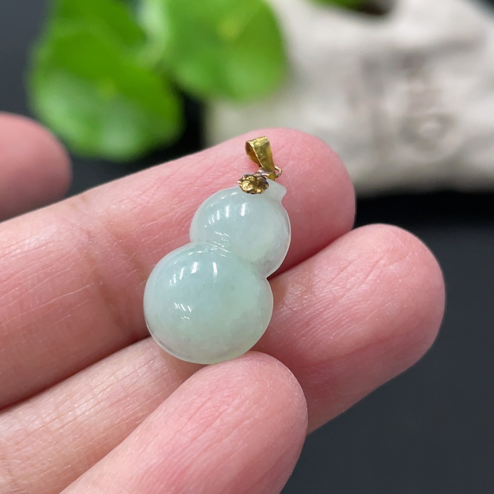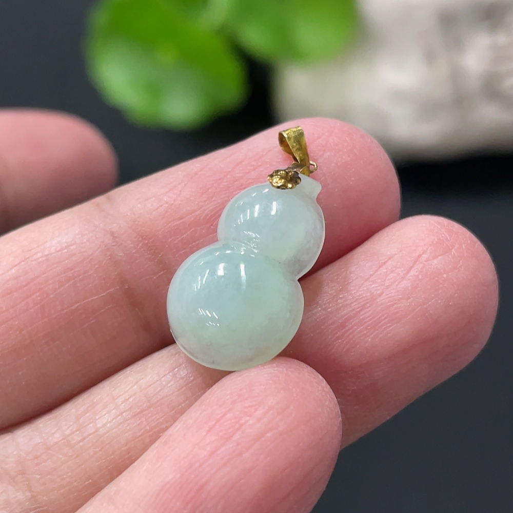 Jadeite Gourd Pendant with 18K Gold Clasp, Total Weight Approximately 1.29g