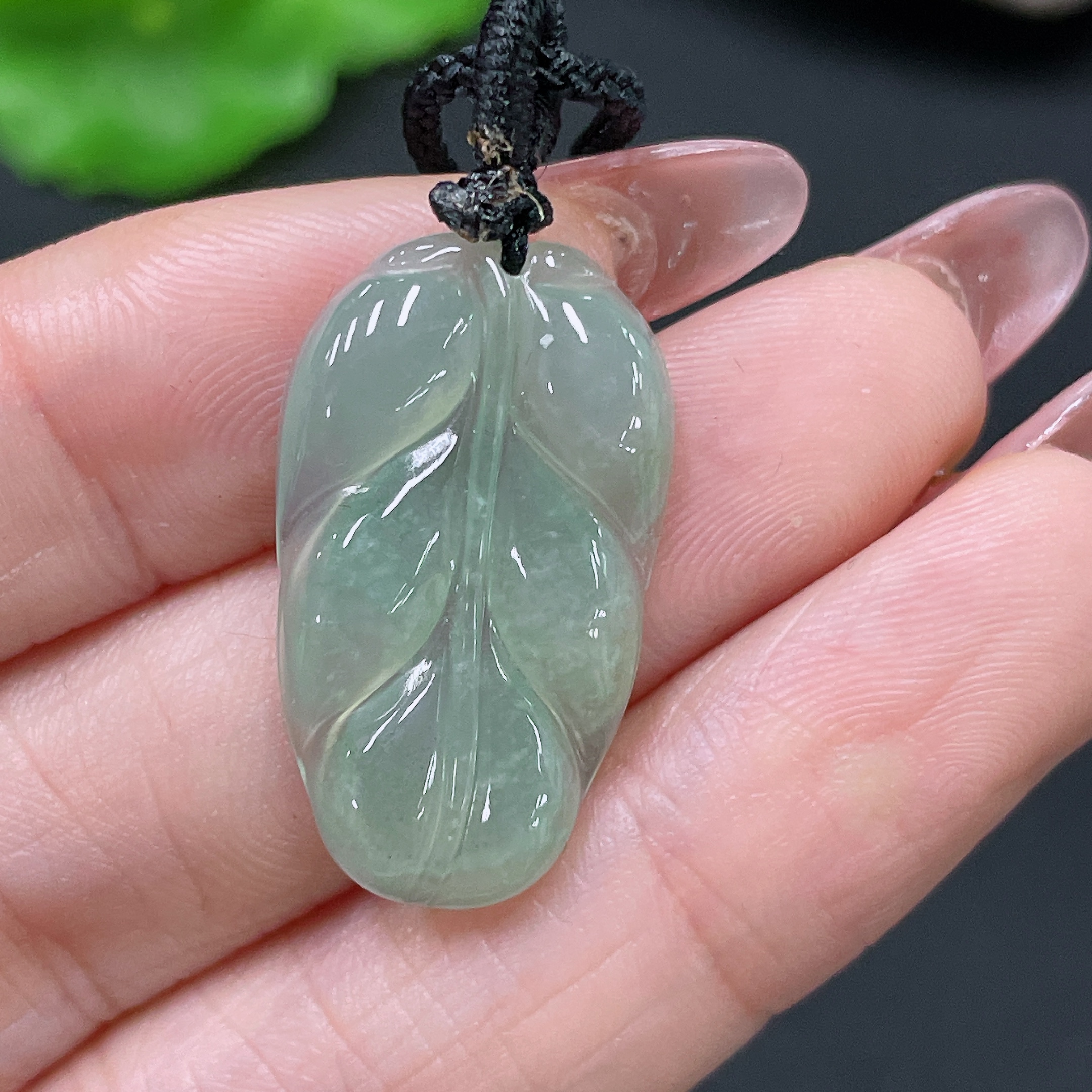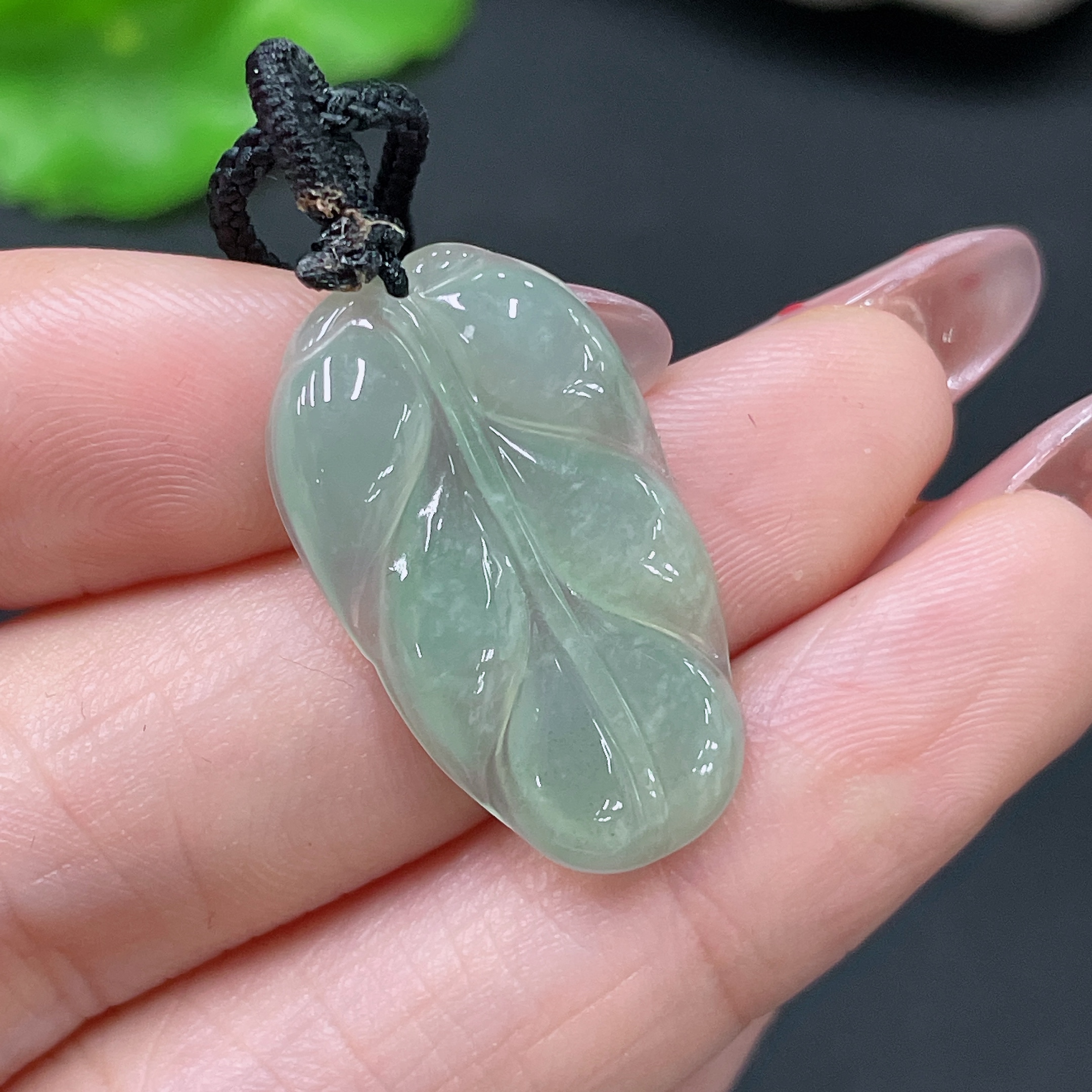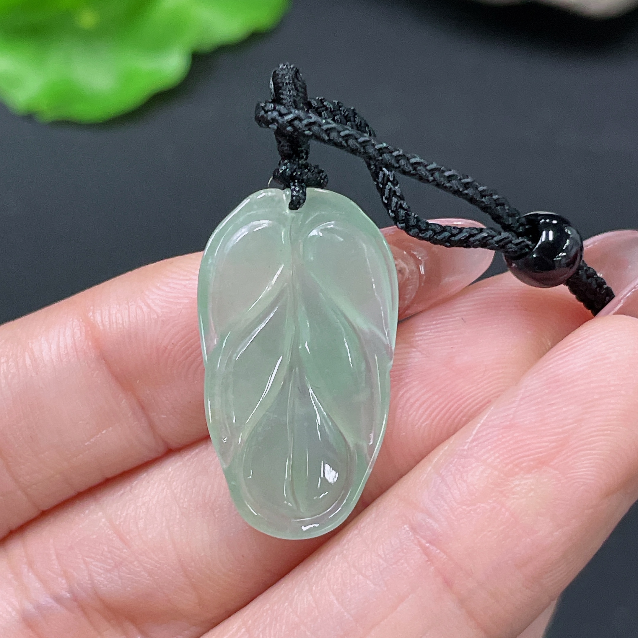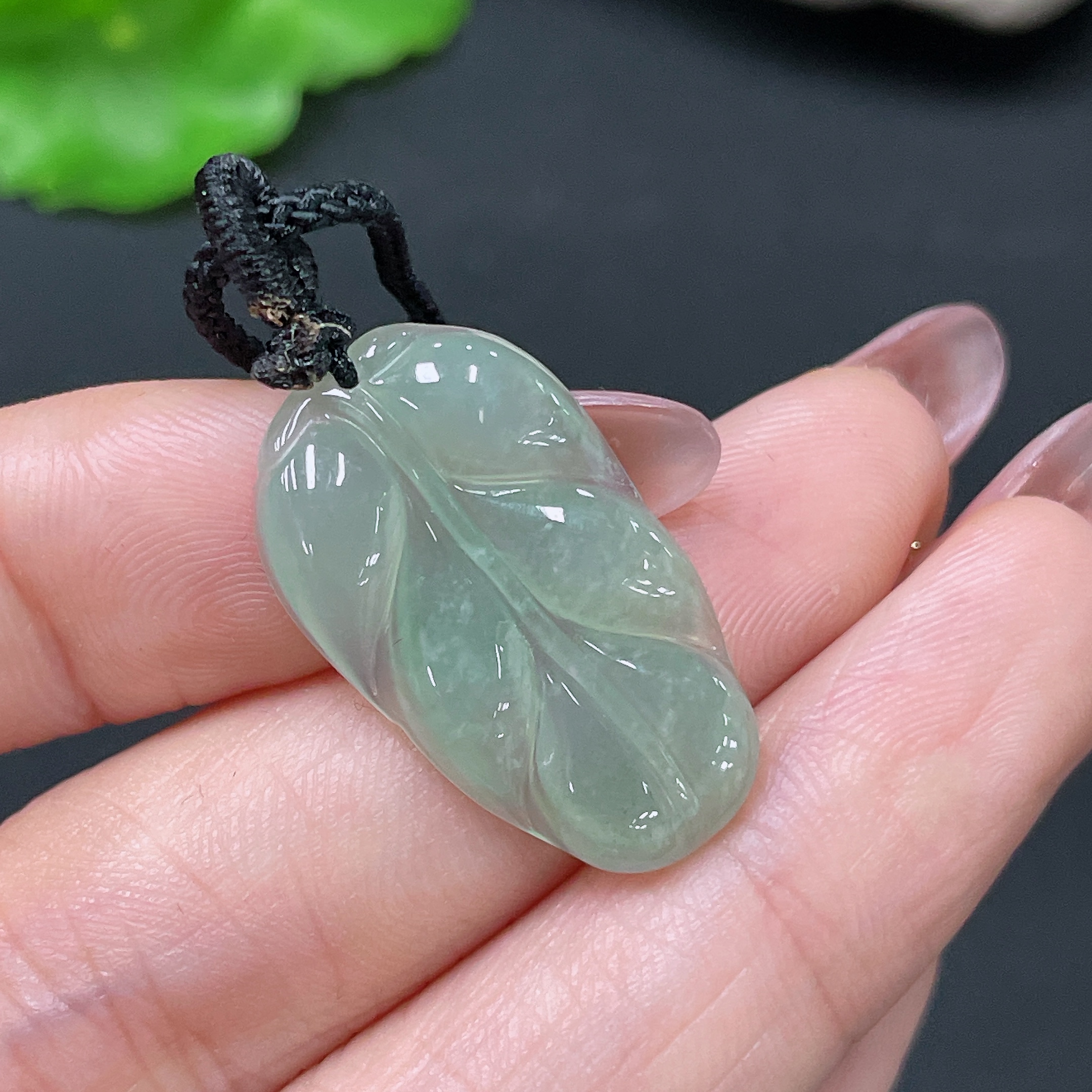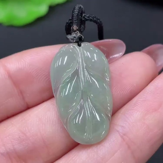 Jadeite Pendant Leaf Including Cord Total Weight Approx. 3.4g