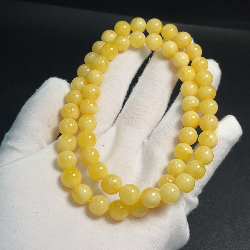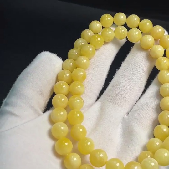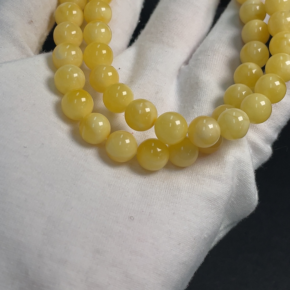 Amber Beeswax Bead Necklace, Total Weight Approx. 24.73g, Size About 9.1mm