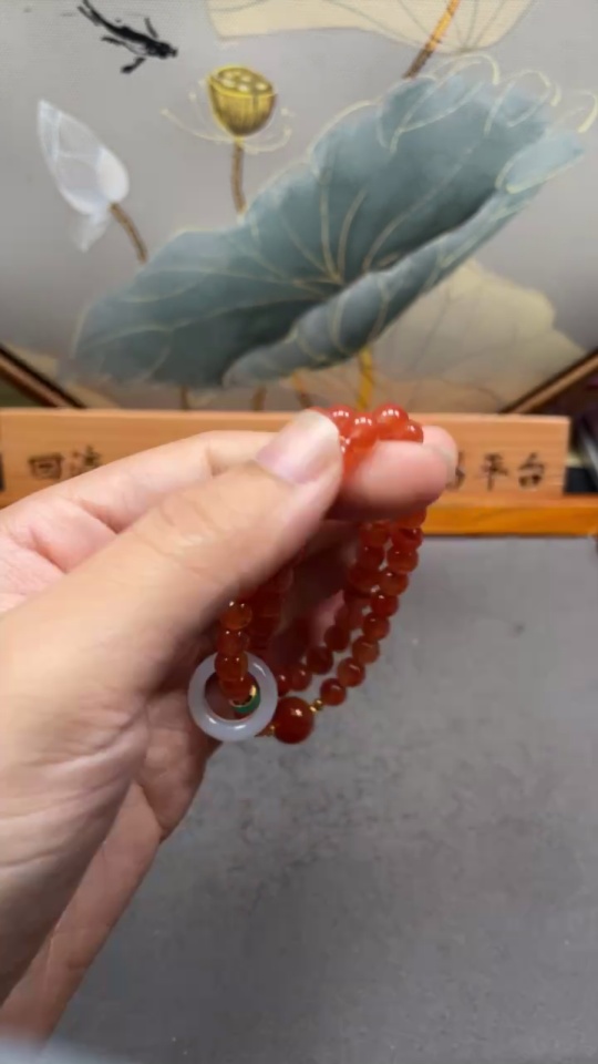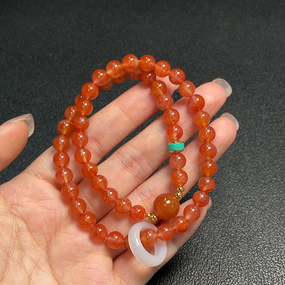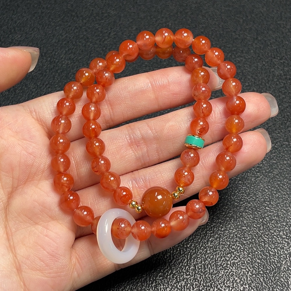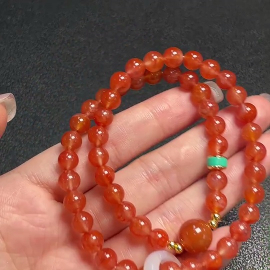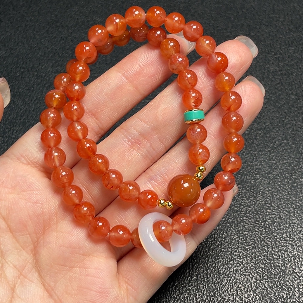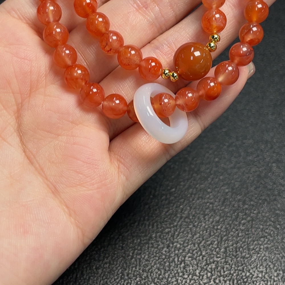Red Agate Beaded Necklace with Visible Organic Matter, Non-Natural Accent Stones, Non-Metal, Total Weight Approx. 24.1g, Size ~6.7mm