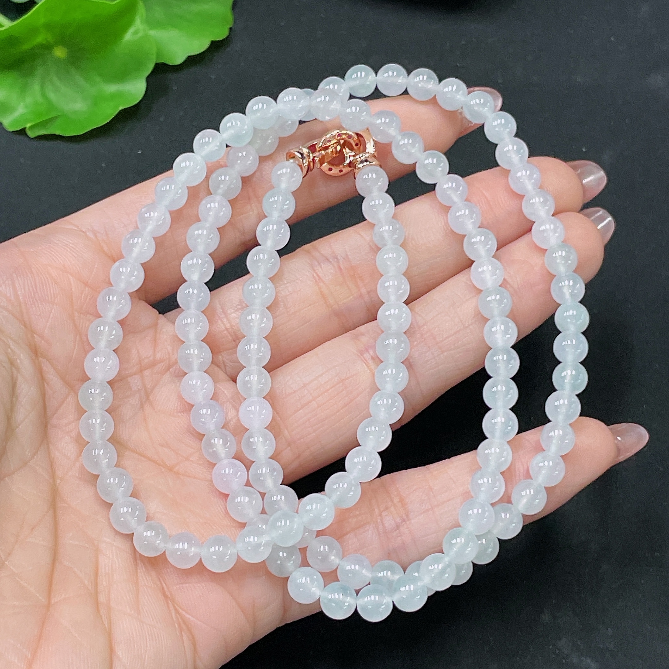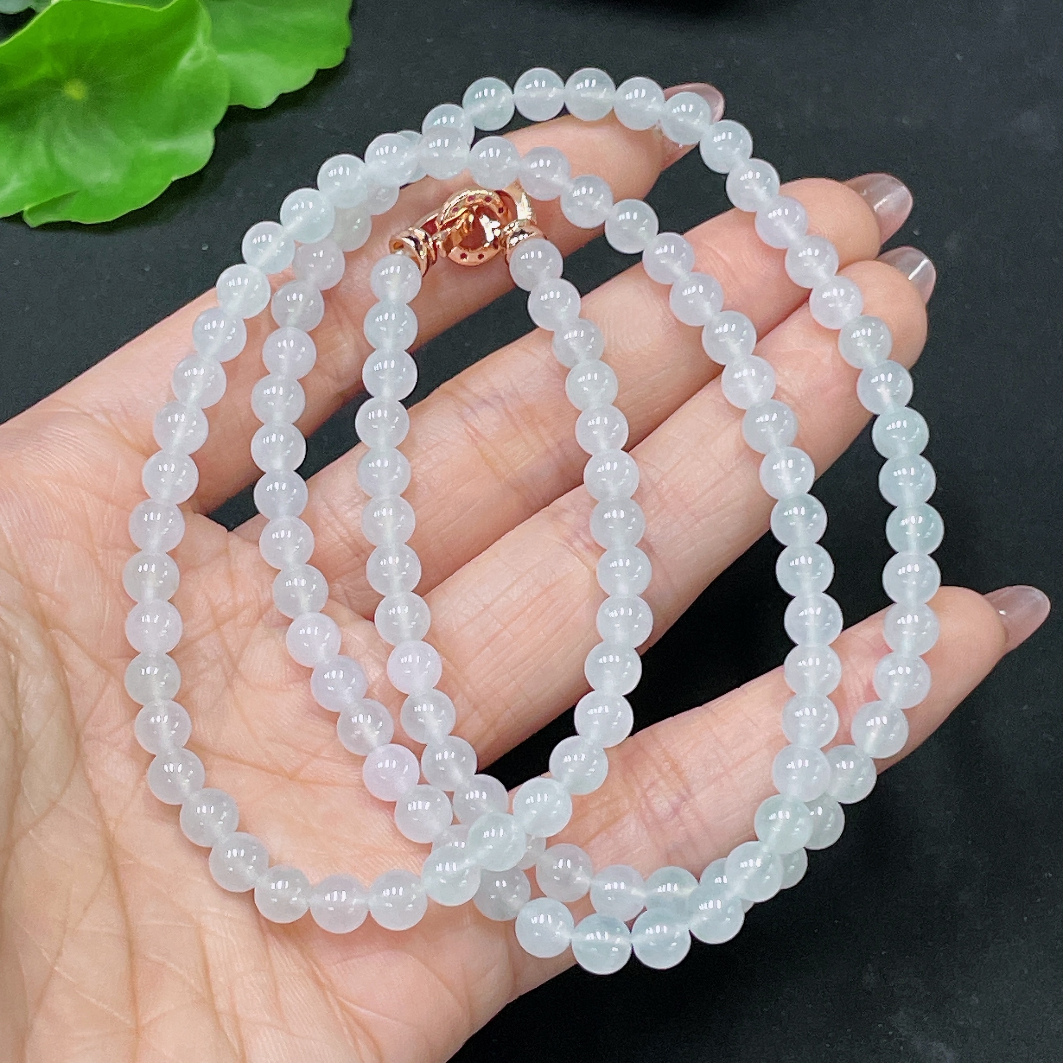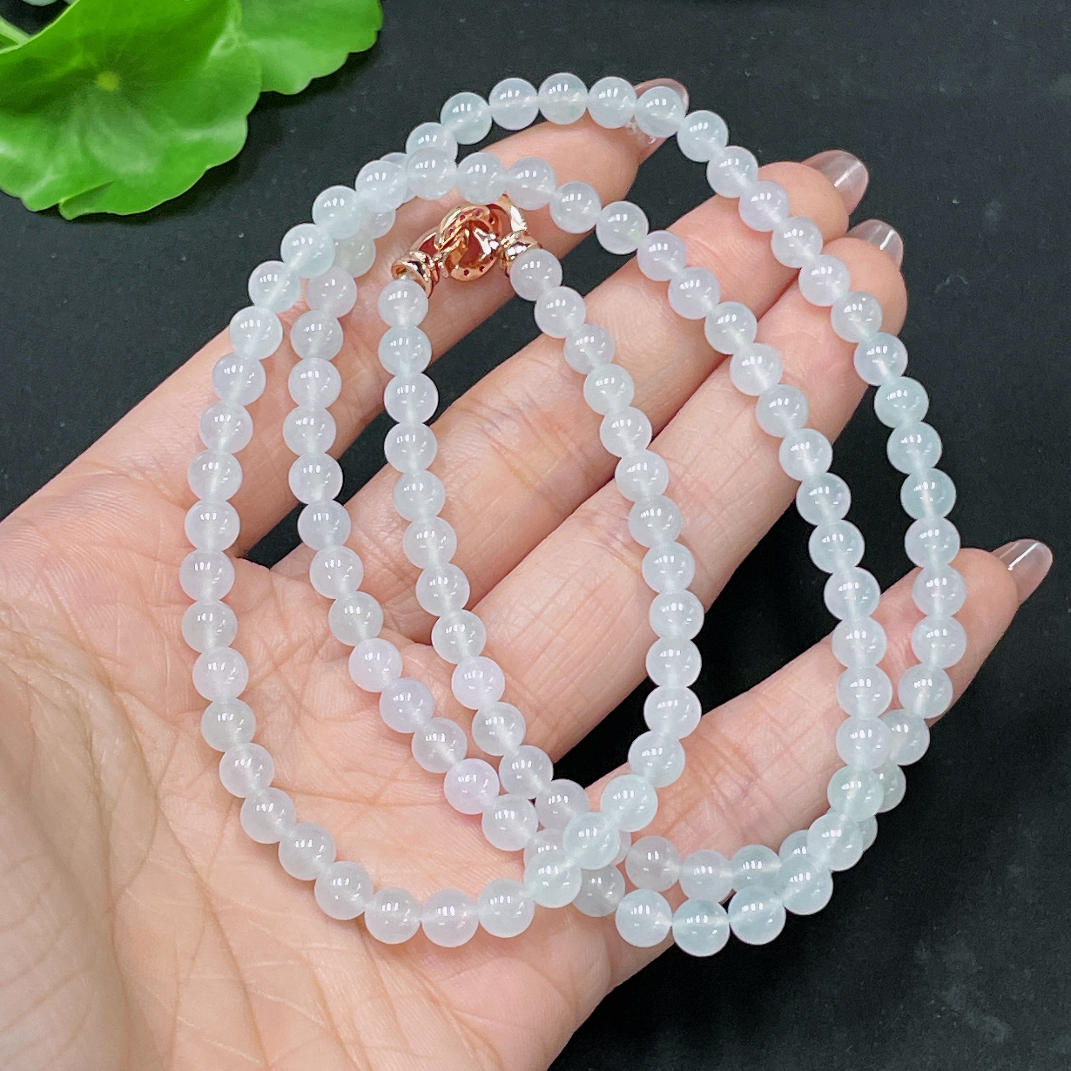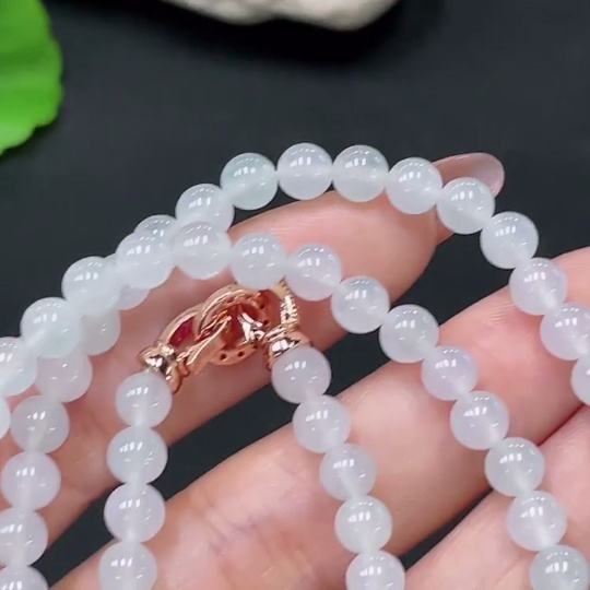 Jadeite Bead Necklace Non-Gold Total Weight Approx. 32.87g Size About 5.4mm