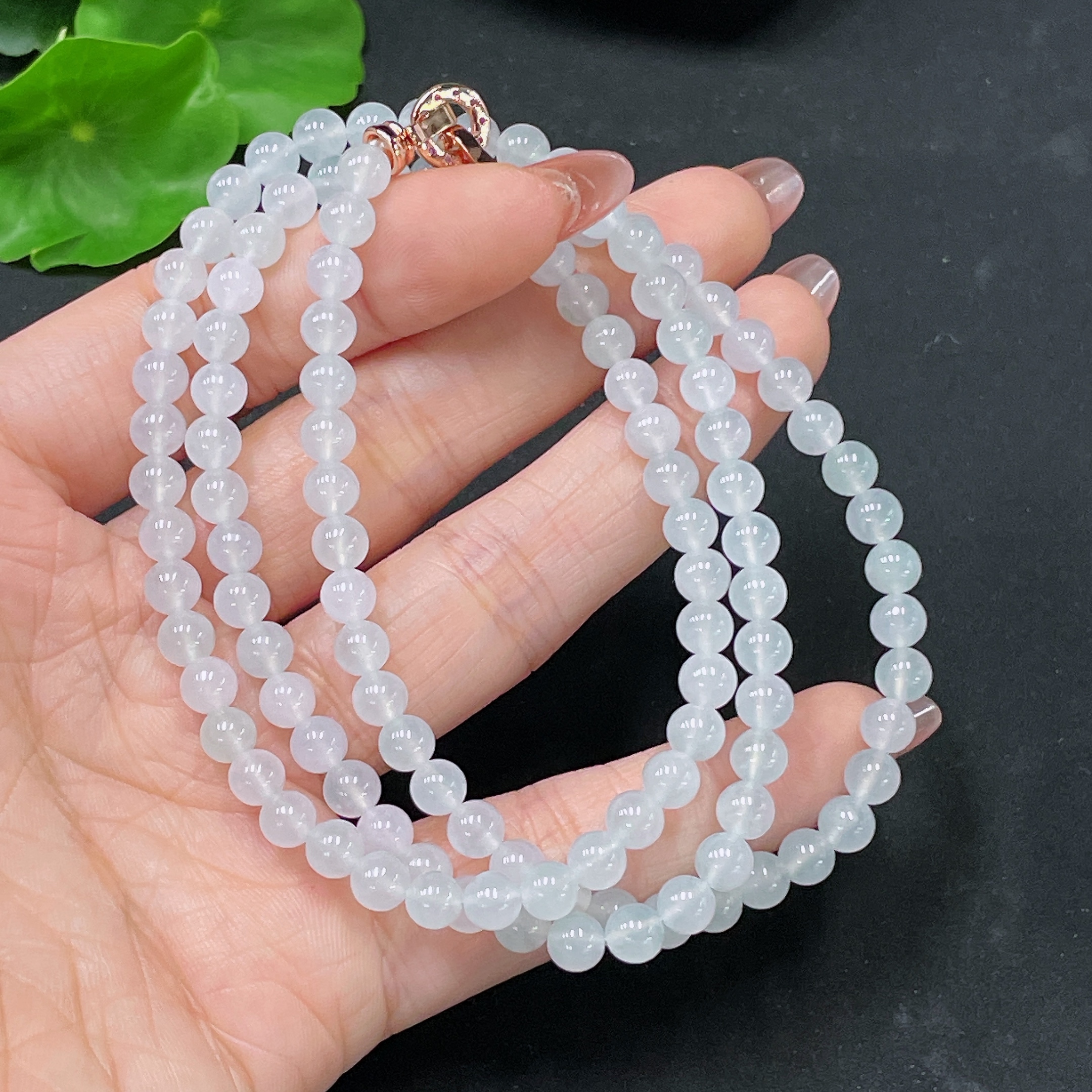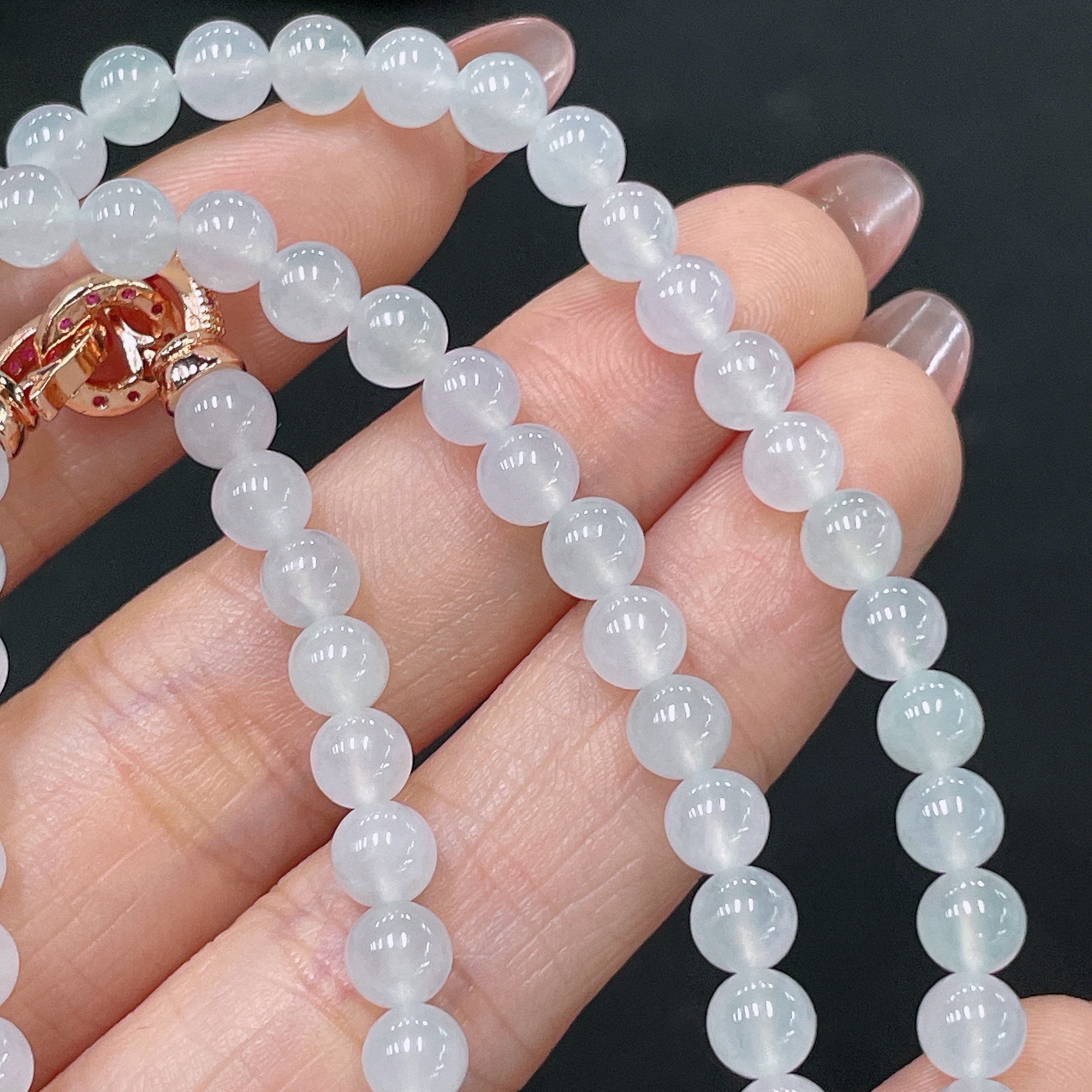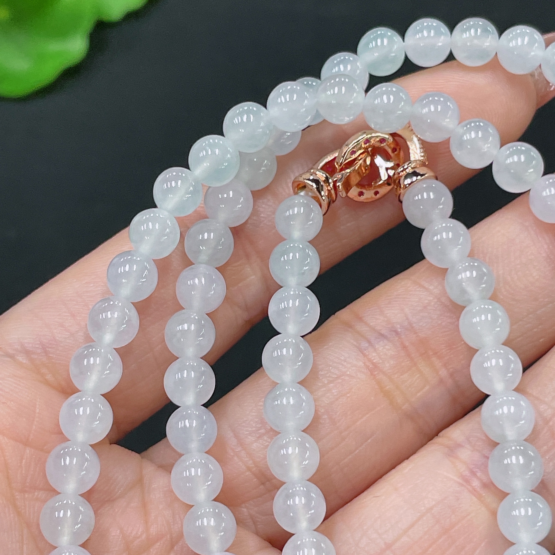 Jadeite Bead Necklace Non-Gold Total Weight Approx. 32.87g Size About 5.4mm