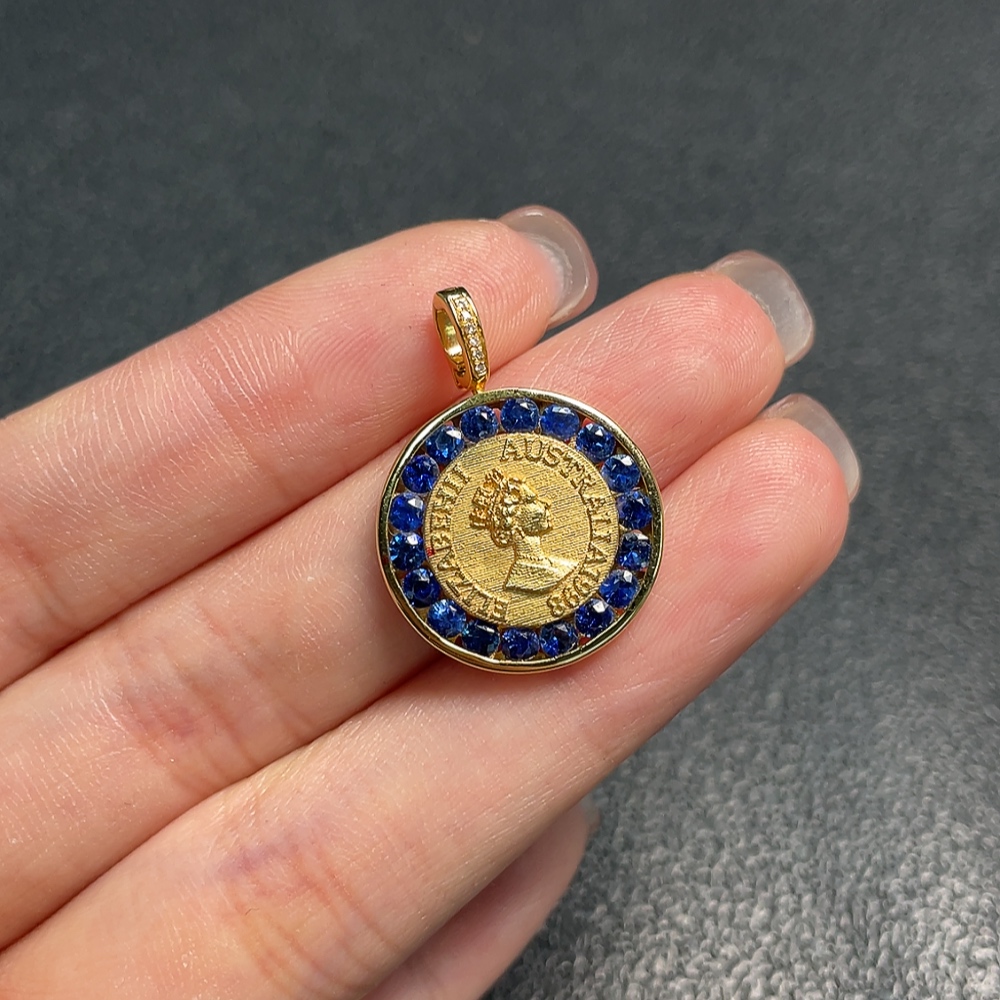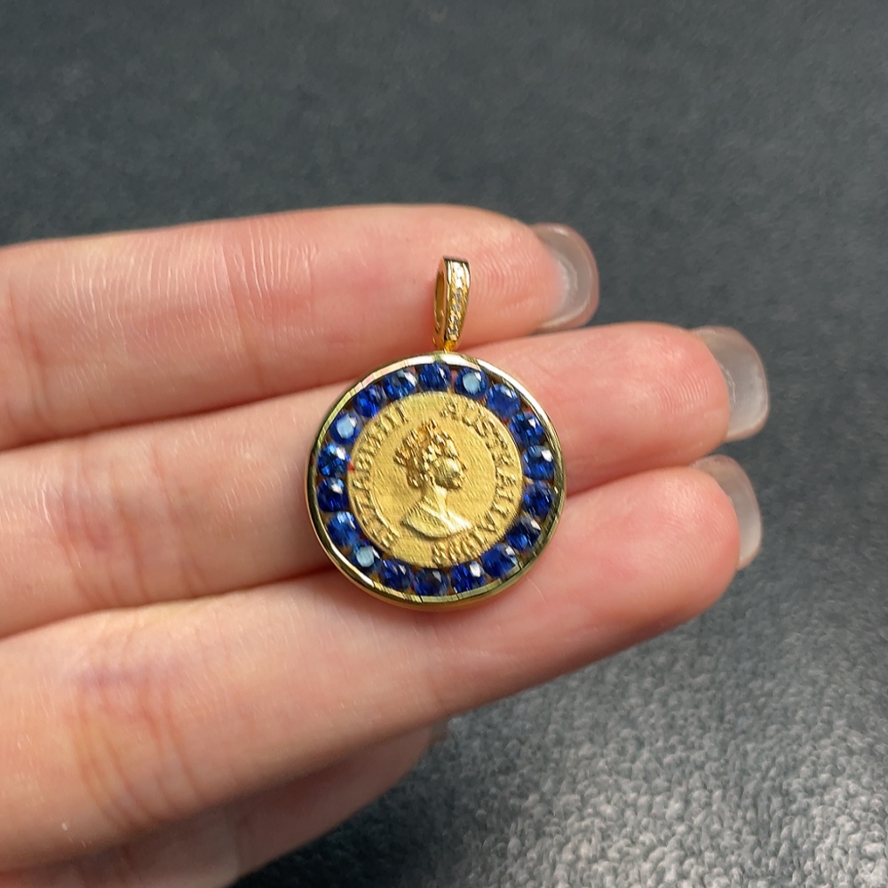 Sapphire Pendant 74% Gold Content Color Origin Undetermined Total Weight Approx. 2.79g