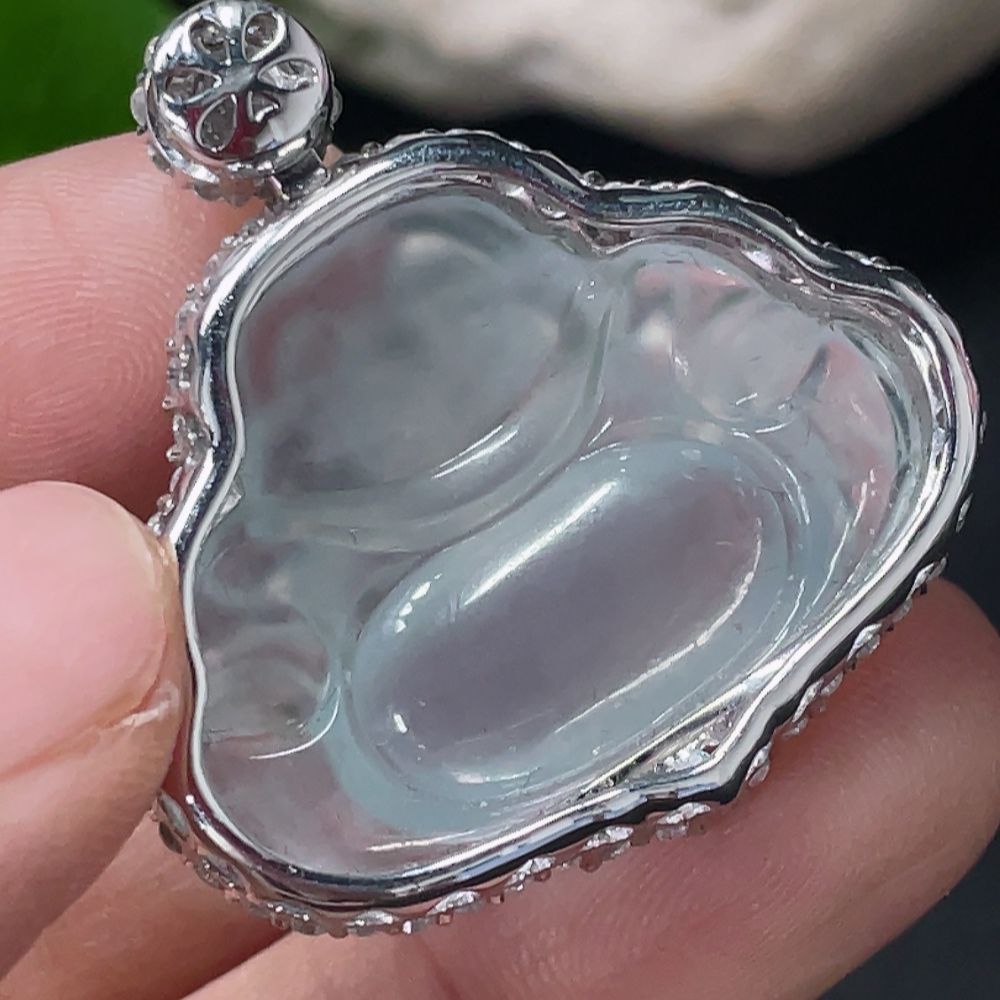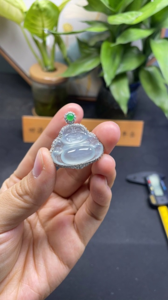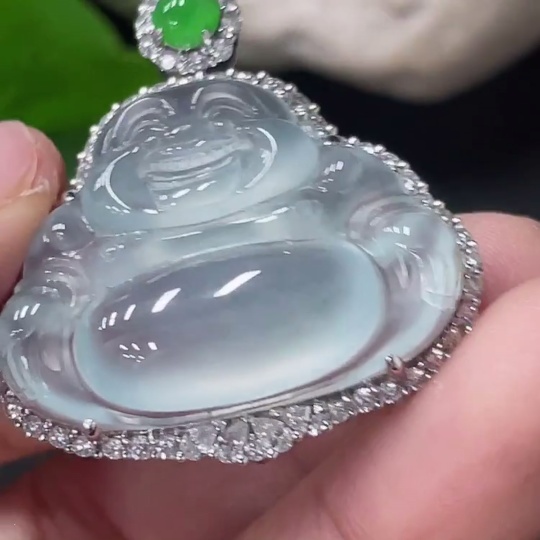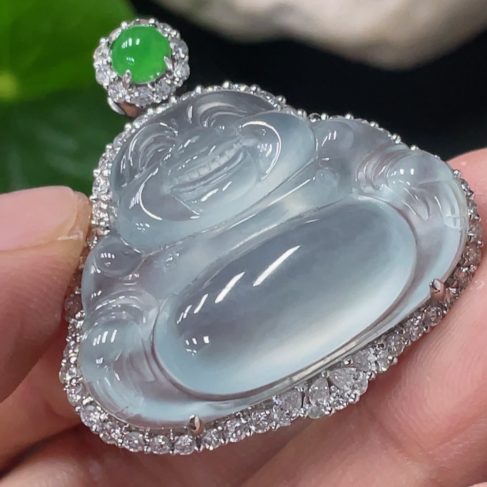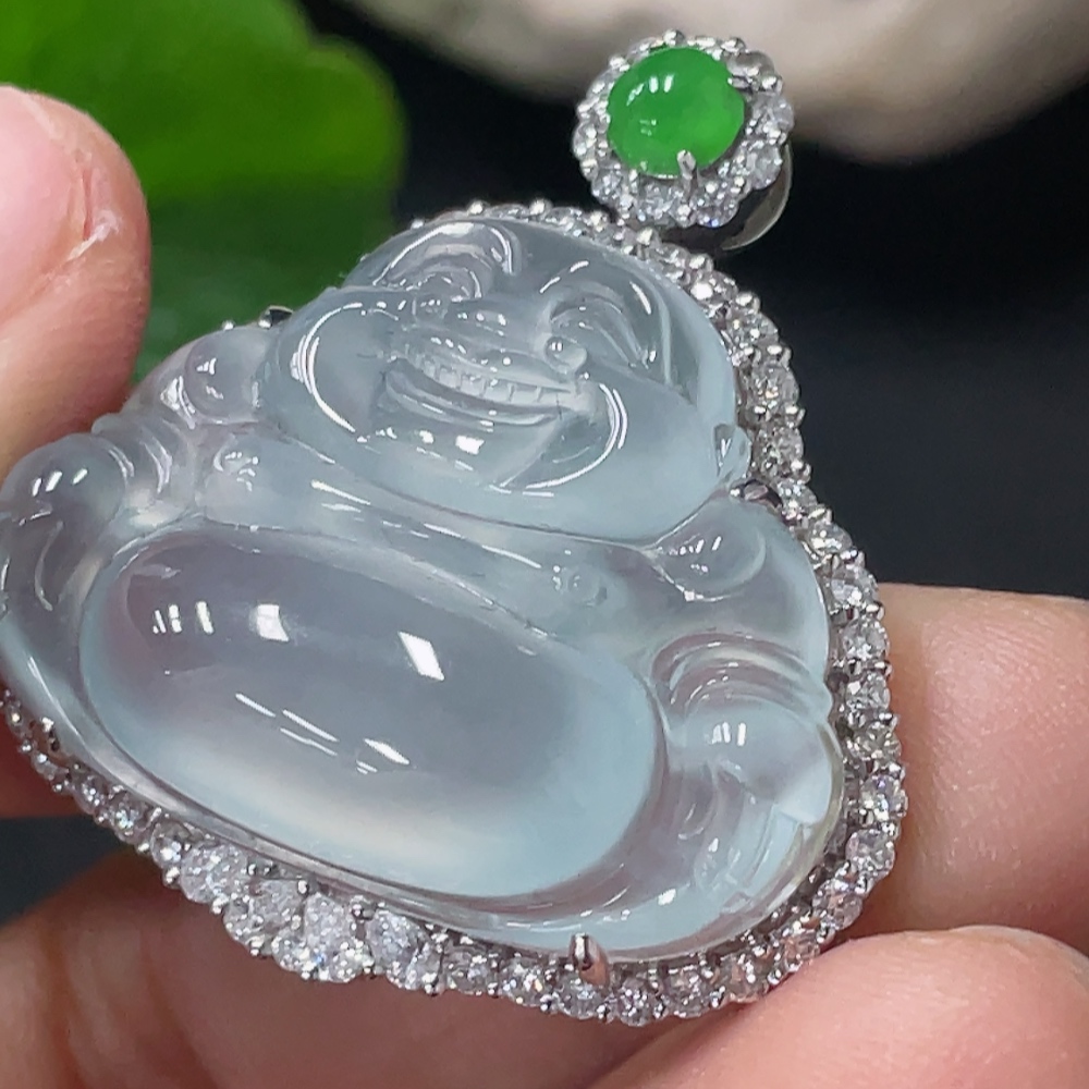 Jadeite Buddha Pendant with 18K Gold Setting and Diamond Accents, Total Weight Approx. 9.95g