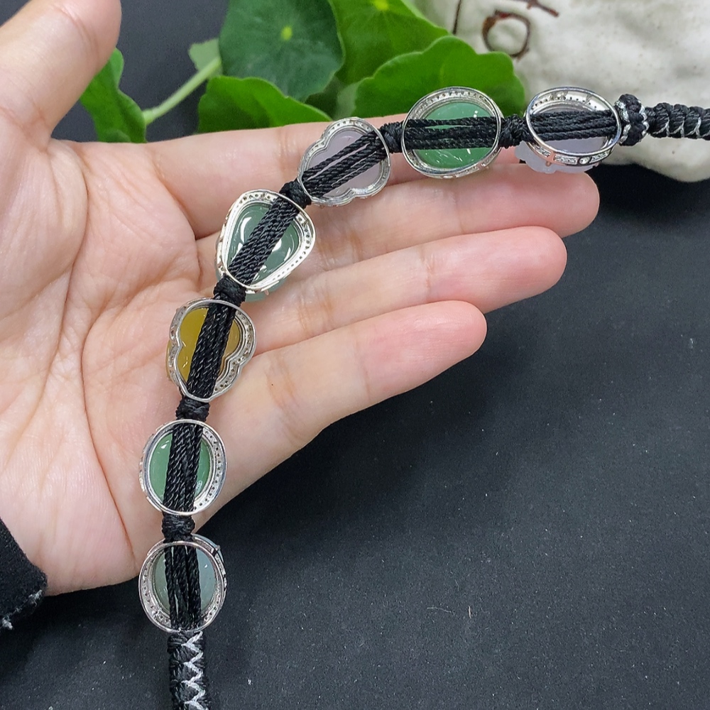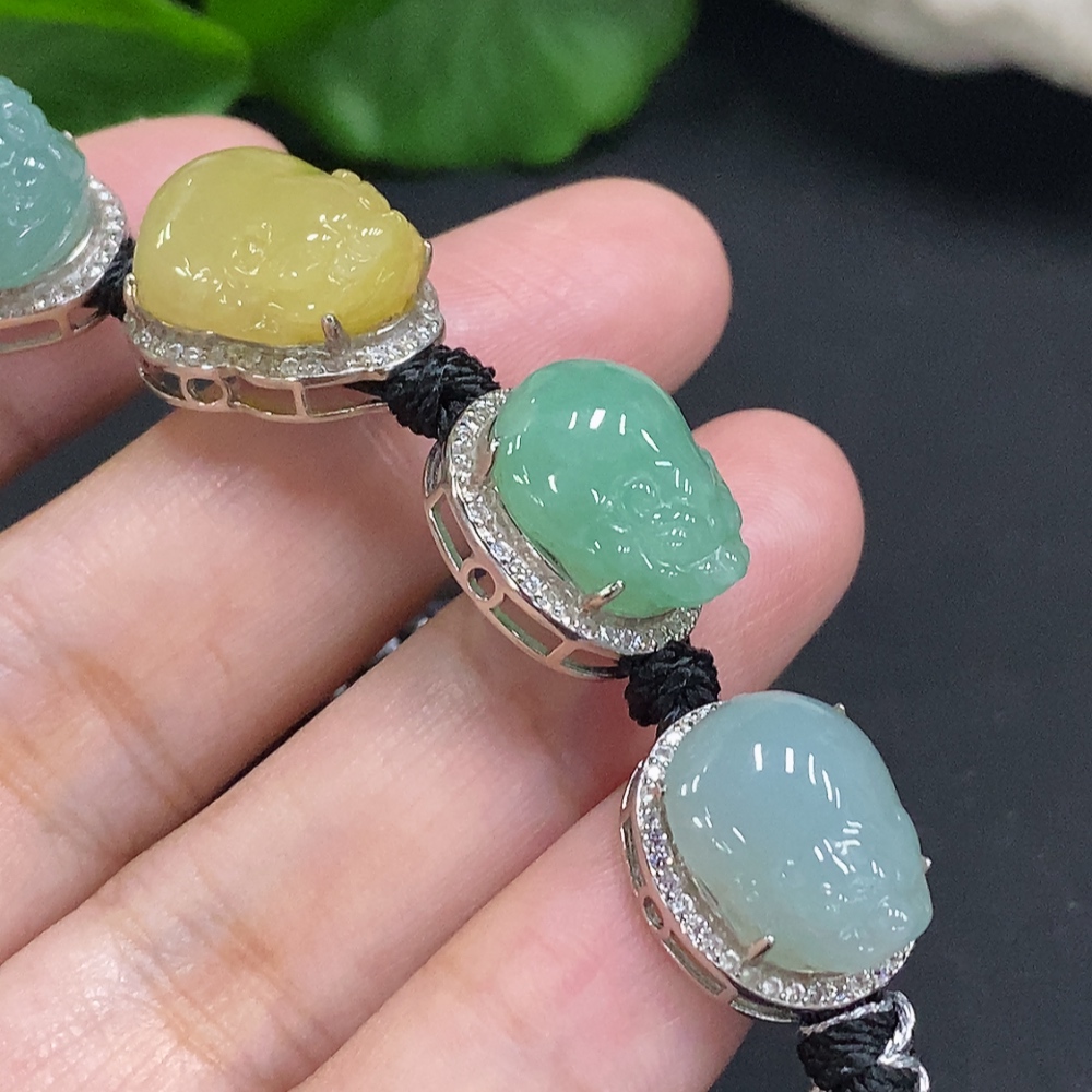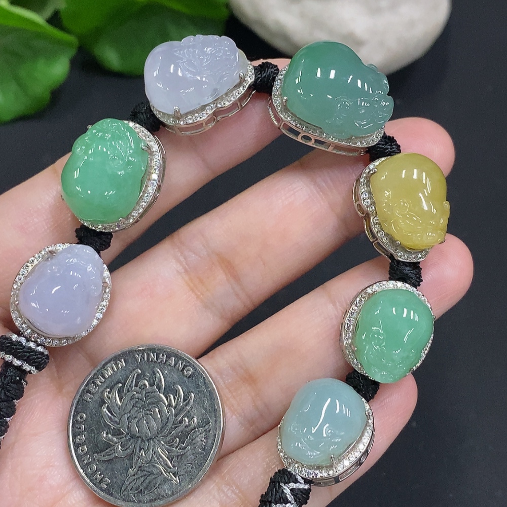 Jadeite Inlaid Hand Ornament Non-Gold Inlaid Total Weight Approx. 27.5g