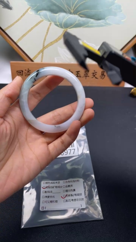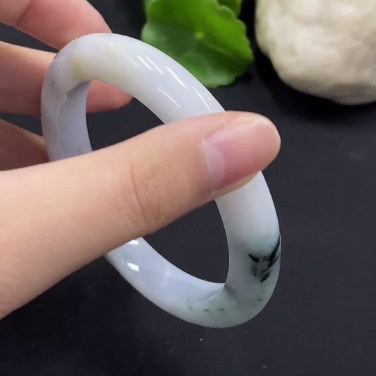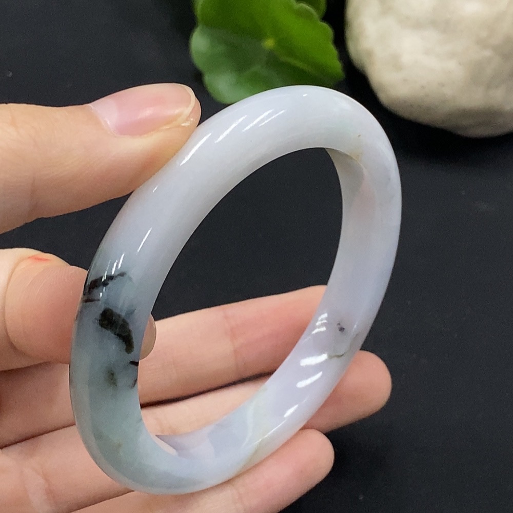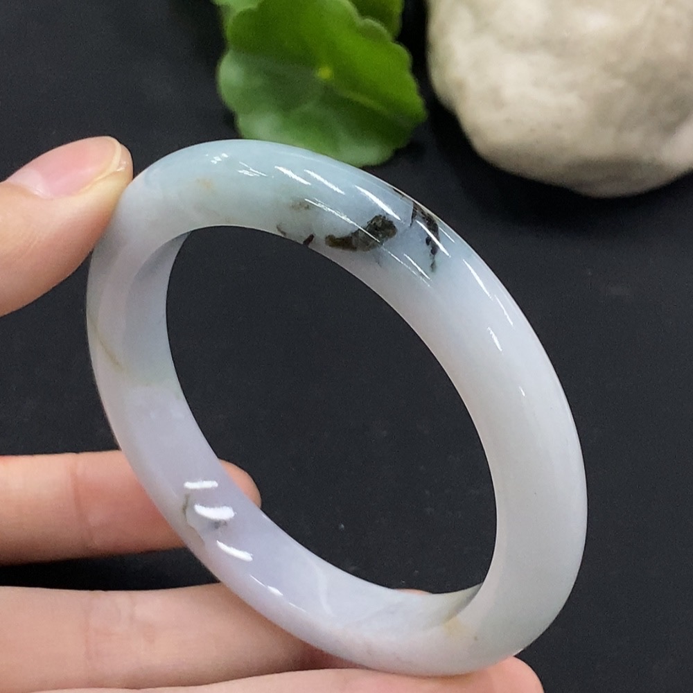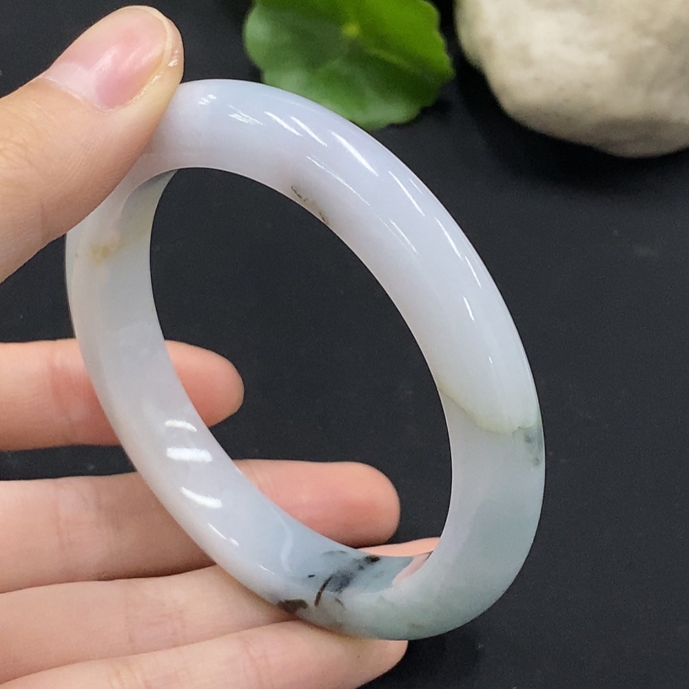 Jadeite Round Bracelet Size 54.9 with Crack Containing Other Mineral Components Total Weight Approx. 46.36g