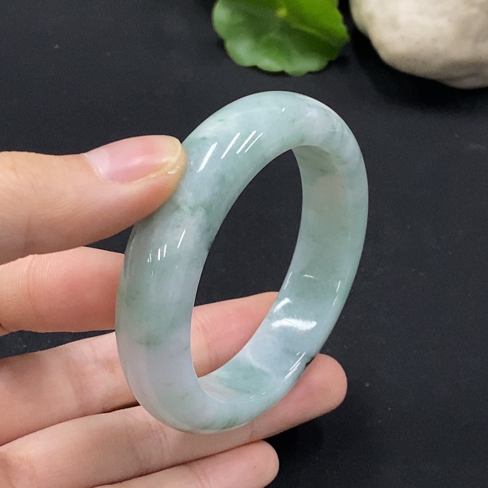 Jadeite Concubine Bracelet Size 52.1/48 with Other Mineral Components Total Weight Approx. 55.7g