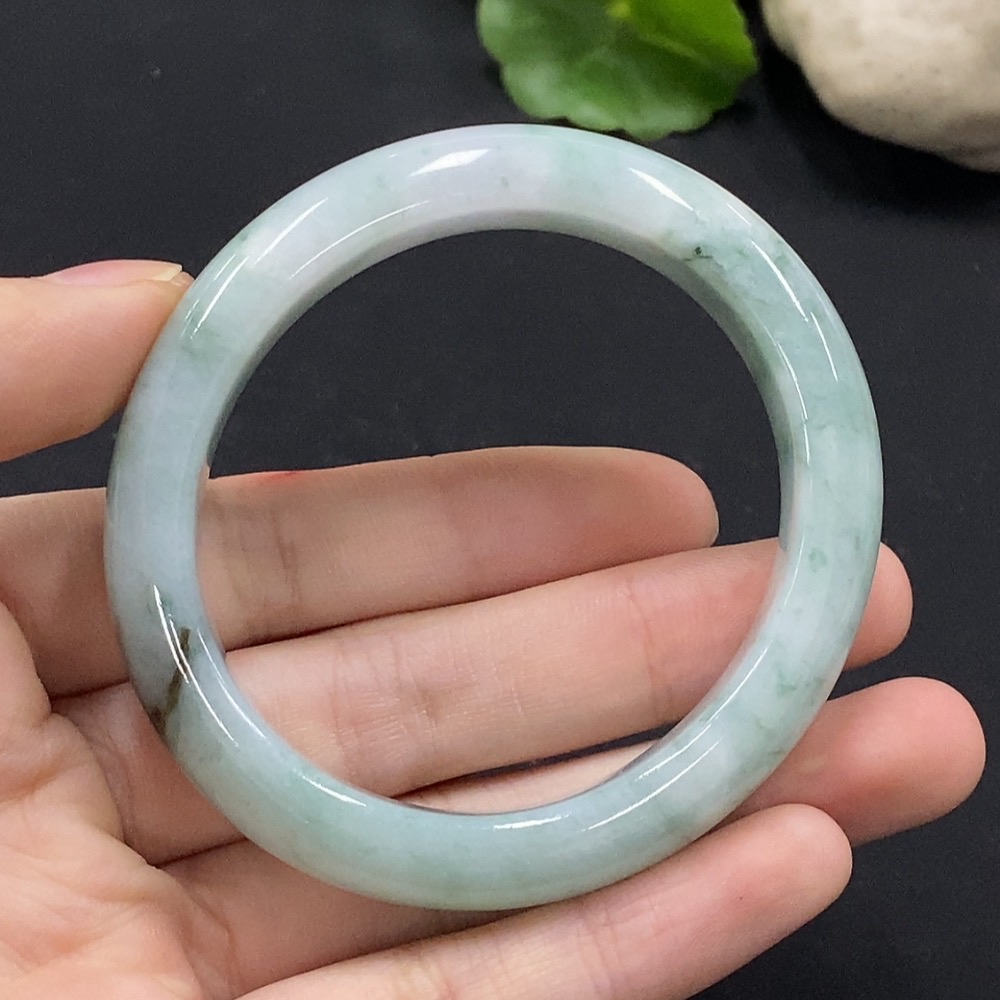 Jadeite Concubine Bracelet Size 52.1/48 with Other Mineral Components Total Weight Approx. 55.7g