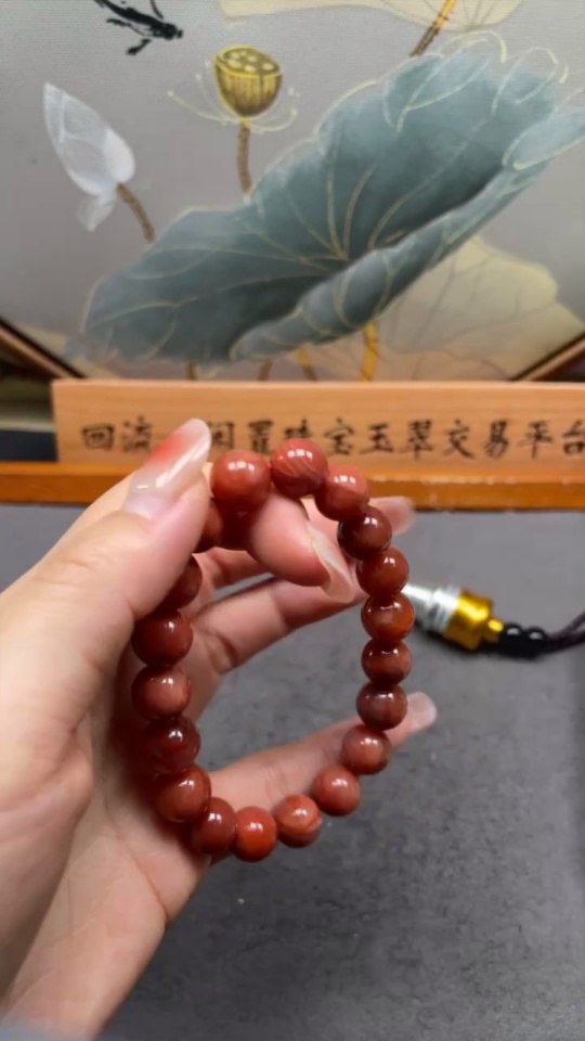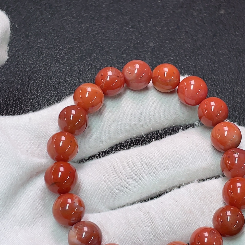 Red Agate Bracelet with Visible Organic Matter, Total Weight Approx. 31.3g, Size About 10.7mm